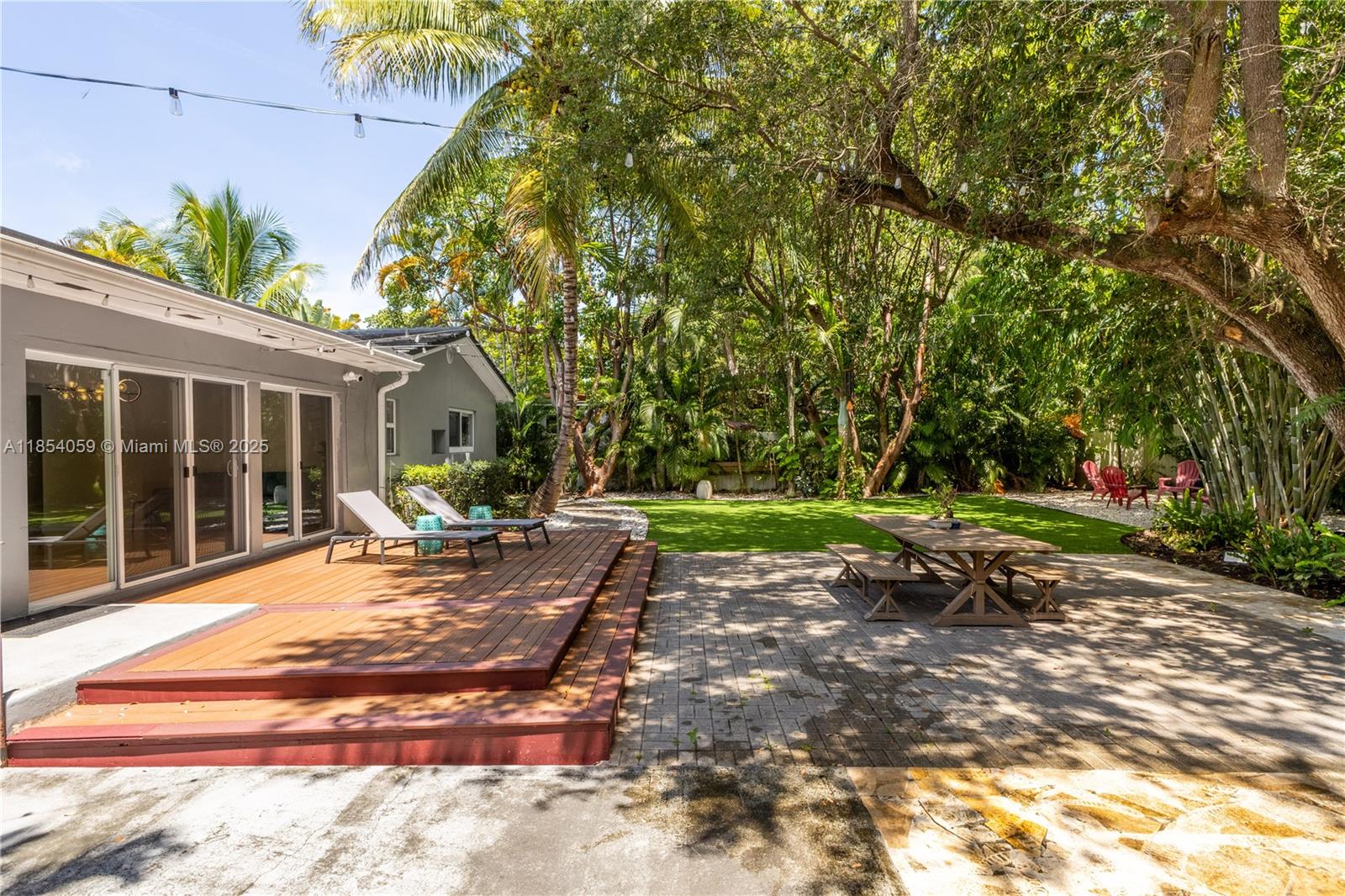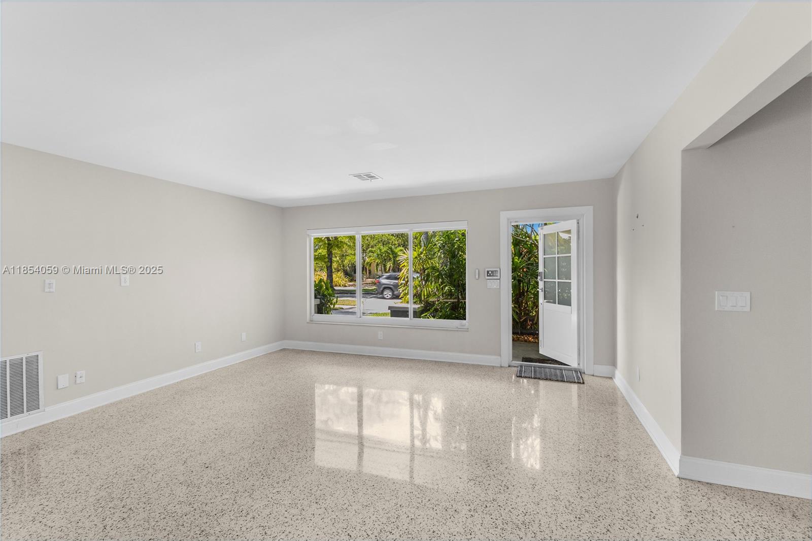 Mid-century design, original terrazzo floors, and an oversized 9,375 SF lot make this North Miami home stand out. The 3 BD, 2 BA layout features an updated kitchen with a gas stove and ample cabinet space, an open dining area, and a spacious living room filled with natural light. Impact windows throughout. One-car garage plus driveway parking. The fully fenced backyard is perfect for pets, kids, or weekend barbecues. Mature trees and tropical landscaping create a lush, private setting with plenty of space to relax and unwind. Dedicated laundry area with washer and dryer. On a quiet residential street near Whole Foods, Barry University, and local restaurants and shops. Just 15 min to the beach, Bal Harbour, Aventura, the Design District, and Wynwood, and 20 min to both MIA & FLL airports.