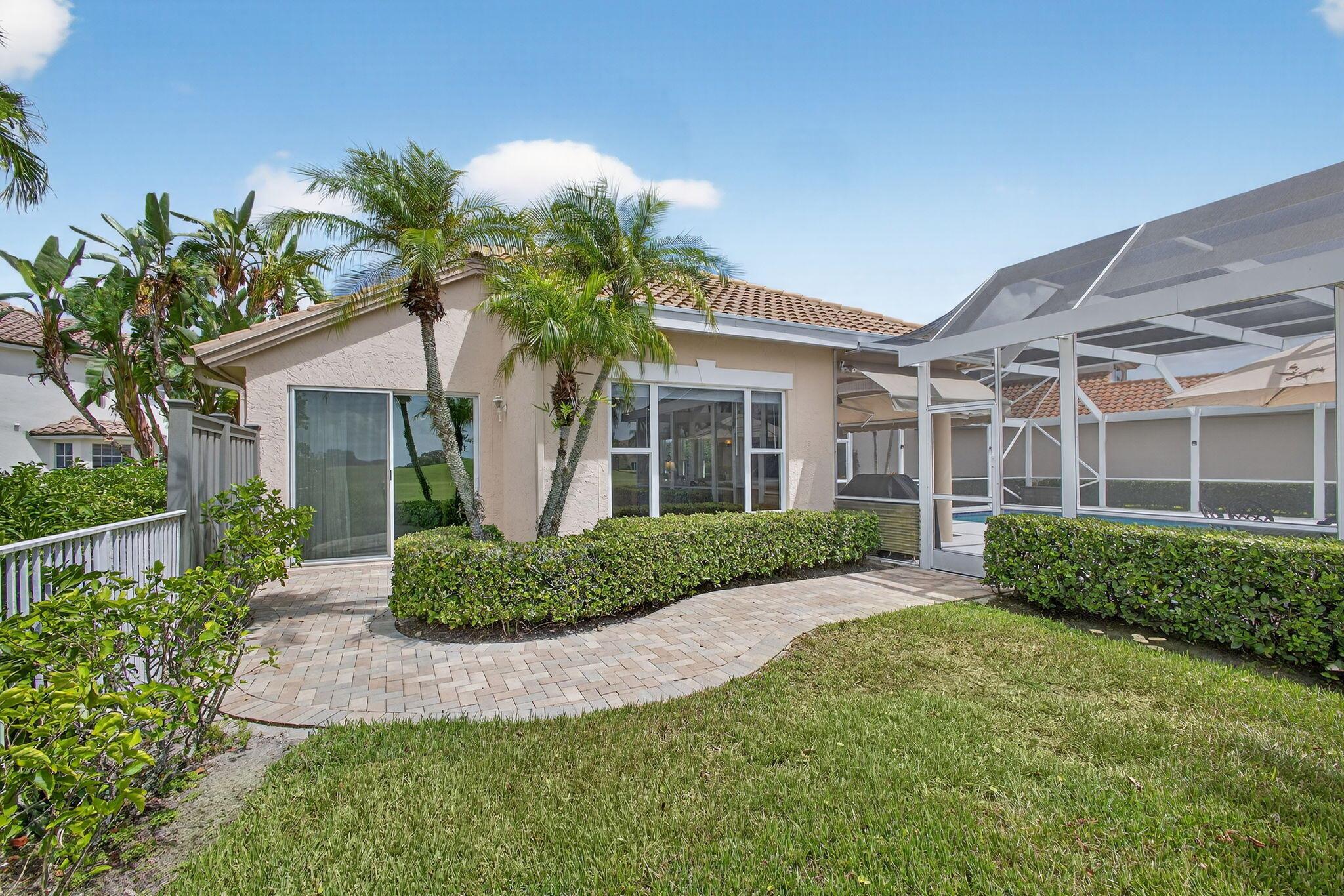 Spend the winter season in this beautifully appointed, clean, & bright home located in the desirable gated community of Augusta Pointe in PGA National. Overlooking the famed Champion Course where the Cognizant Classic is played, you can watch players walk from the 17th green to the 18th tee right from your patio. The property features a large heated pool, perfect for laps, & a spacious screened-in patio with oversized awnings for shade--ideal for entertaining or relaxing, Impact Windows & Doors, & a full house gas generator. Inside, the home is tastefully furnished, comfortable, and move-in ready, offering everything needed to enjoy Florida's warm winter weather & beautiful sunsets. Augusta Pointe combines a prime, location with the luxury lifestyle of PGA National.