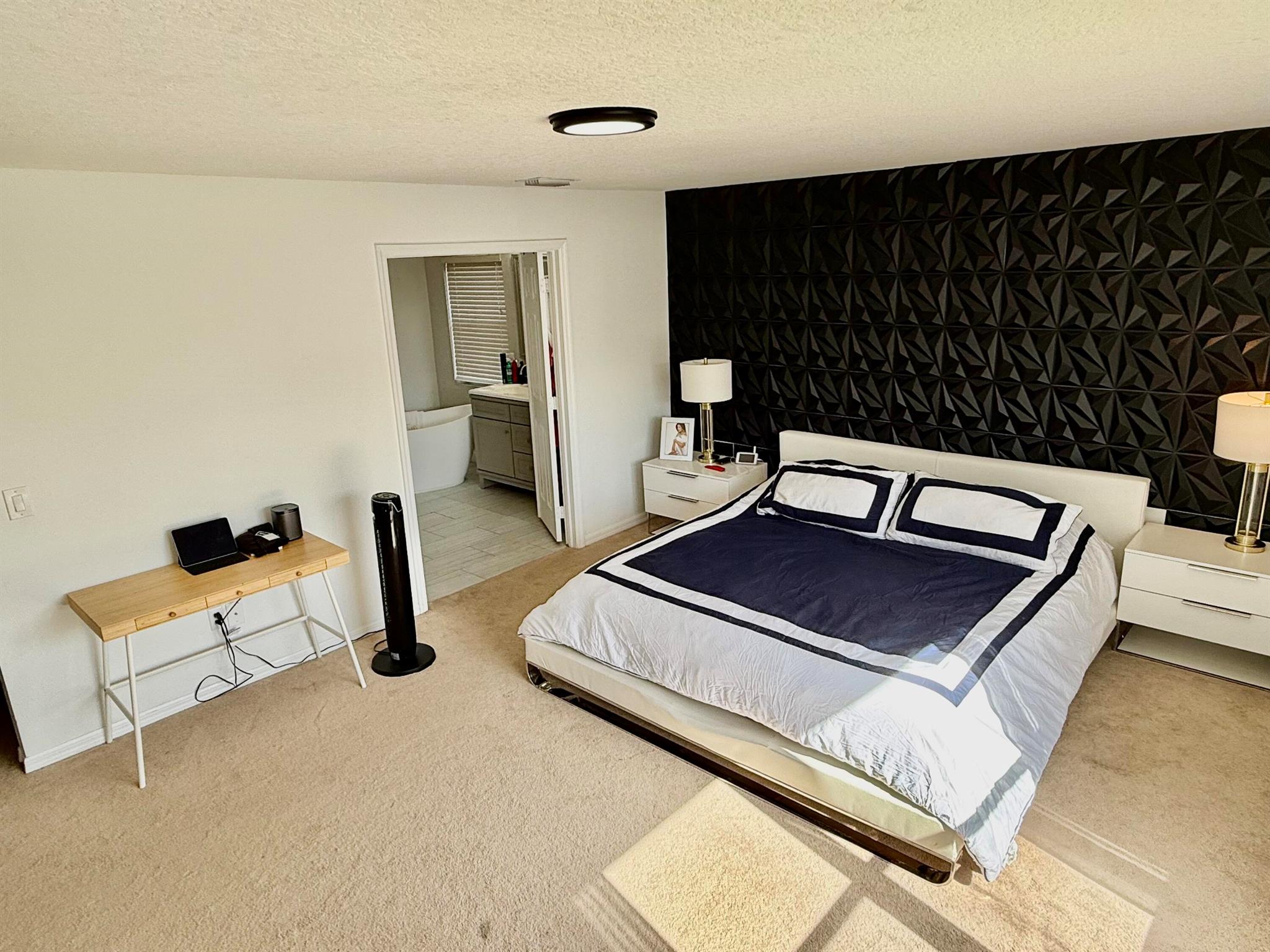 This newly renovated 4-bed, 2.5-bath home is located in a secure, family-oriented gated community. Featuring luxury finishes and modern updates throughout, this turn-key property offers both style and comfort. Inside, the kitchen is a true showstopper, boasting an oversized white quartz waterfall island with custom cabinetry, perfect for entertaining or casual dining. The kitchen is outfitted with high-end Viking appliances, including a gas stove with hood and a premium refrigerator. Additional fridge space is available in the garage. The open-concept living areas include elegant porcelain tile floors downstairs, gorgeous lighting fixtures in the living room and stairwell, and a custom-built, glass-enclosed wine rack set into the wall. The upstairs features four spacious bedrooms all