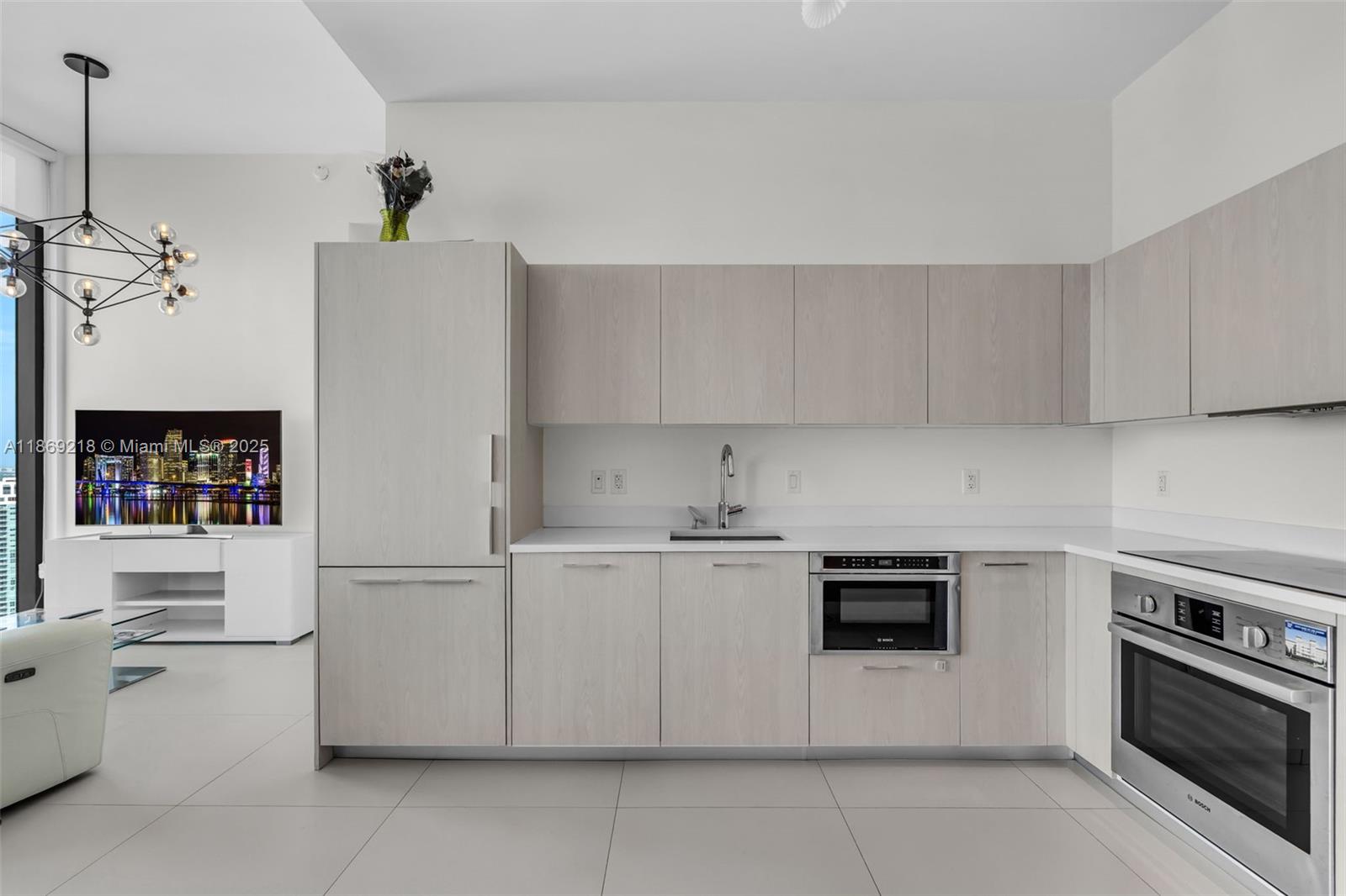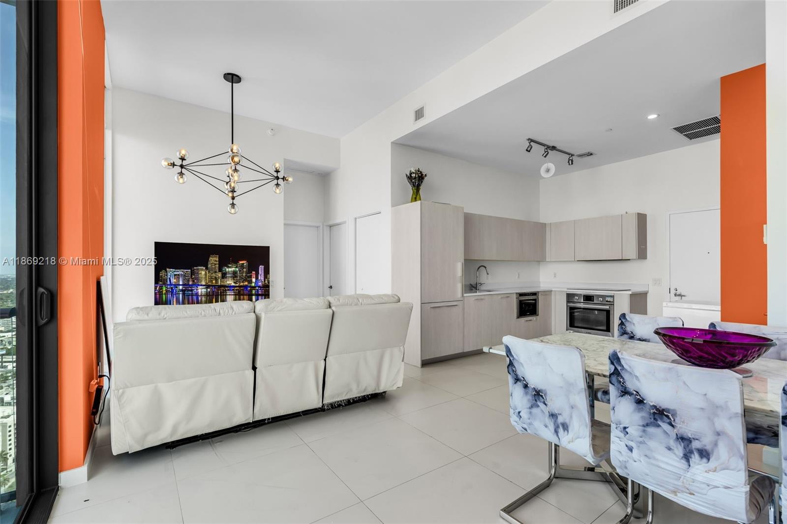 Vacant and ready to move in, this partially furnished 2 bed / 2 bath at Paraiso Bayviews features a smart split floor plan, floor-to-ceiling windows, and a spacious terrace with stunning bay and city views. Contemporary kitchen with Bosch appliances, custom cabinetry, and quartz countertops. Primary suite includes walk-in closet and luxurious bath. Finishes include white ceramic floors, blackout shades, impact glass, and in-unit washer/dryer. Full-service building with rooftop pool, sunset pool, fitness center, spa, tennis & paddle courts, kids playroom, billiards, theater, business center, valet and 24/7 concierge. Prime Edgewater location near Wynwood, Midtown, Design District, and Miami Beach. Partially furnished and move-in ready.