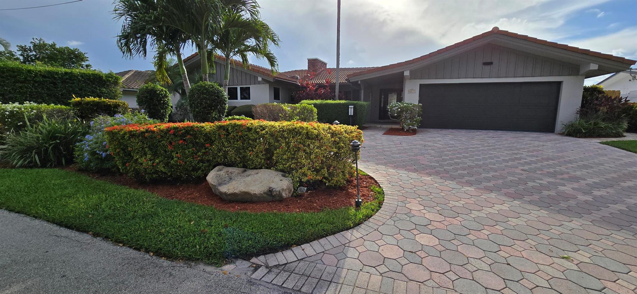 Amazing water views! No fixed bridges! Bring the boat! Beautiful intracoastal home, pool, jacuzzi & dock! Great location close to restaurants, shops & beach! Gorgeous beamed cathedral ceilings, spacious & open floorplan. Remodeled kitchen, granite counters, island, eat in area, stainless appliances, Subzero refrigerator & Thermador double oven. Built in pantry cabinets for ample storage. Butler kitchen & versatile office. Brick fireplace living room, formal dining & buffet area. Family room w long waterfall counter bar. All overlooking the pool & intracoastal! Master bedroom offers walk in closet plus sunroom w closet & water views. Master bath walkin shower & spa tub. IMPACT windows & auto roll down screens. Exceptional waterfront outdoor living space, pool, jacuzzi, extended deck & dock