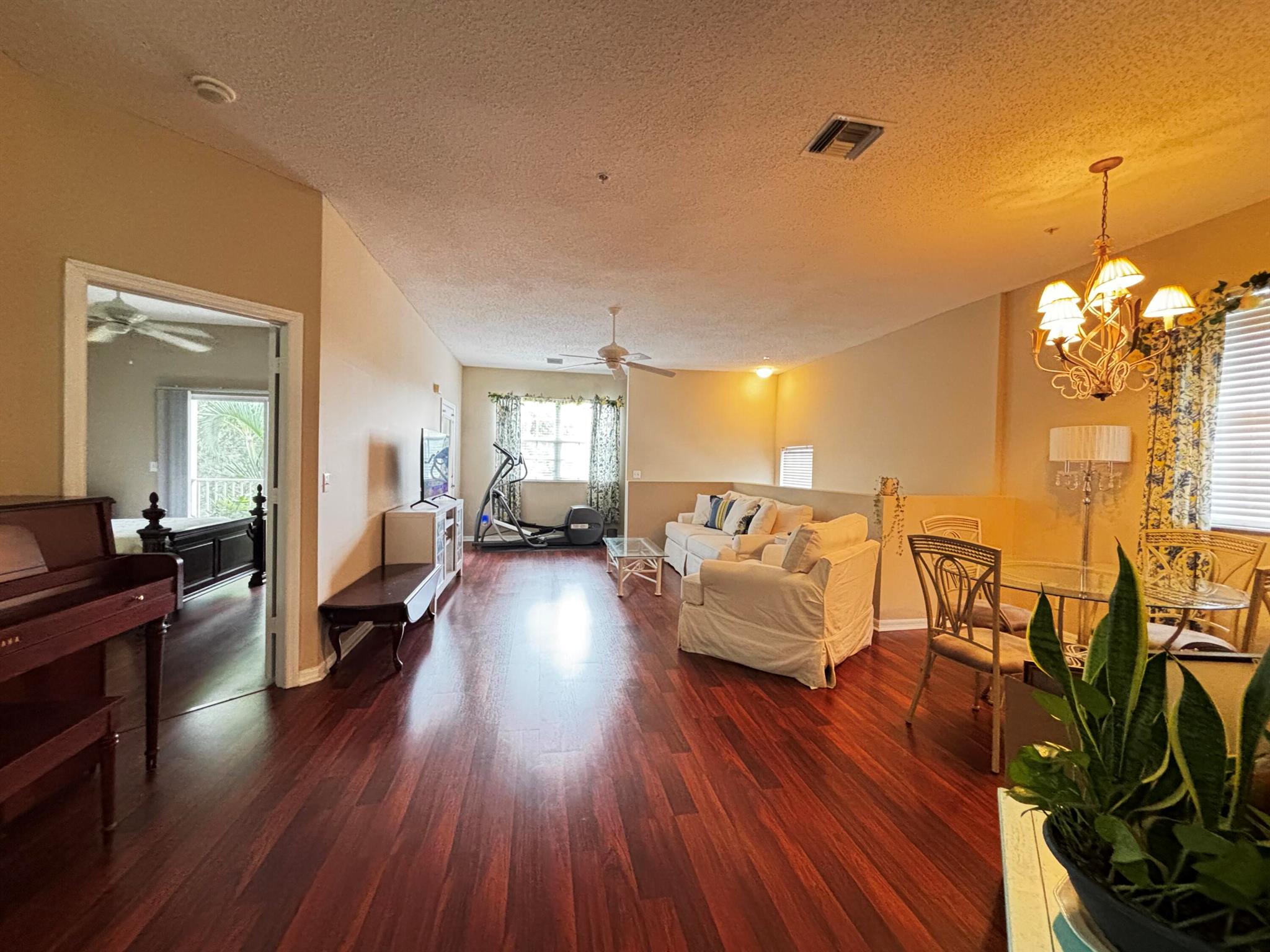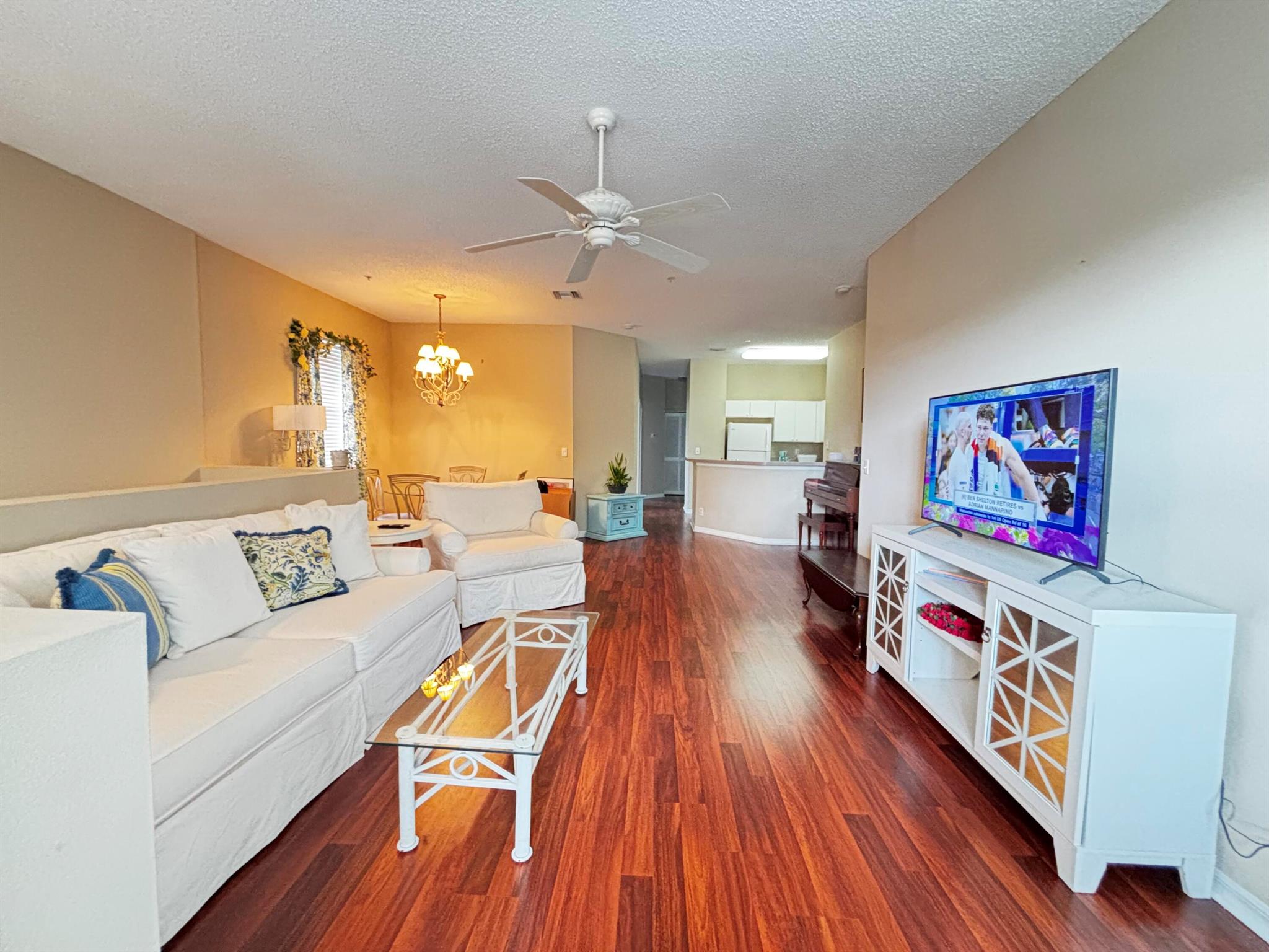 Desirable End unit 3 Bed/2bath condo with 1 car attached garage in Tequesta Trace. Second floor with wood flooring in main living area and all bedrooms. The primary suite includes a spacious walk-in closet. A full-size washer and dryer are conveniently located in the unit. The community also features a well-maintained community pool, playground, and picnic area, ideal for unwinding or spending quality time with family and friends. Trucks Allowed, 2 vehicles per unit, but no Commercial Vehicles. Tequesta Trace is walking distance to post office, library, clinic, drug stores, banks, restaurants and shopping areas. short drive to pristine beaches & the Jupiter Lighthouse. No pets to Tenants and only two vehicles per unit per the Condo association.