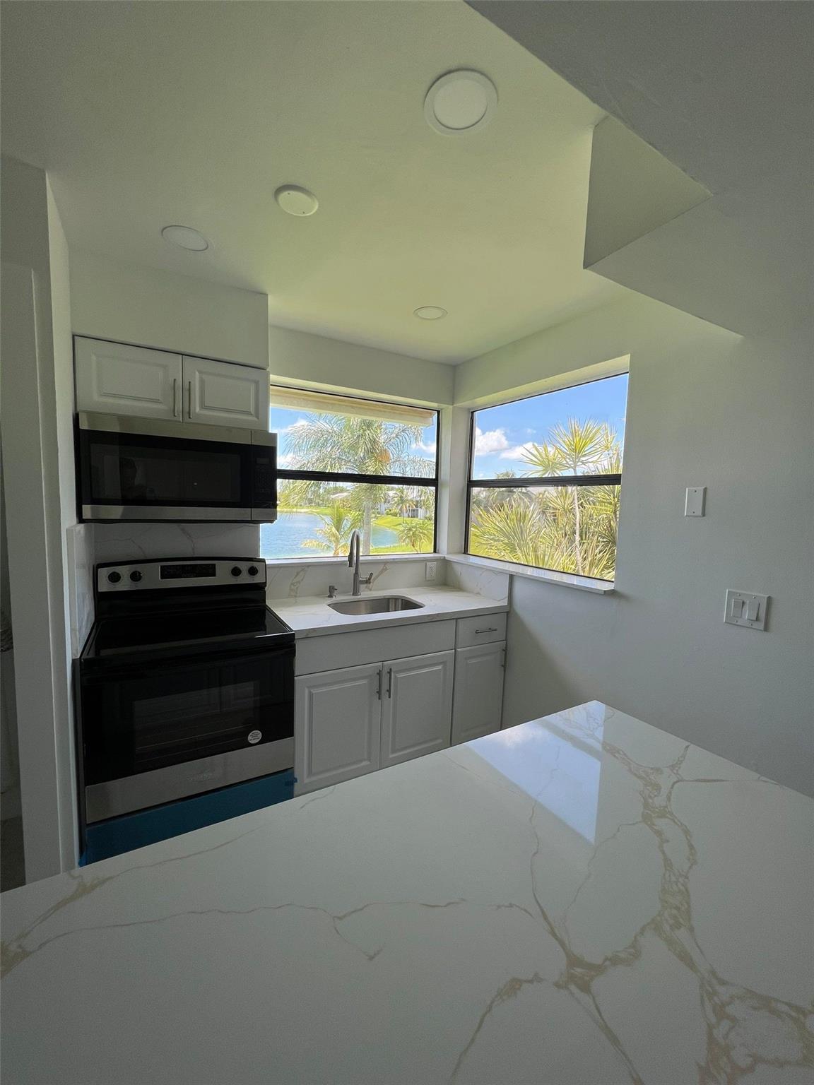 ONLY FIRST MONTH + 1x SECURITY DEPOSIT TO MOVE IN! Make this beautiful renovated 1bed/1bath condo with a stunning lake & beach view your next home! It is bright & spacious thanks to the volume ceilings & east-facing windows & doors. Wake up to expansive water views from every room or from your large balcony! Brand new features include: vinyl floors, paint, LED lighting, kitchen cabinets w/ granite countertops & SS appliances, AC unit, bathroom vanity & tile & newly installed washer/dryer. 1 parking space + plenty of guest parking. Gated community w/ clubhouse, multiple lakes (catch & release fishing okay), 2 pools, playground, basketball courts, lakeside walking paths & beach pavilion. Minutes from Turnpike, US1, FL Keys, Outlet Mall, Baptist Hospital, schools & restaurants.