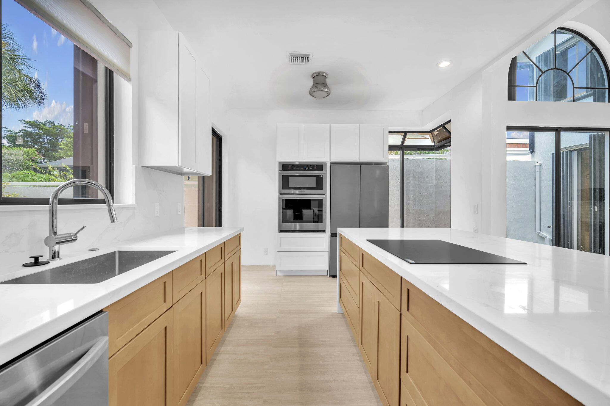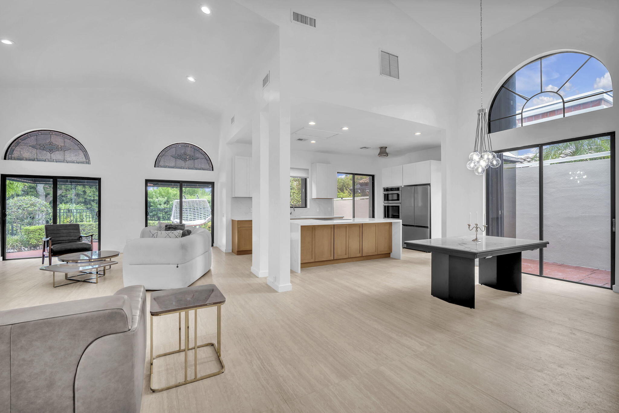 Discover luxury and comfort in this fully renovated 3-bedroom, 2-bathroom home located in the exclusive gated community of Villa Flora at Boca Pointe. Flooded with natural light and designed with soaring ceilings and a sleek open-concept layout, this home is as stylish as it is functional. The designer chef's kitchen is a true centerpiece, featuring quartz countertops, custom cabinetry, and a modern design perfect for both entertaining and everyday living. The spacious primary suite is conveniently situated on the main level, offering both privacy and elegance. This move-in ready home comes fully furnished with high-end finishes and quality furnishings throughout. Additional upgrades include a new AC system, new water heater, roof replaced in 2012, and a 2-car garage.
