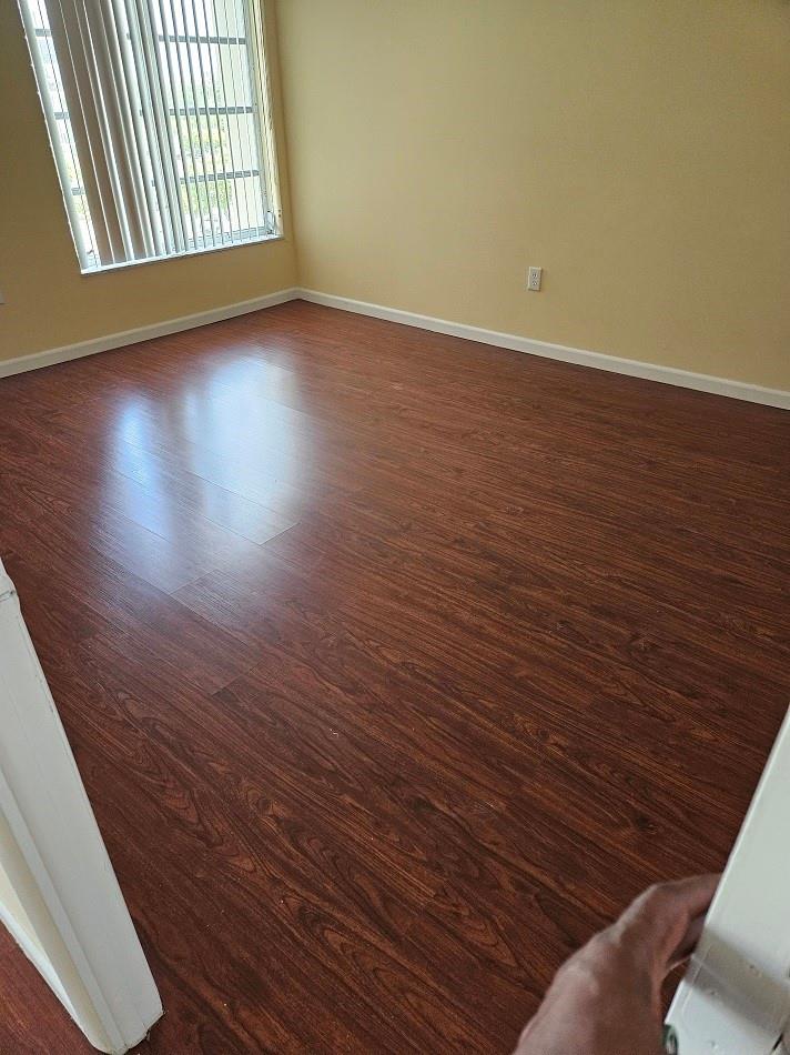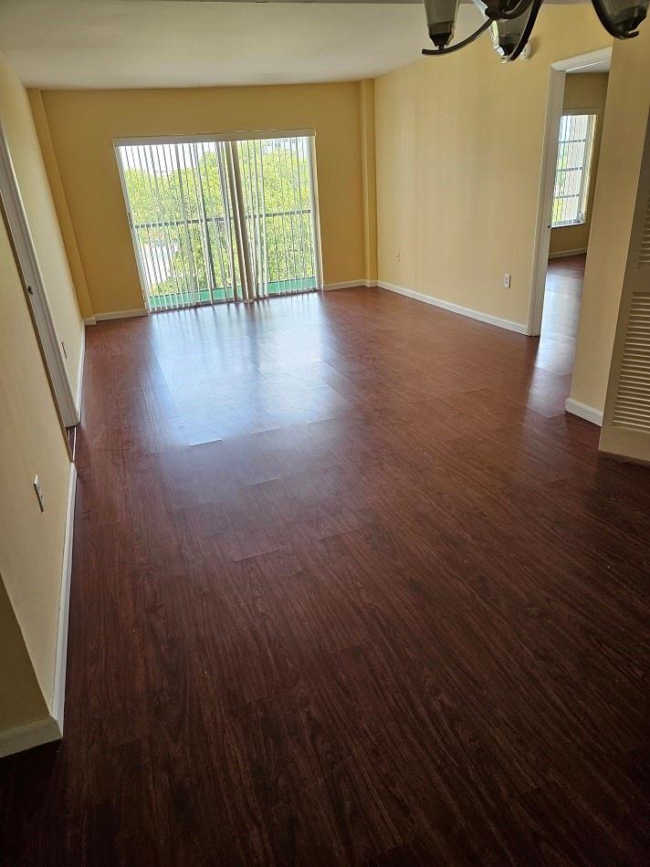 Very nice 2/2 on top floor. Laminate floors throughout. Split bedroom plan. walk in closet in large master bedroom. Washer & dryer in inside. Great rental price. First and security okay
