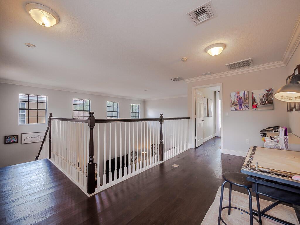 Two Story, 4 Bedroom, 2.5 Bathroom plus loft, 2 Car Garage Home situated on a spacious corner lot, in the 24 hr manned gated community of River Bridge. This home offers a complete set of hurricane panels, making storm prep a breeze. Inside, the interior aesthetic is defined by wood-look tile floors that seamlessly traverse the living spaces. Crown molding, great lighting, high ceilings and neutral colors make this living space fresh and airy. The stairway is the focus point of the living area. Featuring vinyl stair treads and flooring on the upper level contribute to both elegance and ease of maintenance. The updated kitchen features granite countertops, white cabinetry, pantry, and stainless steel appliances.