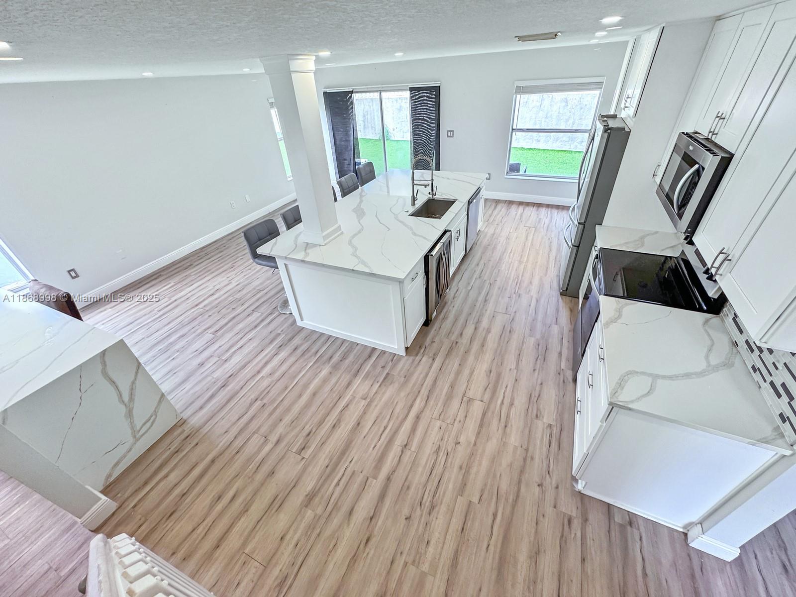 Beautiful home in Sunrise, near Sawgrass Mills Mall. Open floor plan with 4 bedrooms and 2.5 baths on premium 10,359 sq ft lot. Gorgeous remolded kitchen boasts modern white shaker cabinets and stunning quartz counters. Relax by the fire place in the expansive family room complete with stylish laminate flooring. Spacious primary suite has a large walk-in closet with a large en-suite bath. The oversized fully fenced backyard is perfect for entertaining. 2 car garage and driveway space for an additional 2-3 cars. Great location close to shopping, dining, entertainment and Flamingo Park. Pets considered with additional pet deposit.
