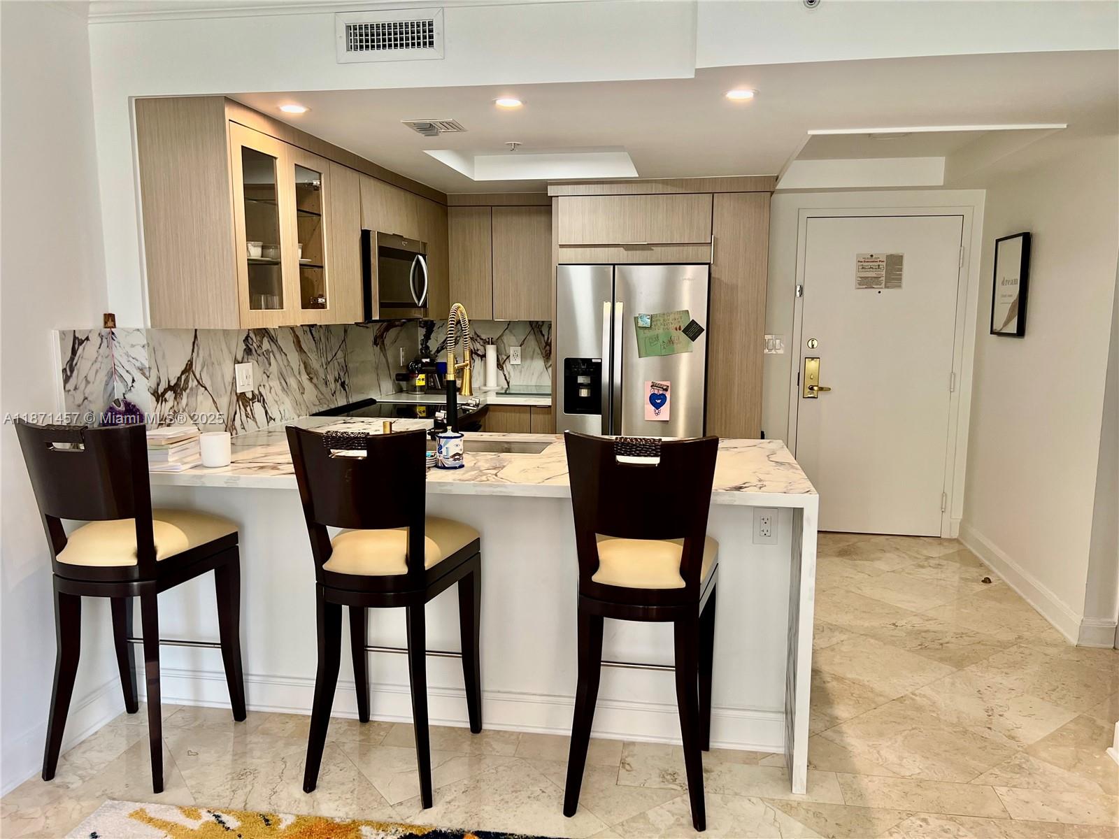 Completely remodeled, light, bright 1 bedroom 1 bath unit located on the 9th floor of The Mutiny in Coconut Grove, this unit features: Brand new modern kitchen , countertops, range, dishwasher, refrigerator. Full size washer and dryer inside your unit. Brand new bathroom featuring: New tile floors and shower walls, new custom cabinet, new counter tops, new shower glass door, new toilet. Custom walk in closet, custom cabinetry in the bedroom for extra storage. This unit faces east and has a balcony where you can enjoy the view of the marina in front as well as the key Biscayne bridge and skyline. Building has a beautiful tropical pool, gym and bar/restaurant. Valet parking, private parking in a garage. Walk to restaurants, bars, stores, Cocowalk! Bed and living room couch can be sold.