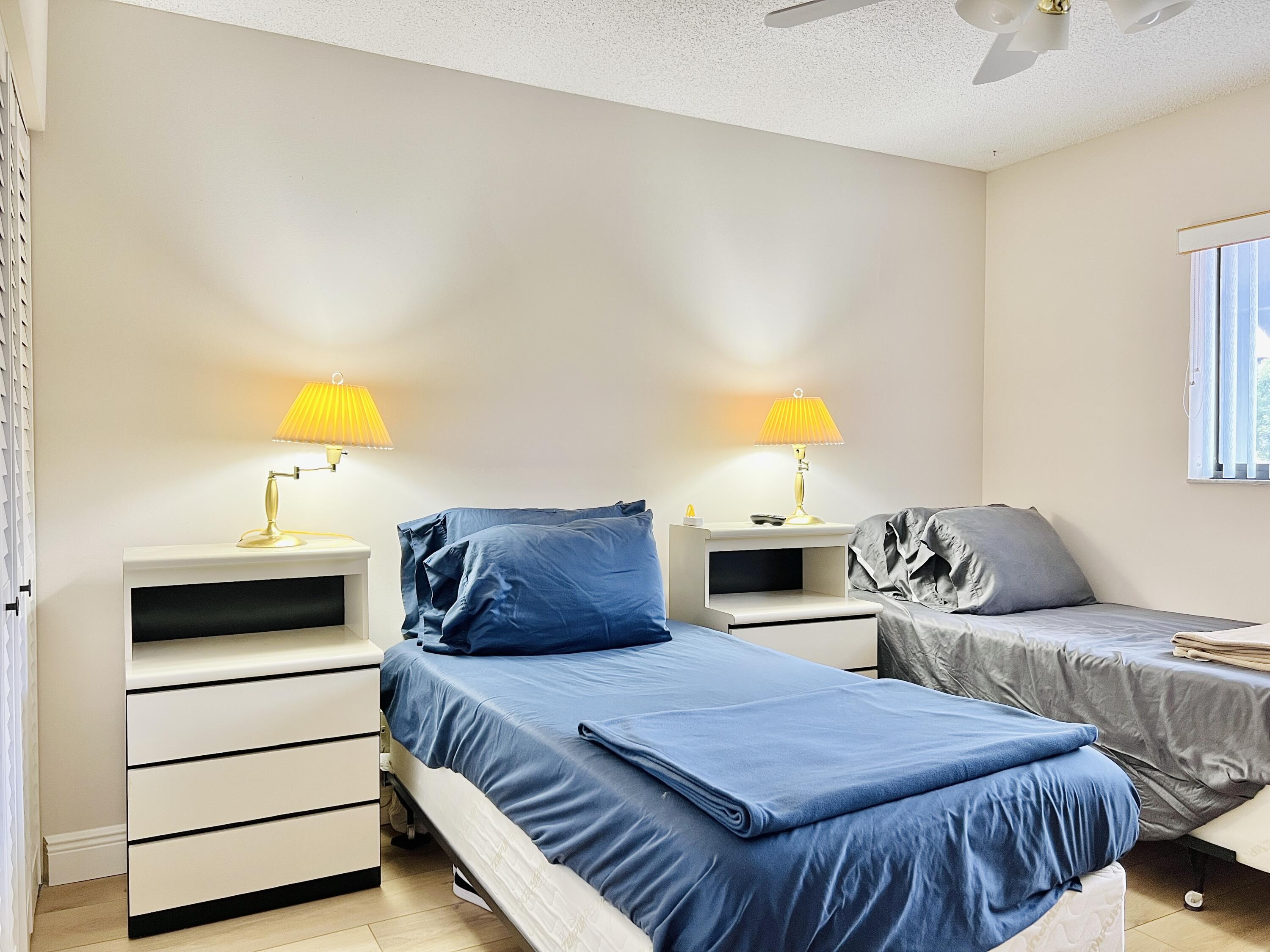 Beautifully updated 2 bedroom, 2 bathroom furnished condo in a vibrant 55+ community. The light and airy eat-in kitchen features classic white shaker cabinetry, light granite countertops, and there is new flooring throughout the space. Enjoy in-unit laundry, a spacious layout, and a large screened patio overlooking a serene lake that's currently being re-landscaped. This is your personal slice of paradise. The community offers a clubhouse with a pool, steam room, sauna, and more, perfect for relaxing or socializing. Cable, internet, and water are included for added convenience. This condo delivers comfort, style, and easy access to everything South Florida living has to offer.
