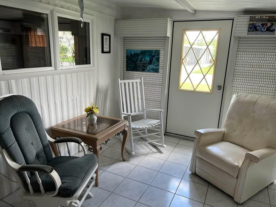 Available Now – 5 Month Minimum Stay Enjoy resort-style living in this 2-bedroom, 2-bath manufactured home, located in a secure, gated 55+ community. Enjoy relaxing in the enclosed side patio or outdoors on the open patio under the carport. Home is fully furnished with room indoor and out for entertaining. Must SEE! Whether its our holiday parade, community activities, or just fun with friends... join us for another great winter in south Florida - Community Amenities Include: Clubhouse access with oversized pool, Putting Green, Tennis & pickleball courts, Exercise room, ping pong tables, and much more
