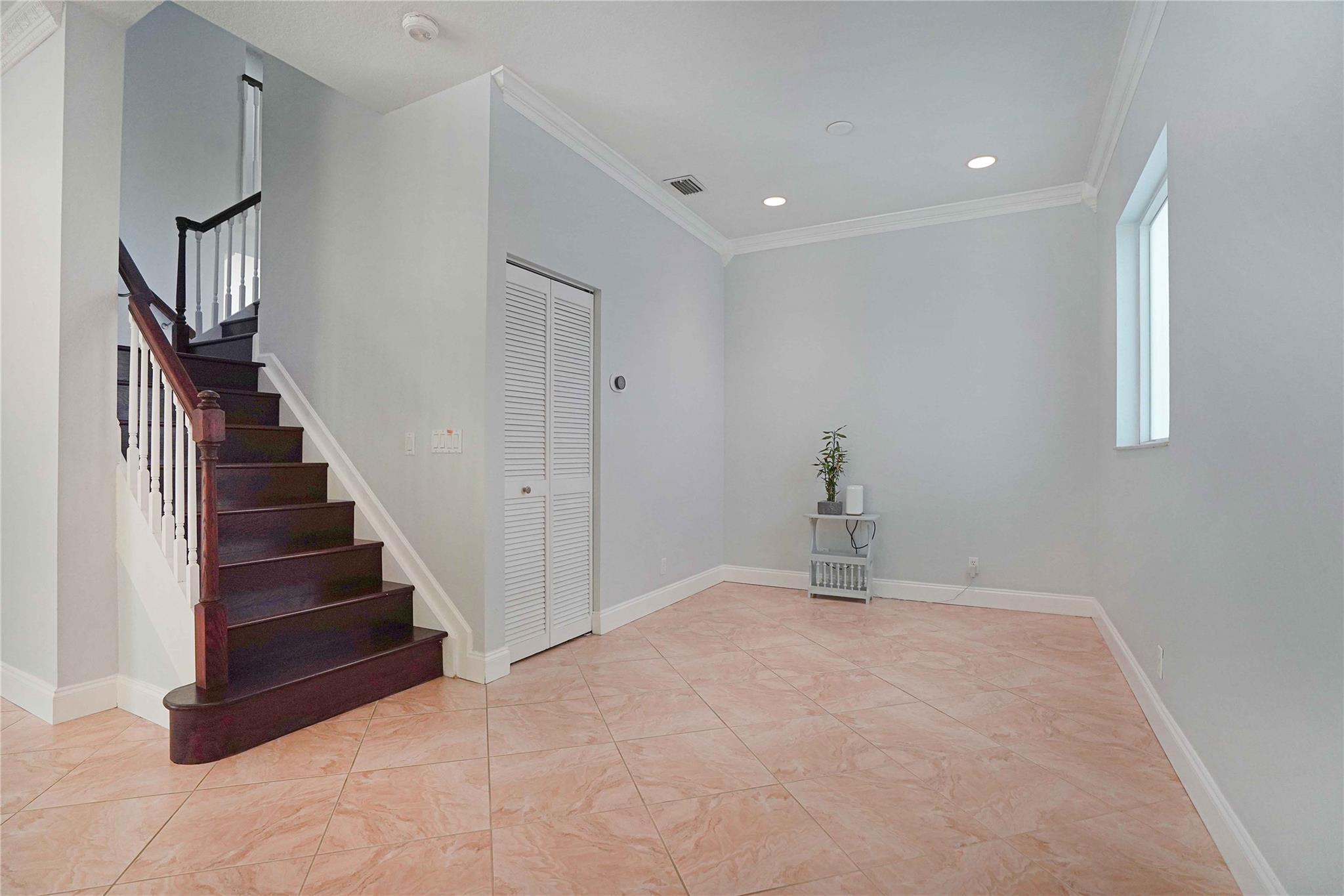 This beautifully updated home features 4 bedrooms, 2.5 bathrooms, a versatile bonus room adjacent to the primary suite, perfect for a home office. Porcelain flooring throughout the first floor and wood flooring upstairs. The spacious second-floor layout includes all bedrooms, two full bathrooms, and a laundry room. The main floor features a stylish powder room, a newly renovated kitchen an open living area that flows into an oversized, covered patio. The large, fenced backyard backs onto a natural preserve and freshwater canal, offering privacy and scenic views. Additional features include hurricane-impact windows and an epoxy-finished 2-car garage. Located on a quiet cul-de-sac with easy access to major highways. AVAILABLE IN NOVEMBER. 24HS ADVANCE NOTICE FOR SHOWING.