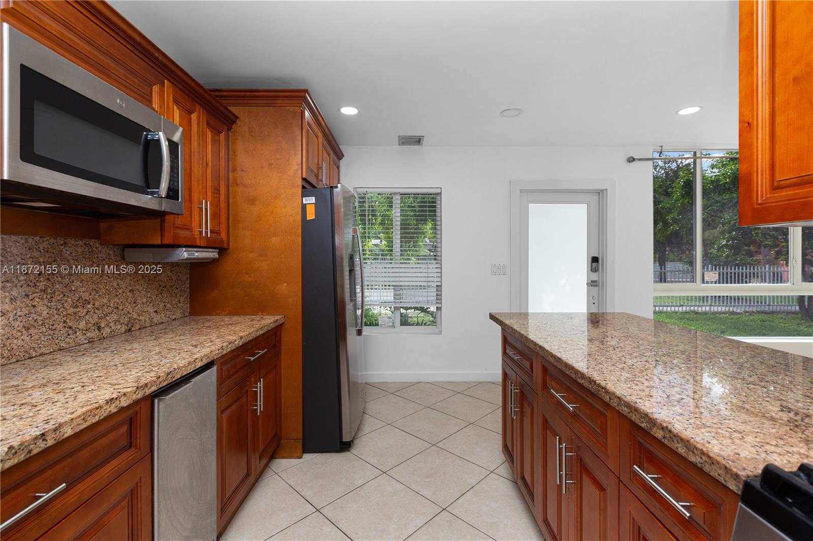 Welcome to this beautifully remodeled single-family home situated on a large corner lot, offering plenty of space for parking and entertaining. This home features 3 bedrooms and 1 bathroom, with updated kitchen and bathrooms, sleek finishes, and recessed lighting throughout for a bright, modern feel. Enjoy the comfort and security with hurricane impact windows plus the convenience of an in-unit washer & dryer. Additionally, the property also includes an efficiency with private entrance and bathroom—perfect for extended family, guests, or a private workspace.