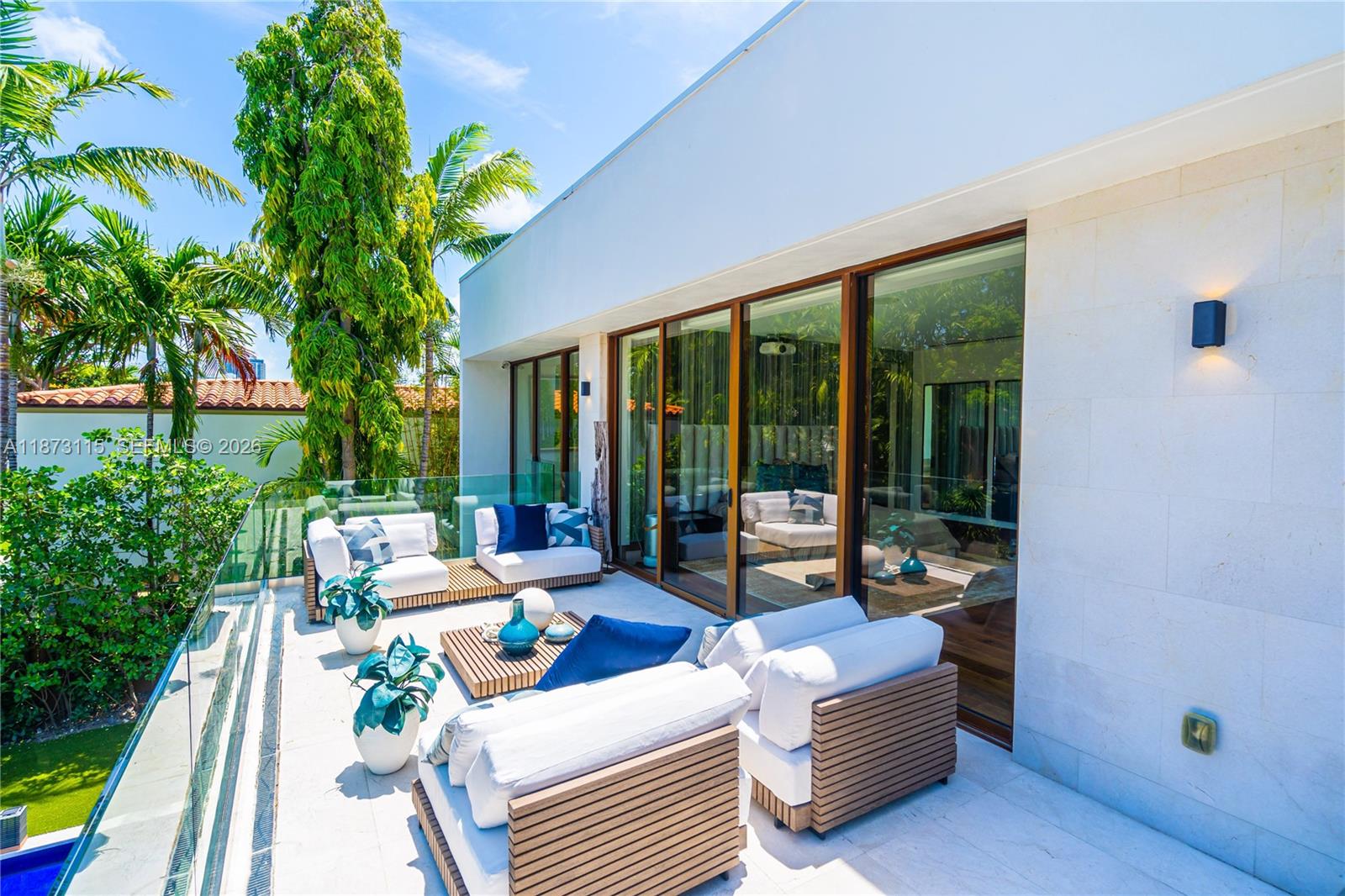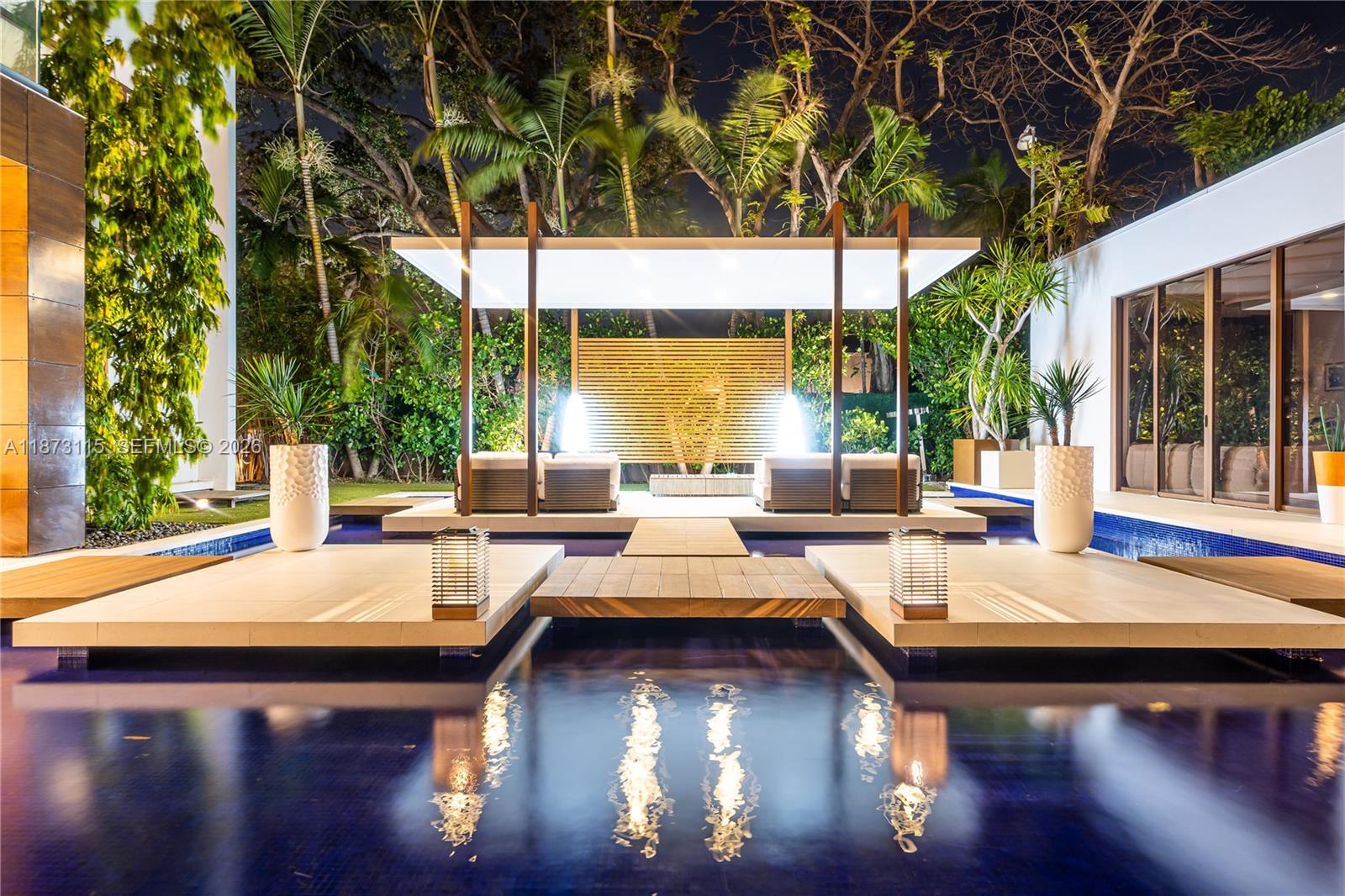 Exquisite modern residence is a stunning expression of contemporary luxury in one of Miami Beach's most exclusive neighborhoods. Spanning 5,119 SF + 14,300 SF lot, home features 4 beds/4.5 baths & open, light-filled design w/ bespoke detail throughout. Great room is framed by floor-to-ceiling glass, seamlessly connecting to lush landscaping by Lewis Aqui. Marble & quartz flooring on the 1st level transition to warm oak upstairs, complemented by elegant Delta lighting. Snaidero kitchen w/ Miele appliances, double ovens + sleek cabinetry. Spaces include office, den, pool house + gym. Outdoors, shimmering pool, summer kitchen & dining areas provide the perfect setting for entertaining. The home's refined aesthetic is enhanced by Prodema cladding, while a full-house generator adds convenience.