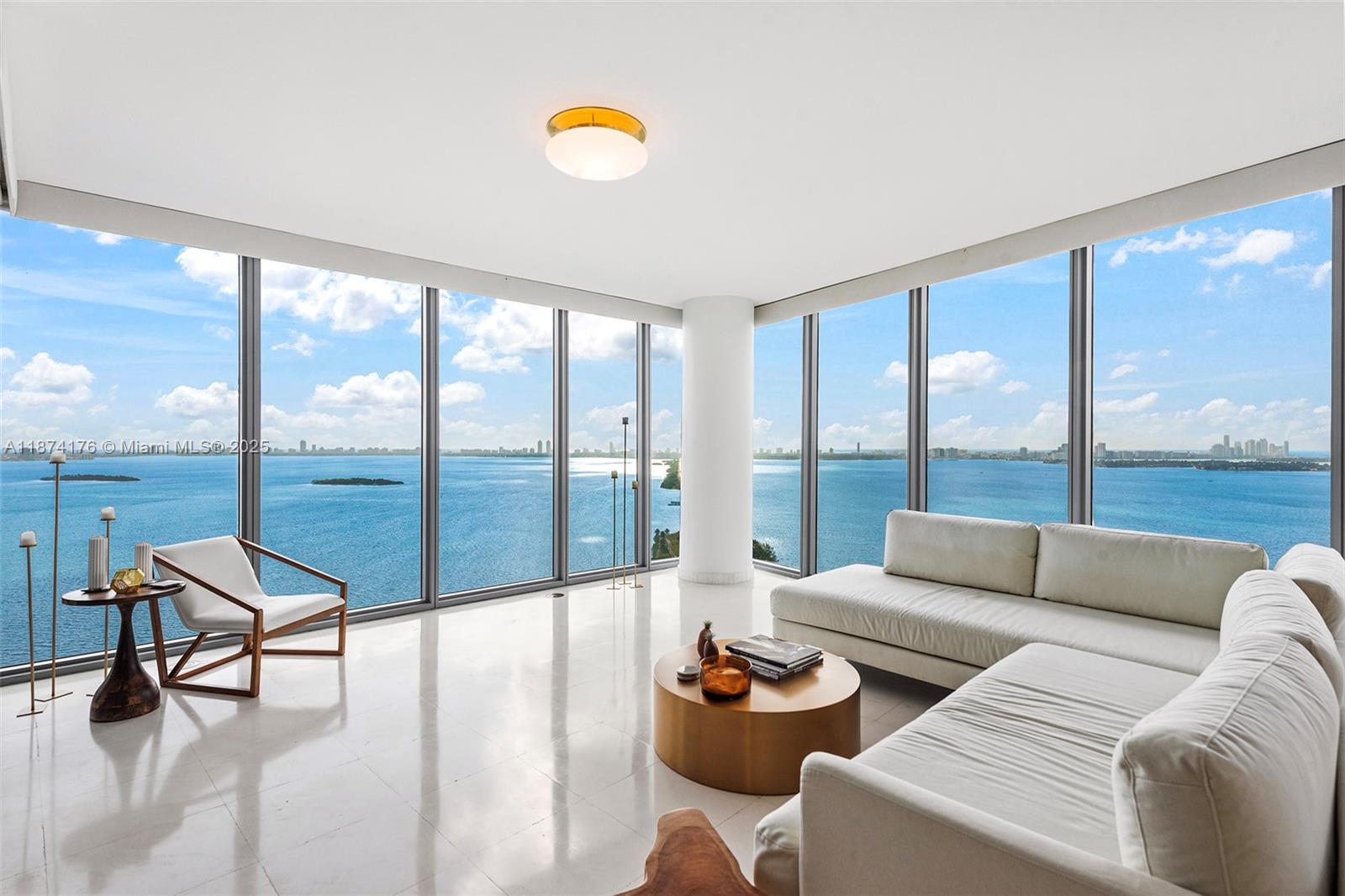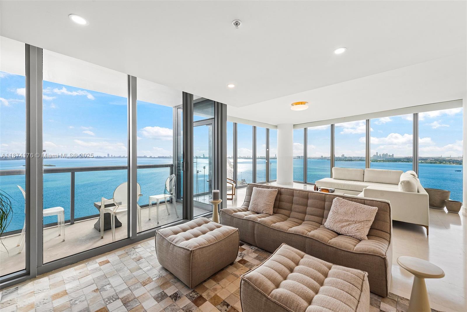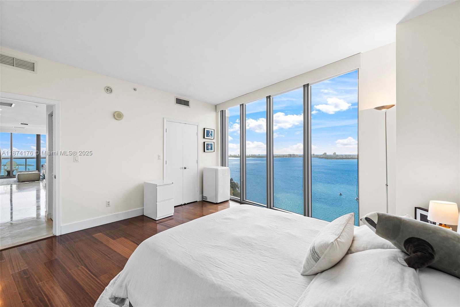 Step into elevated waterfront living with this stunning 2-bedroom, 2,5-bath waterfront residence located in the heart of Edgewater, just steps from Midtown and Design District. This is the largest non-penthouse unit at Blue Condo, offering panoramic views of Biscayne Bay and Miami Beach through floor-to-ceiling windows in every room. The open-concept layout features a modern kitchen with granite countertops, custom built-in closets, and en-suite bathrooms in both bedrooms. Ideally situated minutes from Miami Design District, Wynwood, Brickell, Miami Beach, and MIA Airport. Building amenities include 24-hour concierge, valet parking, two pools, a fitness center, sauna, barbecue area, movie theater, business center, party room. Resort-style living at its finest!