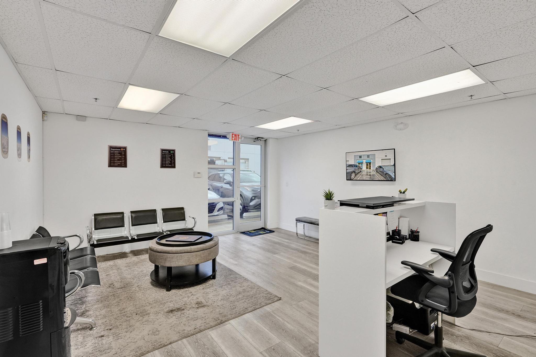DON'T MISS THIS Exceptional ±1,650 SF (Including Mezzanine) flex warehouse in the highly sought-after Miami Airport West/Doral submarket. Just 5 minutes to Miami International Airport, this unit combines prime accessibility with a turnkey professional build-out. A polished reception, private office, and mezzanine—accessible by a modern spiral staircase—deliver a workspace ready for immediate occupancy. The warehouse features 20’ clear height, a street-level loading door, and efficient layout. Ideal for logistics, distribution, e-commerce, or contractors needing a prestigious, functional base in one of South Florida’s most connected industrial hubs.