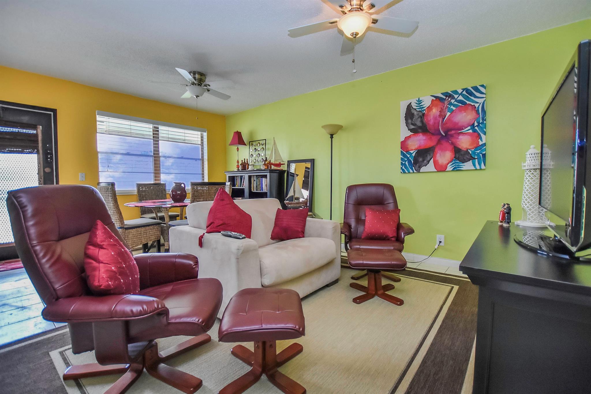 How does cocktails on your private screened enclosed balcony overlooking plush gardens, fruit trees, exotic birds wildlife and flowing canal outside your primary bedroom with walk in closet sound? This rare vacancy includes a ''State of the art'' gym membership AND HBO w basic cable.Our Courtyards offer ample stone tables and umbrellas for family BBQ and fresh herbs flowers and a delightful ylang ylang tree make this home magic.Emotional support pets are welcome & the association is non smoking to protect our lungs. Newly remodeled with modern Gray plank tile floors, 6 panel doors, glass shower doors, newer appliances under 1 year, circulating fans, & dimmers throughout for romantic ambiance.Entire condo has FRESH PAINT and NEW floors.