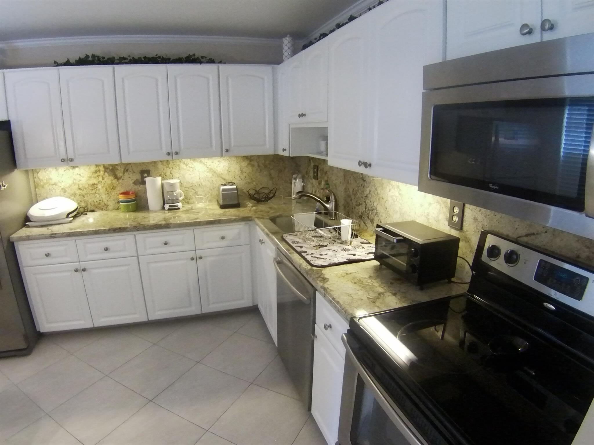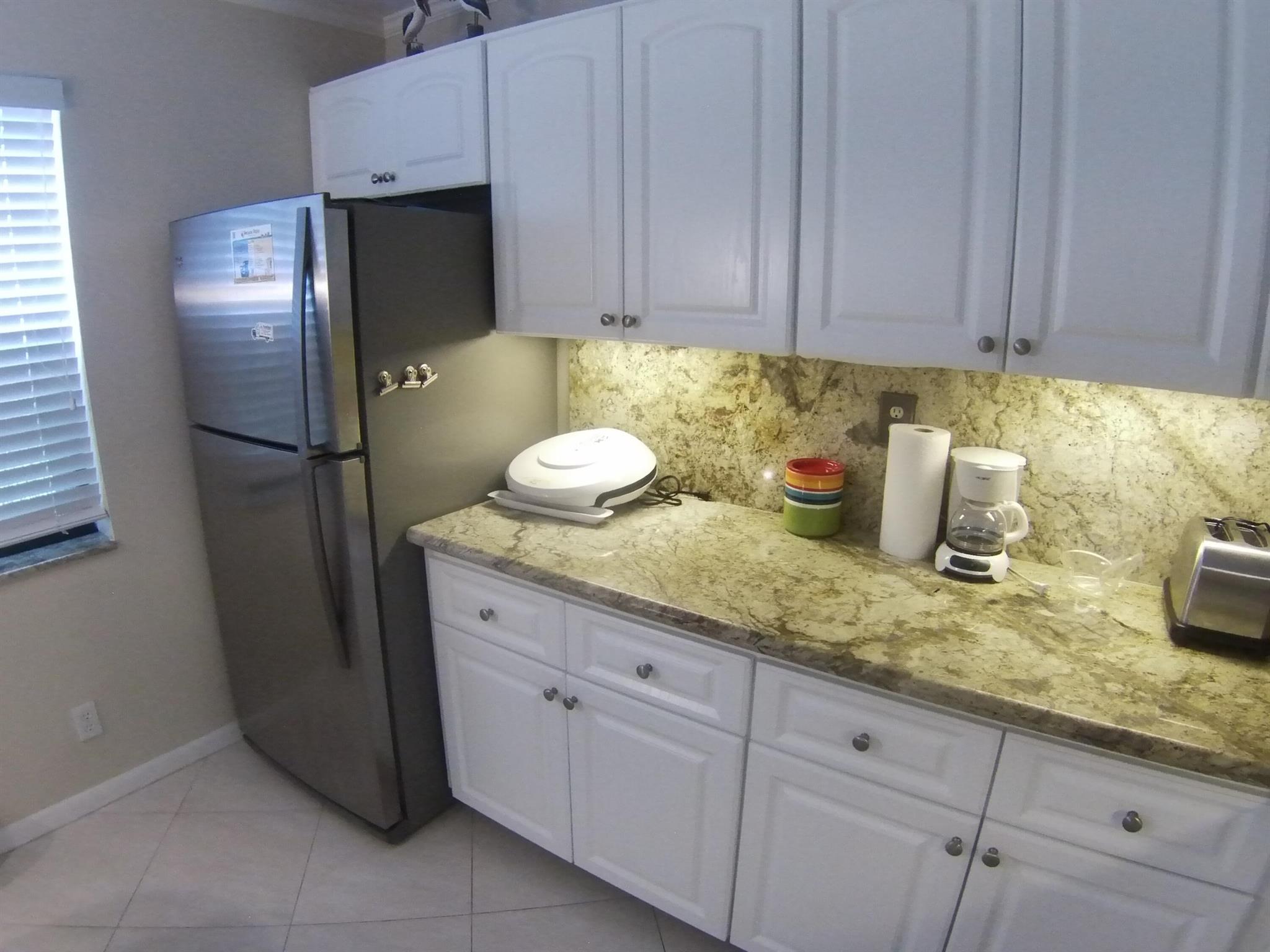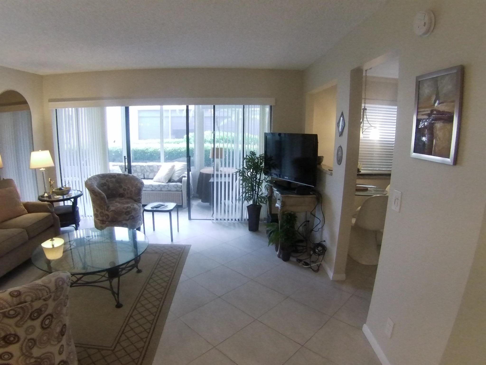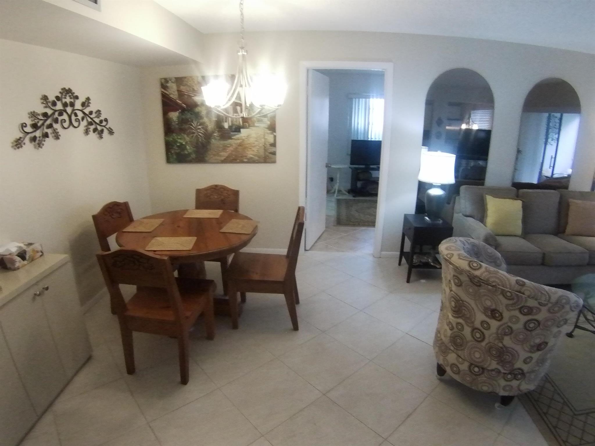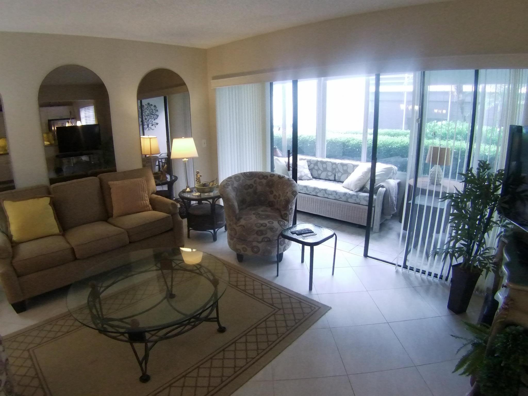 55+ community. SEASONAL RENTAL - First floor, unit furnished, one-bedroom condo. Tile throughout. Updated kitchen cabinets. 1.5 bathrooms. Enclosed patio with washer and dryer. Located 6 miles from the beach and the historic district of Delray Beach. The public library and Delray Market Place are within 2.5 miles of Kings Point. The community has multi-million dollar clubhouses. It also has entertainment, parties, bus service, golf courses, pickleball, tennis, outdoor pools and so much more!