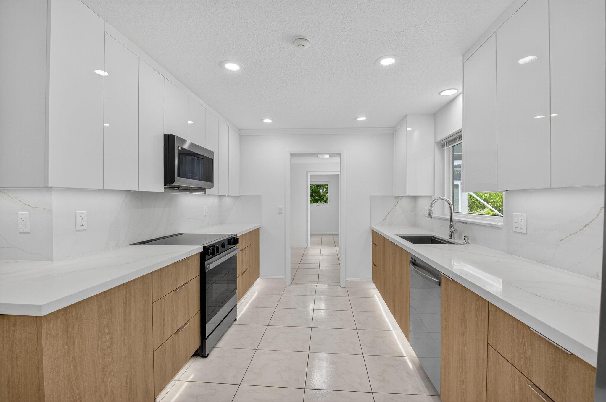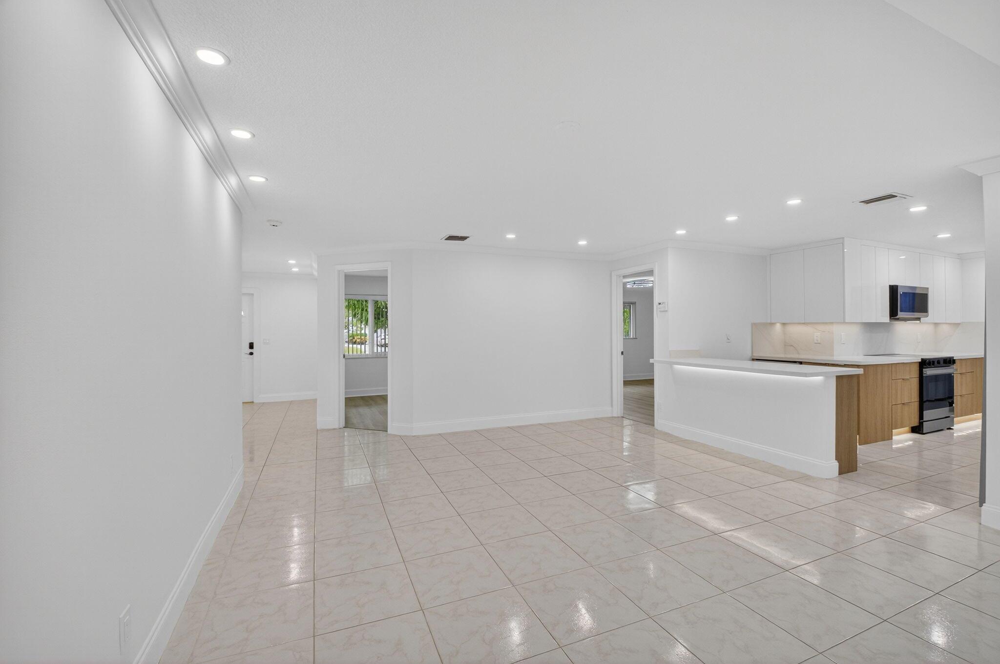 Gorgeous single family pool home in Delray Beach. Home features 4 spacious bedrooms + flex room, 2,200+ square feet under air, fully upgraded, brand new kitchen w/ custom cabinets, new appliances, wine cooler and beautiful Quartz countertops. Brand new bathrooms, custom LED lighting all throughout the home, spacious walk-in closet in master bedroom w/ custom powder room. This home offers the perfect blend of luxury, convenience and privacy. 2 car garage plus oversized driveway, hurricane impact windows, big pool patio and large backyard (over 10,000 sqft LOT) with fruit trees and a garden oasis for privacy. Ideal for entertainment and summer vibes all year round! *LAWN, POOL MAINTENANCE AND WATER SERVICE INCLUDED* NO HOA. Pets are welcome. Book your private tour today!