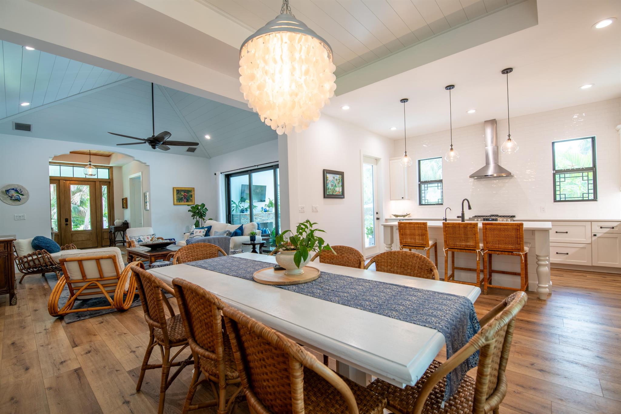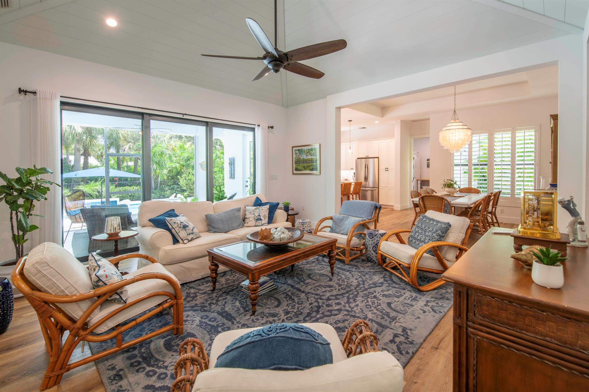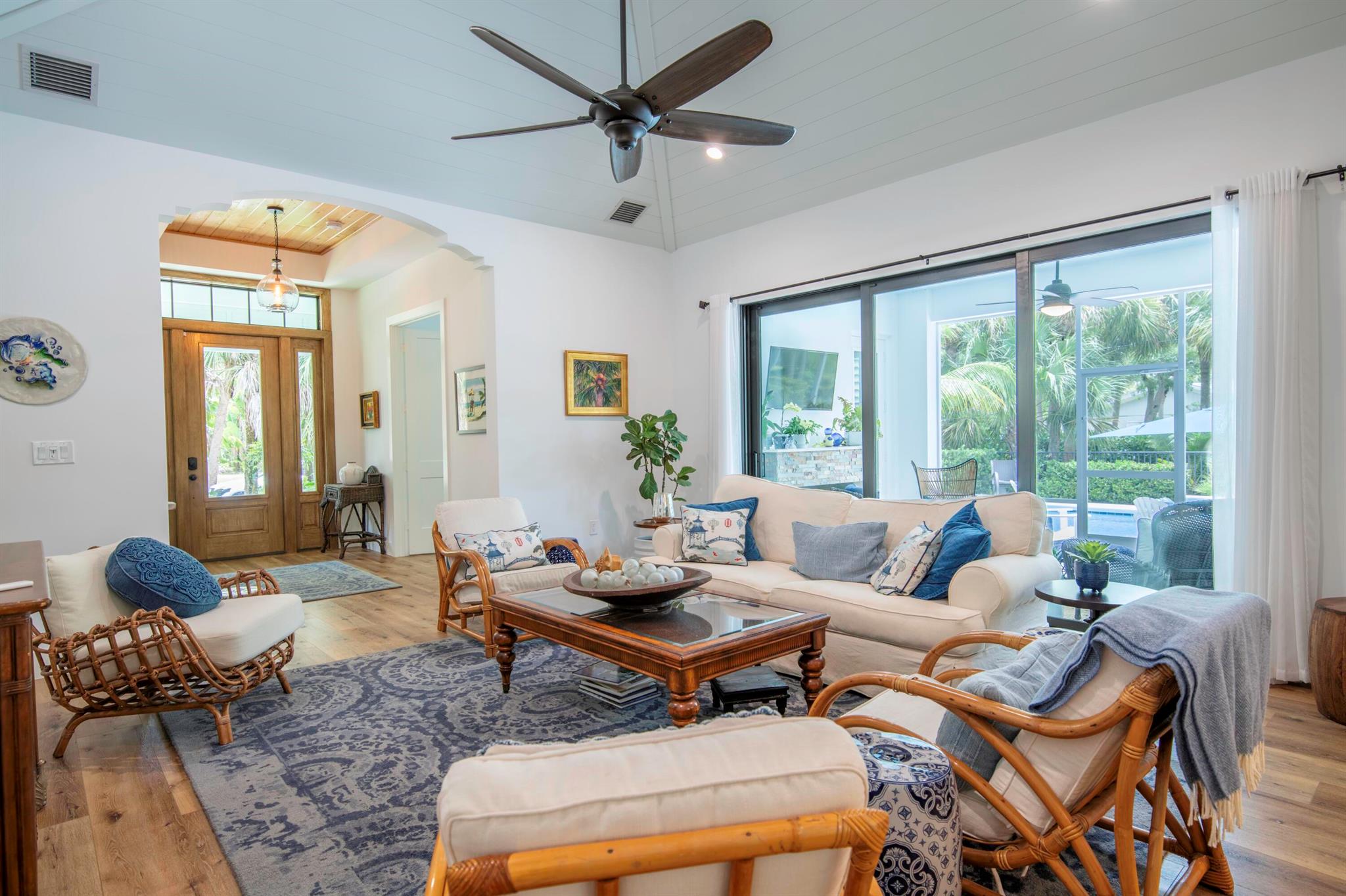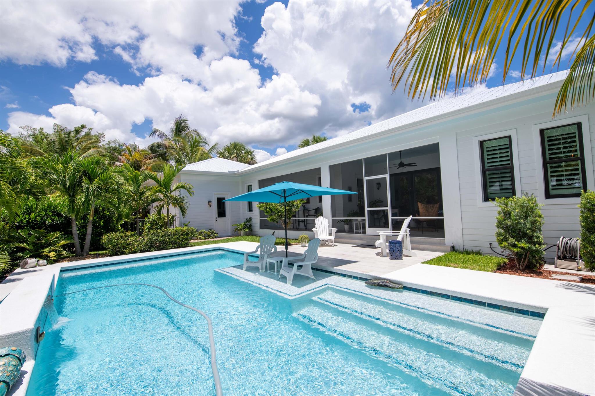 Newly built southern craftsman style home on private, lushly landscaped lot with saltwater pool. Walk to Jupiter Island beach and historic Hobe Sound featuring coffee shops, live music, brewery, designer shops and outdoor dining at gourmet restaurants. Housekeeping, landscaping and pool services included. Fenced back yard for your pets. Enjoy the cozy fireplace on your screened porch overlooking the pool. Volume tongue and groove ceilings, designer furnishings and chefs kitchen.