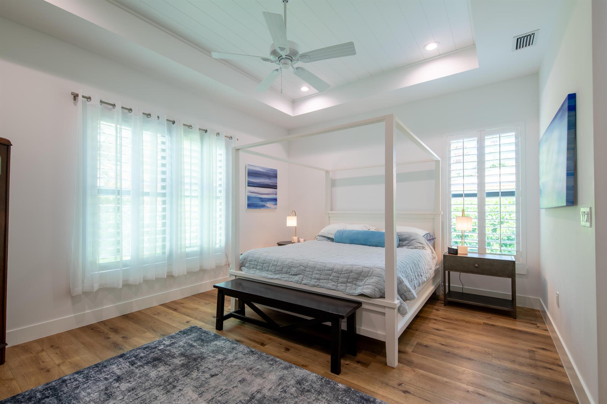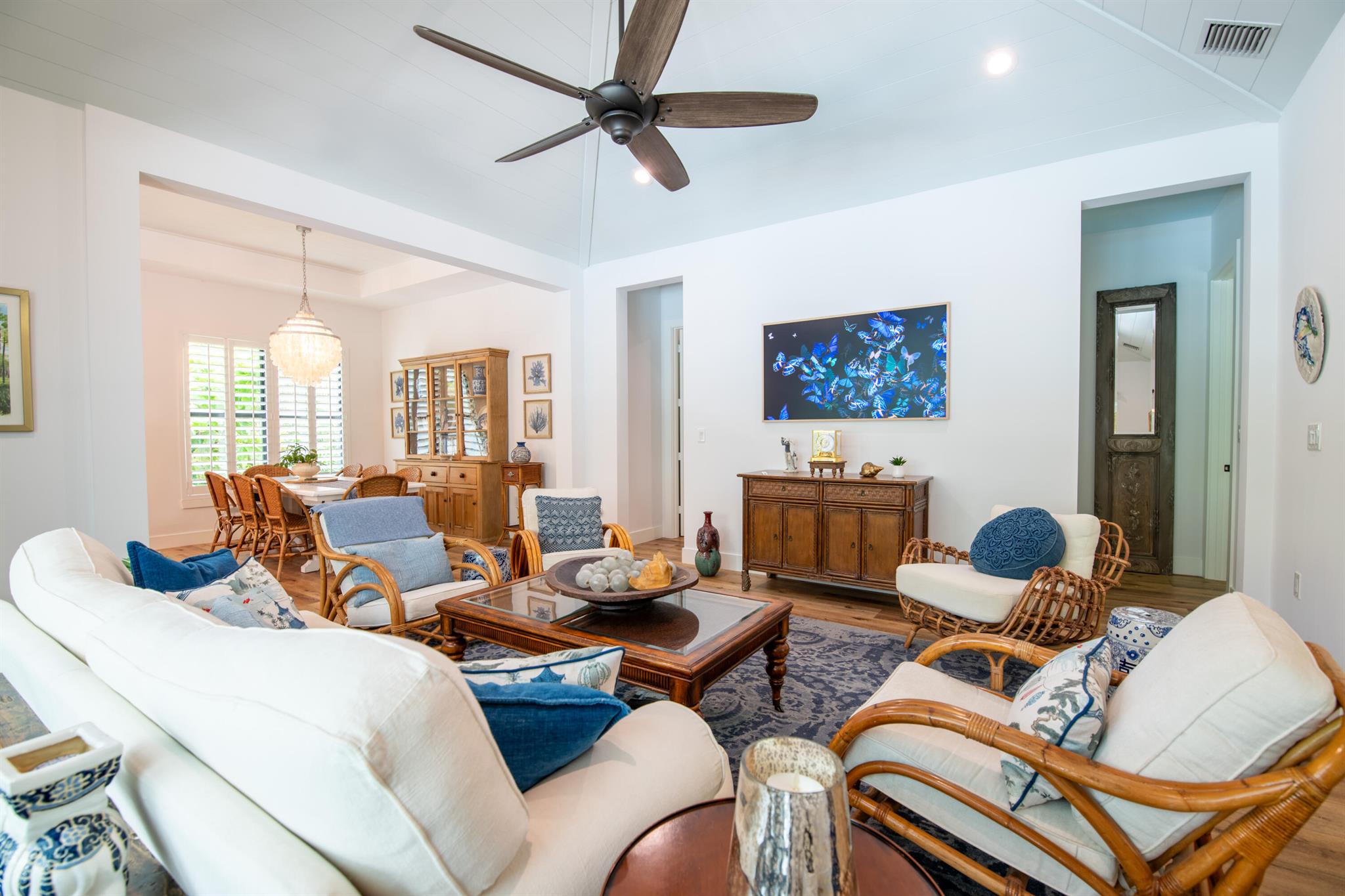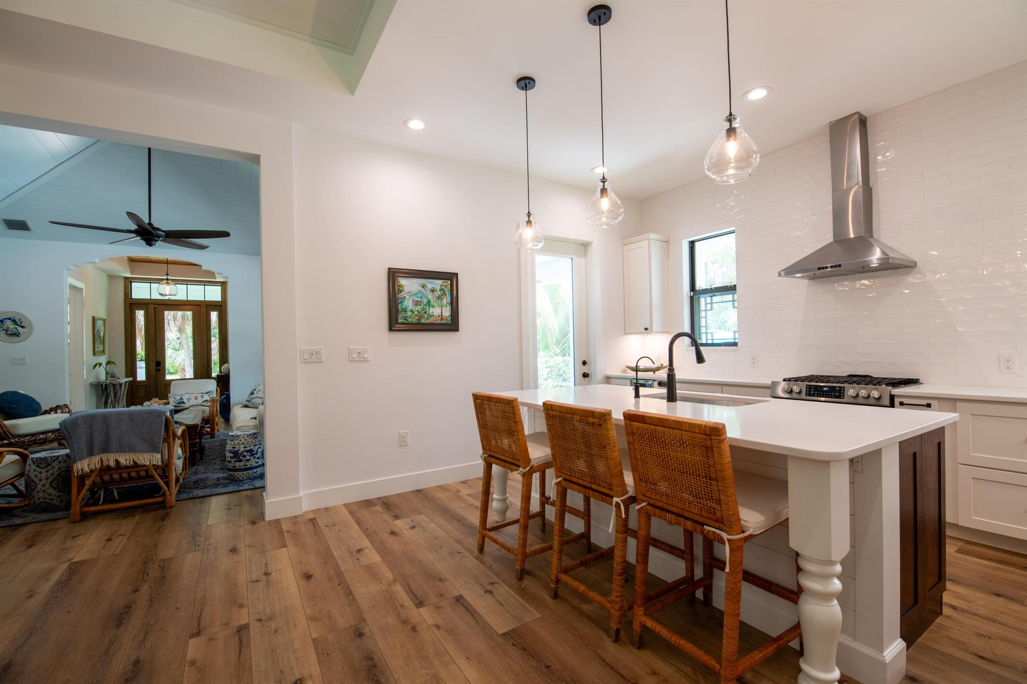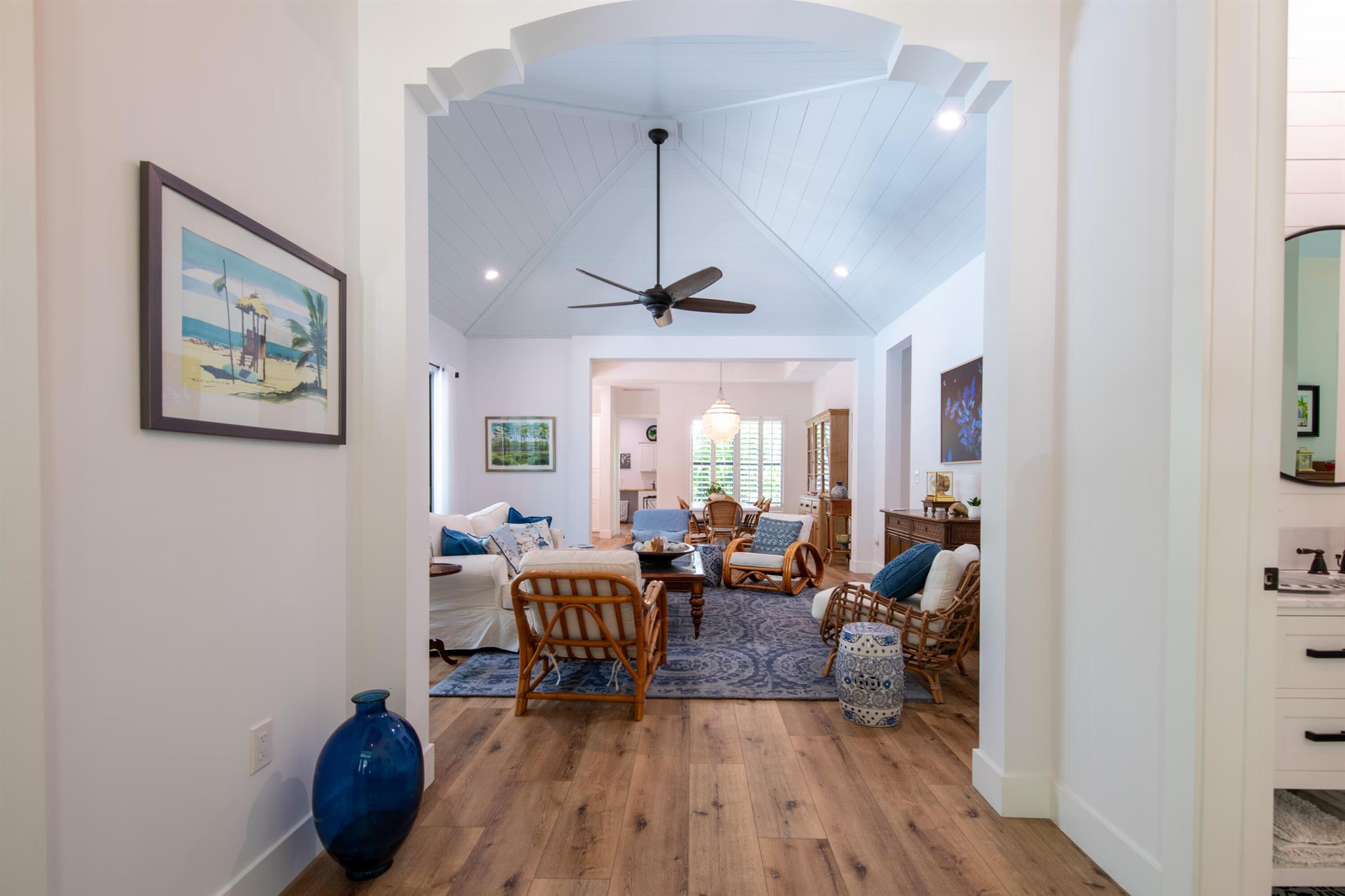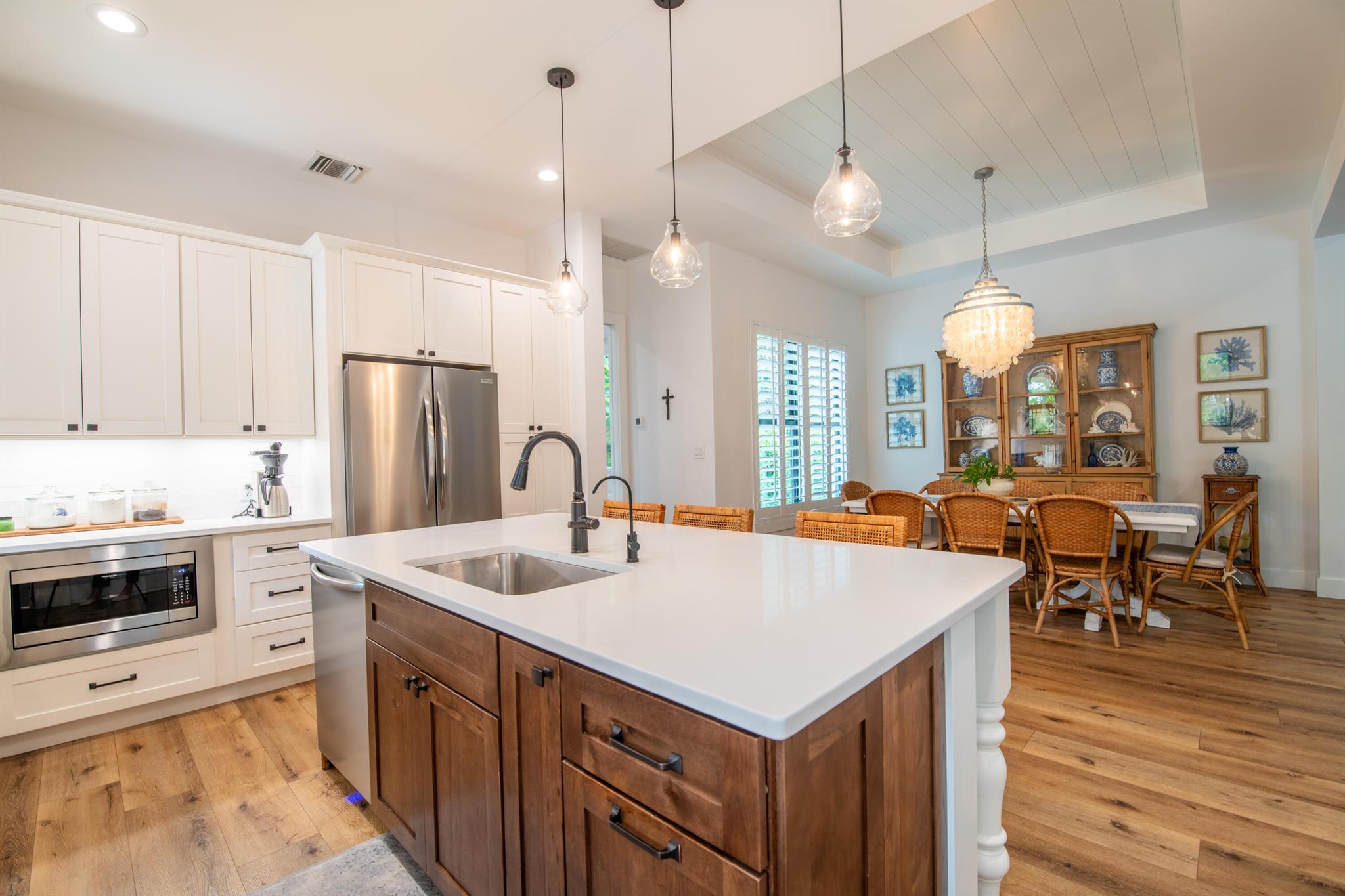 Newly built southern craftsman style home on private, lushly landscaped lot with saltwater pool. Walk to Jupiter Island beach and historic Hobe Sound featuring coffee shops, live music, brewery, designer shops and outdoor dining at gourmet restaurants. Housekeeping, landscaping and pool services included. Fenced back yard for your pets. Enjoy the cozy fireplace on your screened porch overlooking the pool. Volume tongue and groove ceilings, designer furnishings and chefs kitchen.