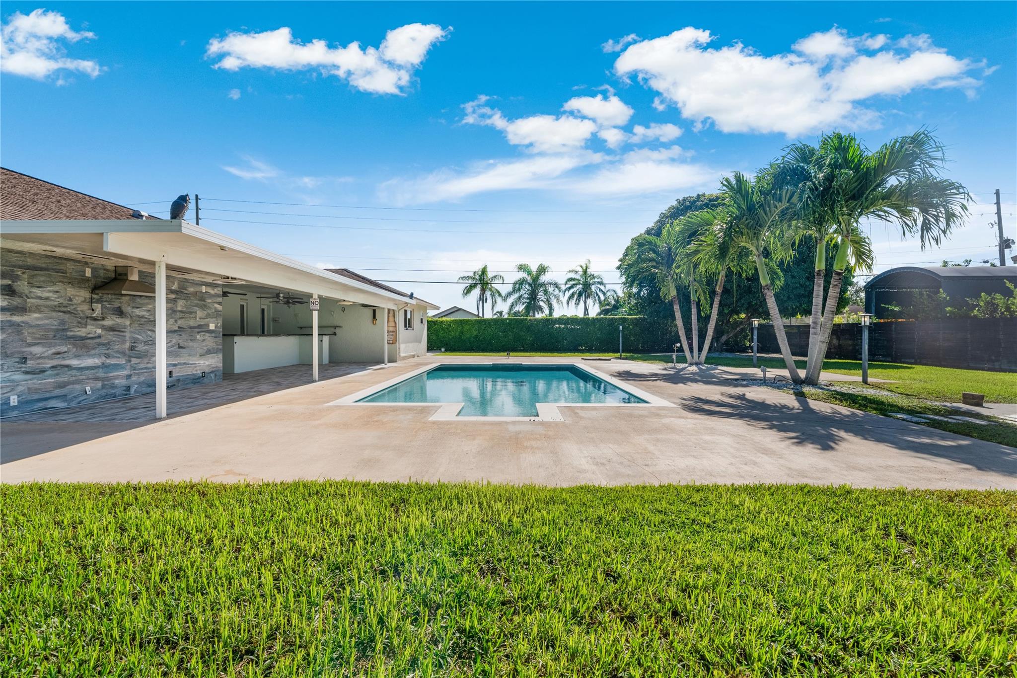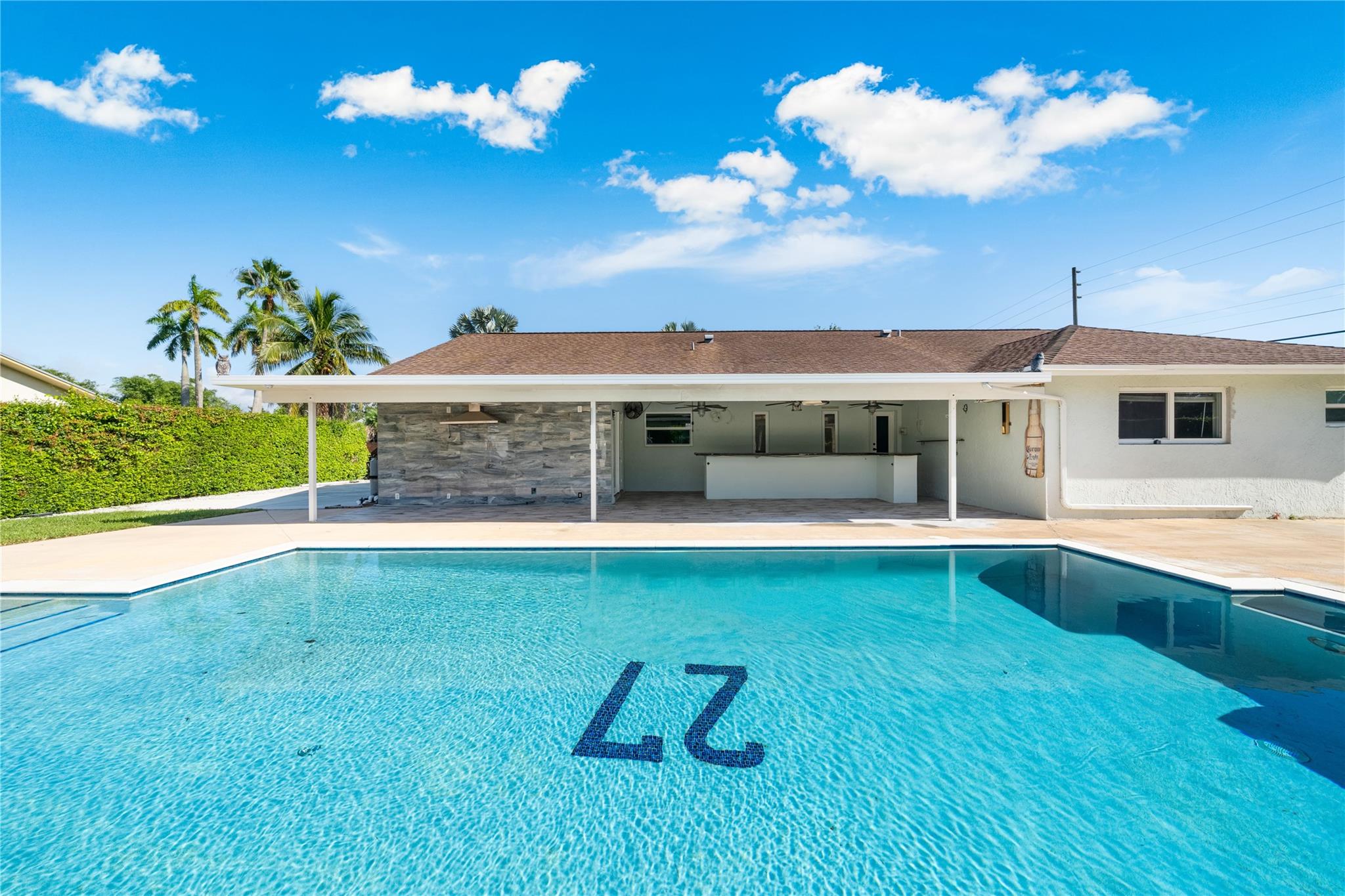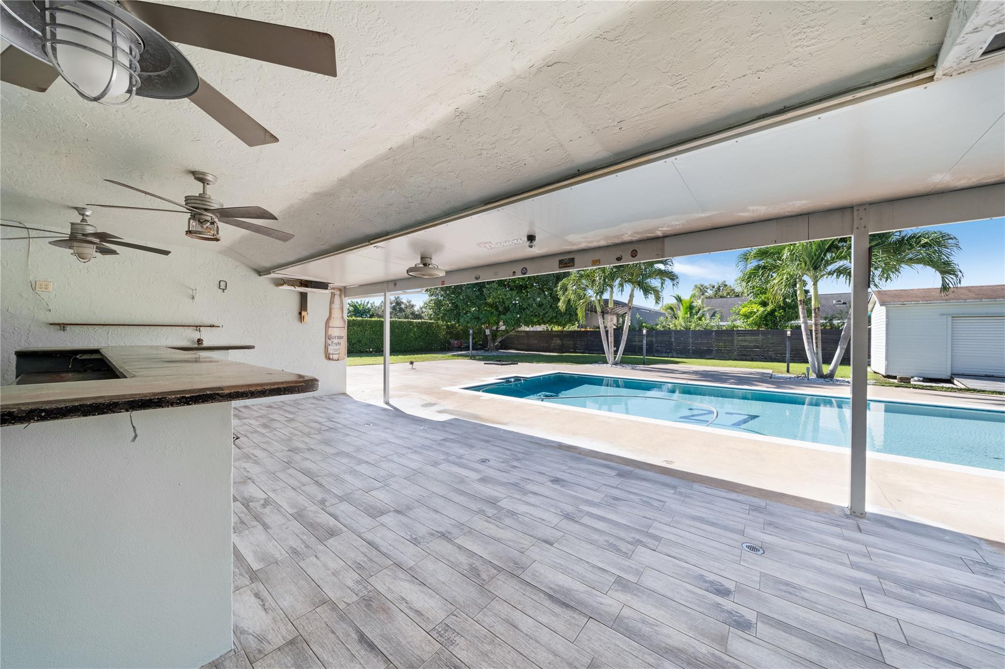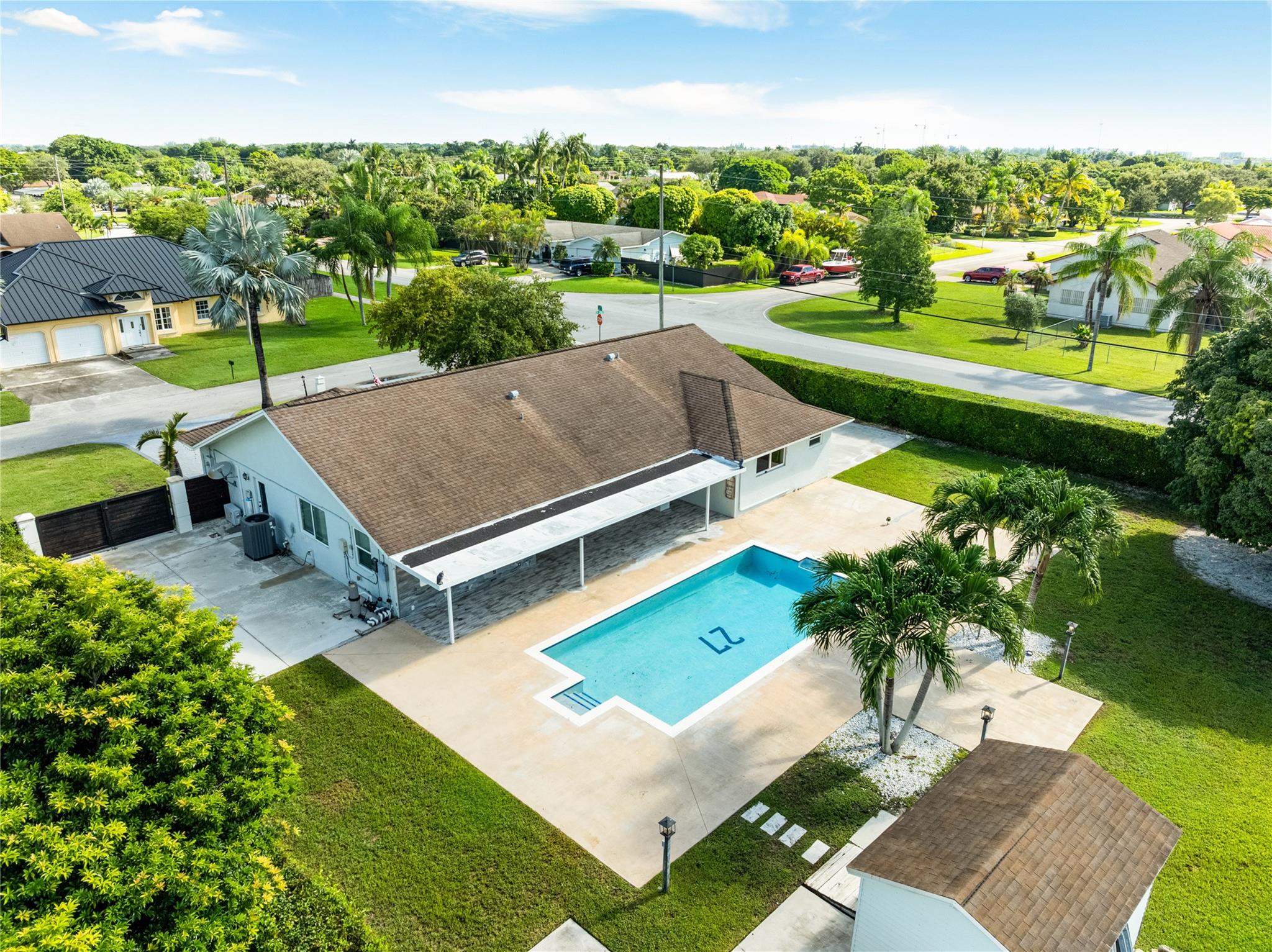 This beautiful 4-bedroom home sits on a spacious 18,207 sq ft corner lot with no HOA. Designed for comfort and entertaining, it features a resort-style pool and a covered bar area perfect for gatherings. Inside, enjoy a bright open layout with over 2,000 sq ft of living space, renovated bathrooms, updated appliances, and a brand-new A/C (2024). Impact windows and doors provide safety and efficiency, while the split-bedroom floor plan ensures privacy. The large backyard offers space for kids, pets, or outdoor activities, and the expansive driveway with two-car garage adds ample parking. Lawn, pest control, and pool maintenance are included. Located in desirable Redlands, this home combines privacy, modern upgrades, and easy access to highways, schools, and shopping.