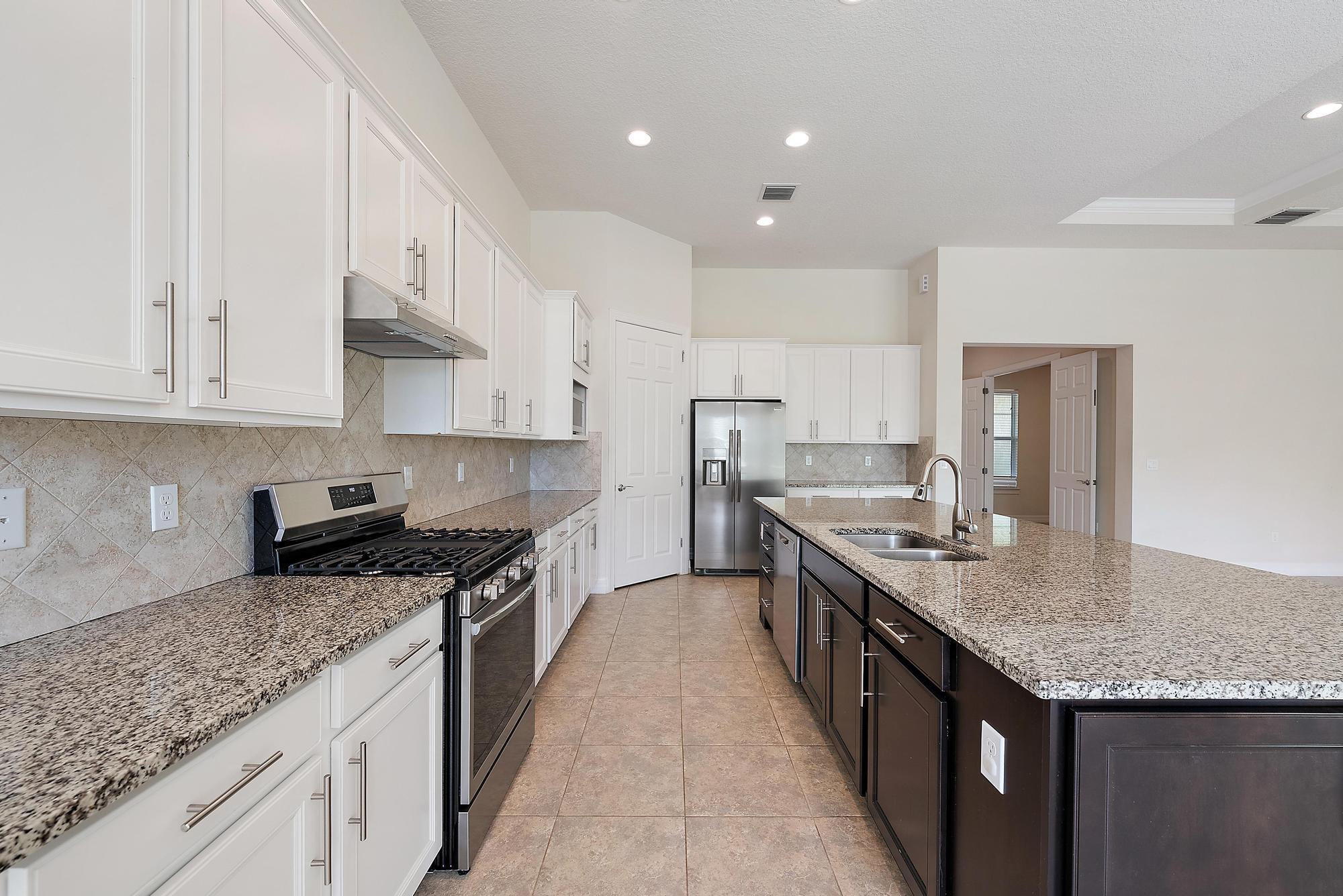 Annual, unfurnished, available now after HOA approval - Shores Pointe, Jupiter. Beautifully maintained 3 Bedroom plus den/flex room, 3 Bathroom, 3 Car Garage home located in the highly desirable community of Shores Pointe in the heart of Jupiter. Soaring ceilings, an open layout, new carpets, 2016 construction. The versatile den/flex room is ideal for a home office, playroom, or guest space. The kitchen is designed for both function and style, featuring white cabinetry, granite countertops, a large island, a walk-in pantry and brand new stainless steel appliances including a gas range. Peace of mind and easy living with full impact windows and doors, CBS construction and metal roof. Includes landscaping, pest control, association fees, common area playground. Zoned for A rated schools!