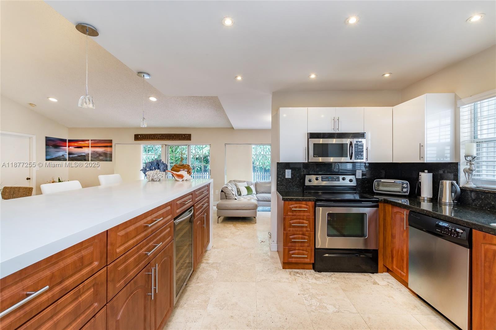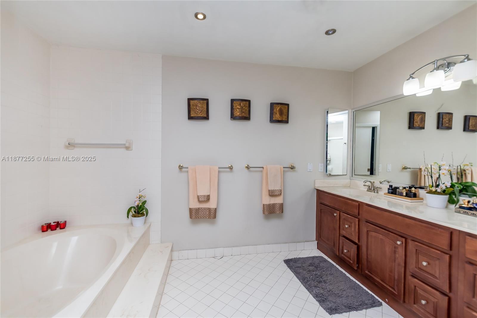 Beautiful single one-story home with the back facing Golf Course, perfect for a long walk or for golf lovers, a spacious living room that is warm and inviting look out to the backyard that flows into the updated kitchen w/ stunning white quartz countertop island for entertaining your family and guests. Travertine Marble floor through the house, unique 3 bedrooms, and 3 bathrooms, spacious, make this house one-of-a-kind. Prestigious Membership to the Golf club and tennis courts, pool, gym, and restaurants at the clubhouse. so bring your coffee and wine, and make this house your home.