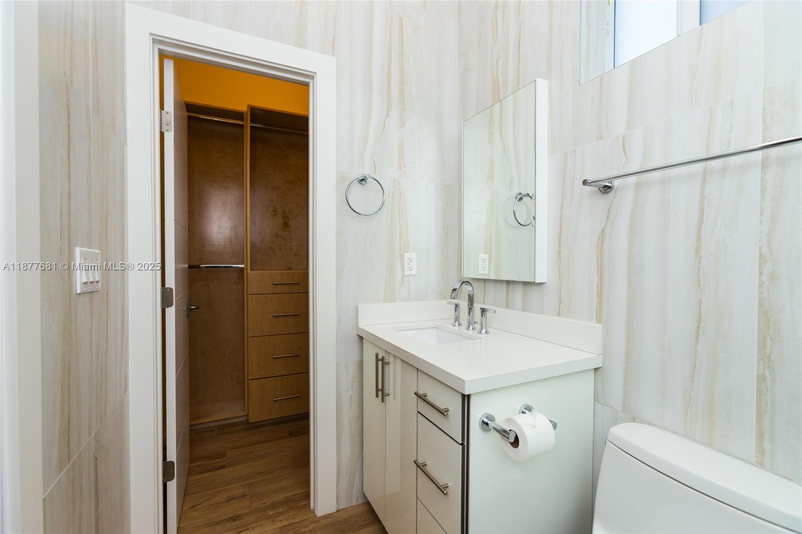 Built in 2018, pool house with open and modern design plenty of natural light, high ceilings, tile floors throughout the house. Kitchen features high cabinets and quarts counters, stainless steel appliances. Each bedroom has its own bathroom. Main bedroom with ample walking closet, main bath with dual sink, shower, and custom cabinets offering extra storage. The rent includes landscaping and pool maintenance.