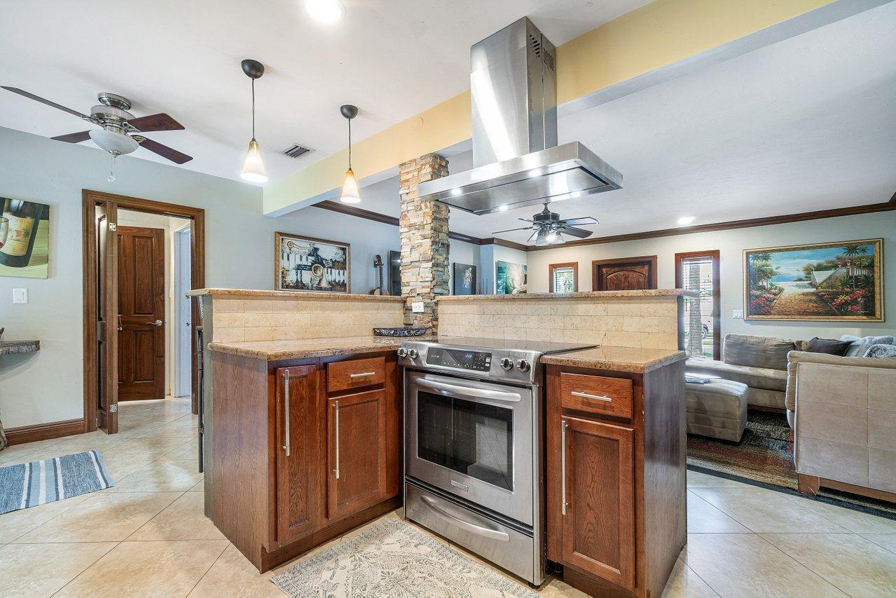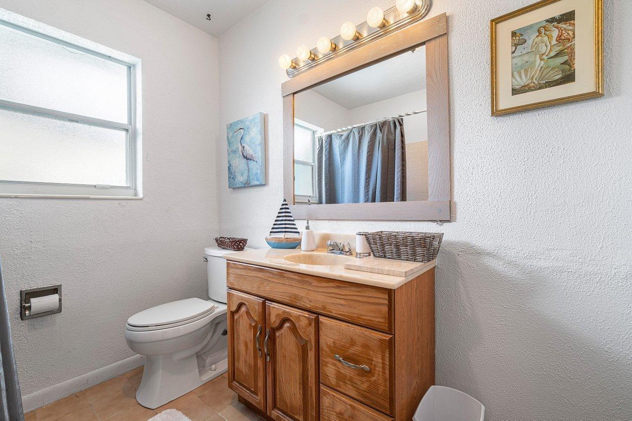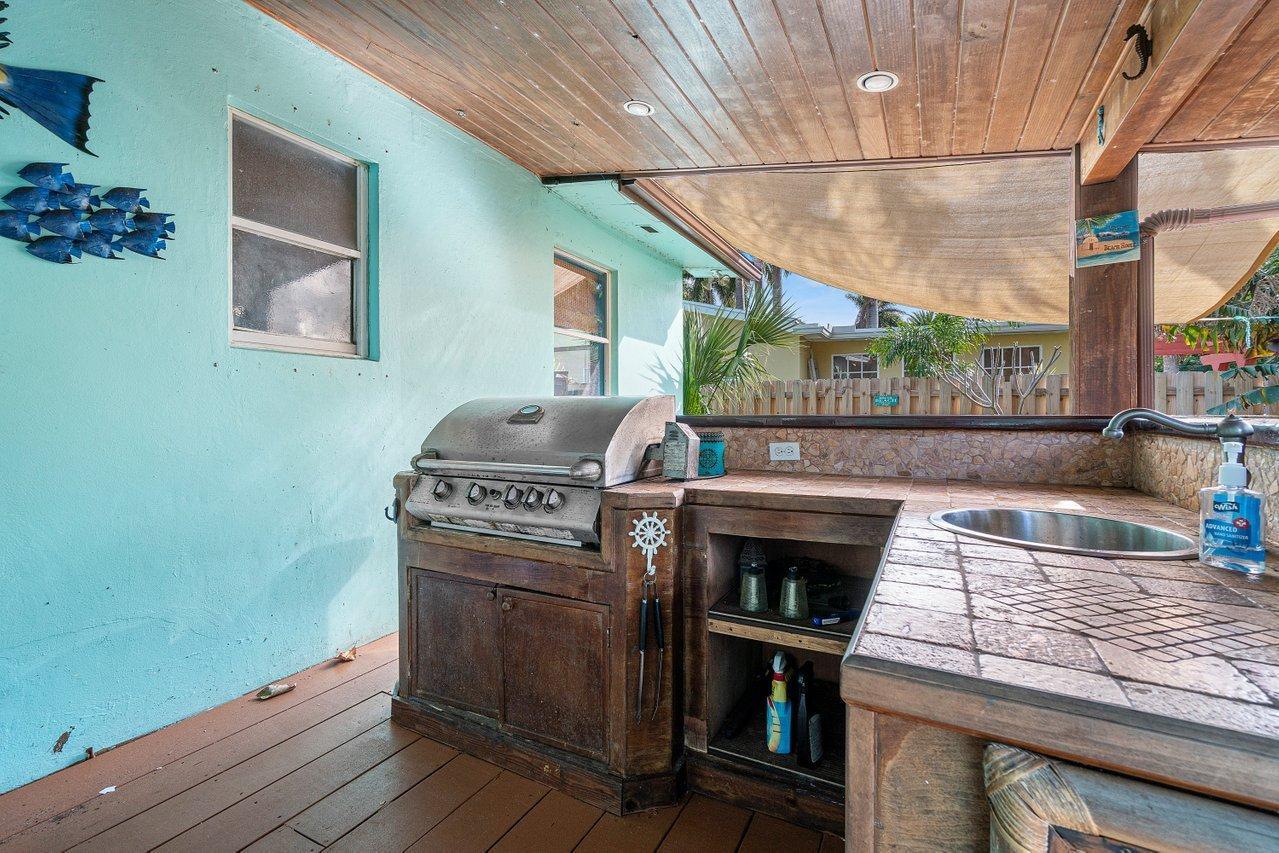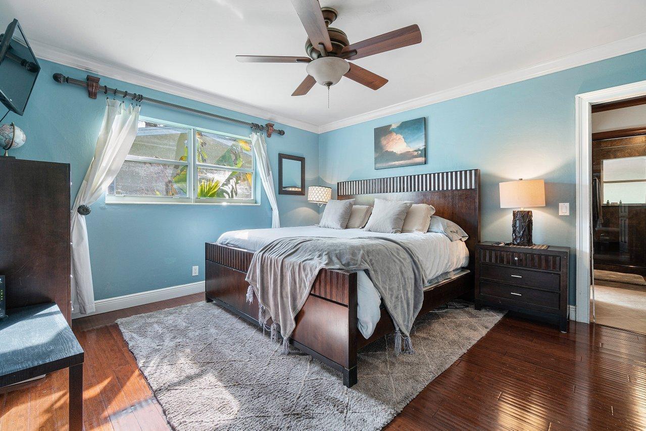 Available Seasonal, Summer, or Annual! Just one street from the Intracoastal, this turnkey home offers the perfect mix of tropical style and everyday comfort. An open floor plan creates a welcoming space for entertaining, with a wide, well-appointed kitchen at the center. The master suite exudes a chic island vibe with bamboo wood floors, while the guest room pops with Caribbean blue walls and dark bamboo floors. A third bedroom, bright and airy, doubles as a cozy den with twin beds. The master bath channels the tranquility of a Costa Rican rainforest, while the guest bath reflects timeless Old Florida charm. Step outside to your private backyard oasis--lush tropical landscaping, a spacious deck with resin bar top and grill, and a hot tub for unwinding after a long day.