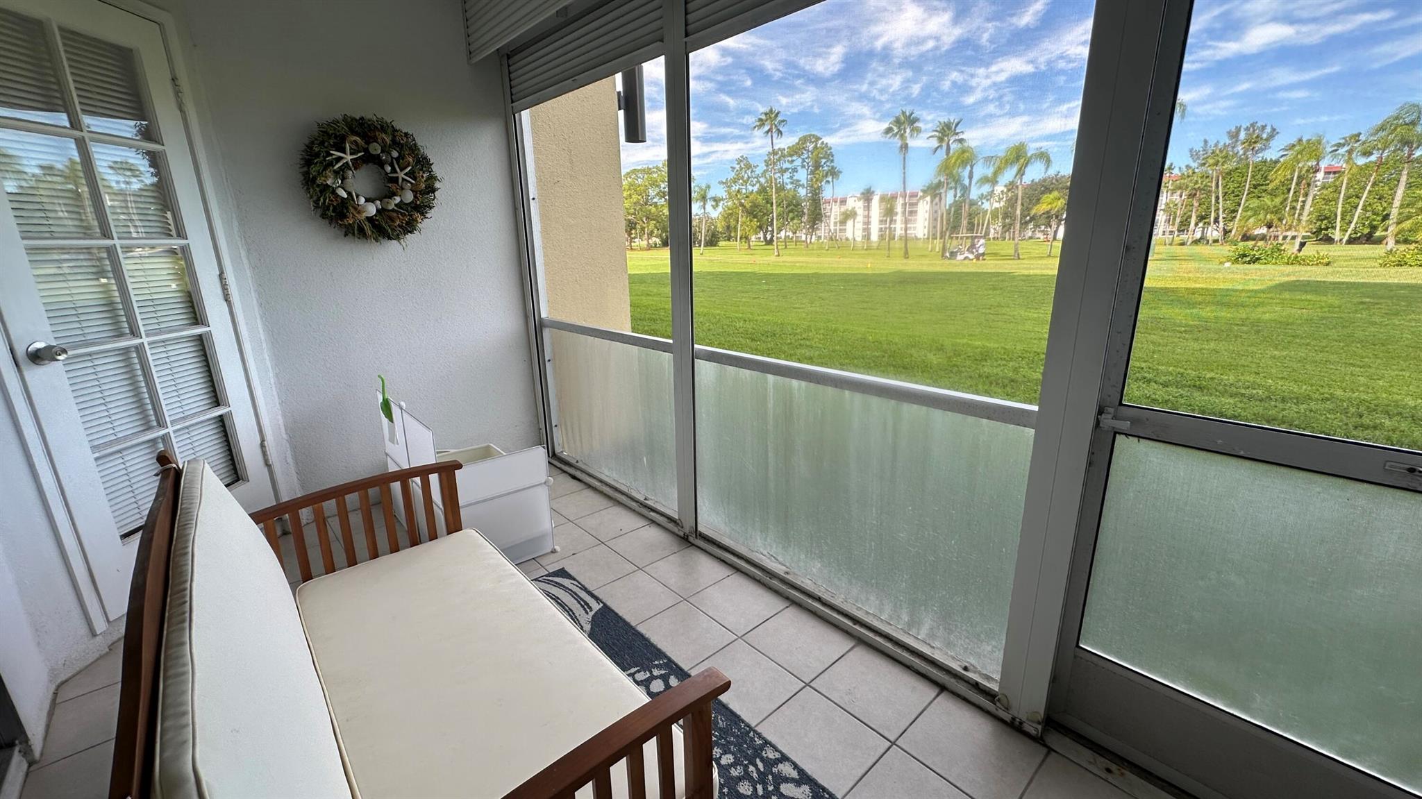 Must see this beautifully renovated 1 bed 1.5 bath 1st floor condo located in the Oxford building in Poinciana Place & walkable to the tennis courts NEW flooring throughout, NEW appliances, NEW quartz counter tops, NEW light fixtures, NEW shower and toilet, NEW washer and dryer! Enjoy the spacious master bedroom that features 2 walk-in closets & an expansive golf course view! The renovated master bathroom boasts a walk-in shower too! Unwind in the screened in patio that overlooks the golf course. Poinciana Place is a 55+ active adult community that boasts lots of amenities to keep you busy that includes an 18-hole executive golf course, tennis, bocce, shuffleboard, a private pool & Mel's Way Bistro, open 6 days/week for all meals with live entertainment 4 nights/week. No pets or smokers.