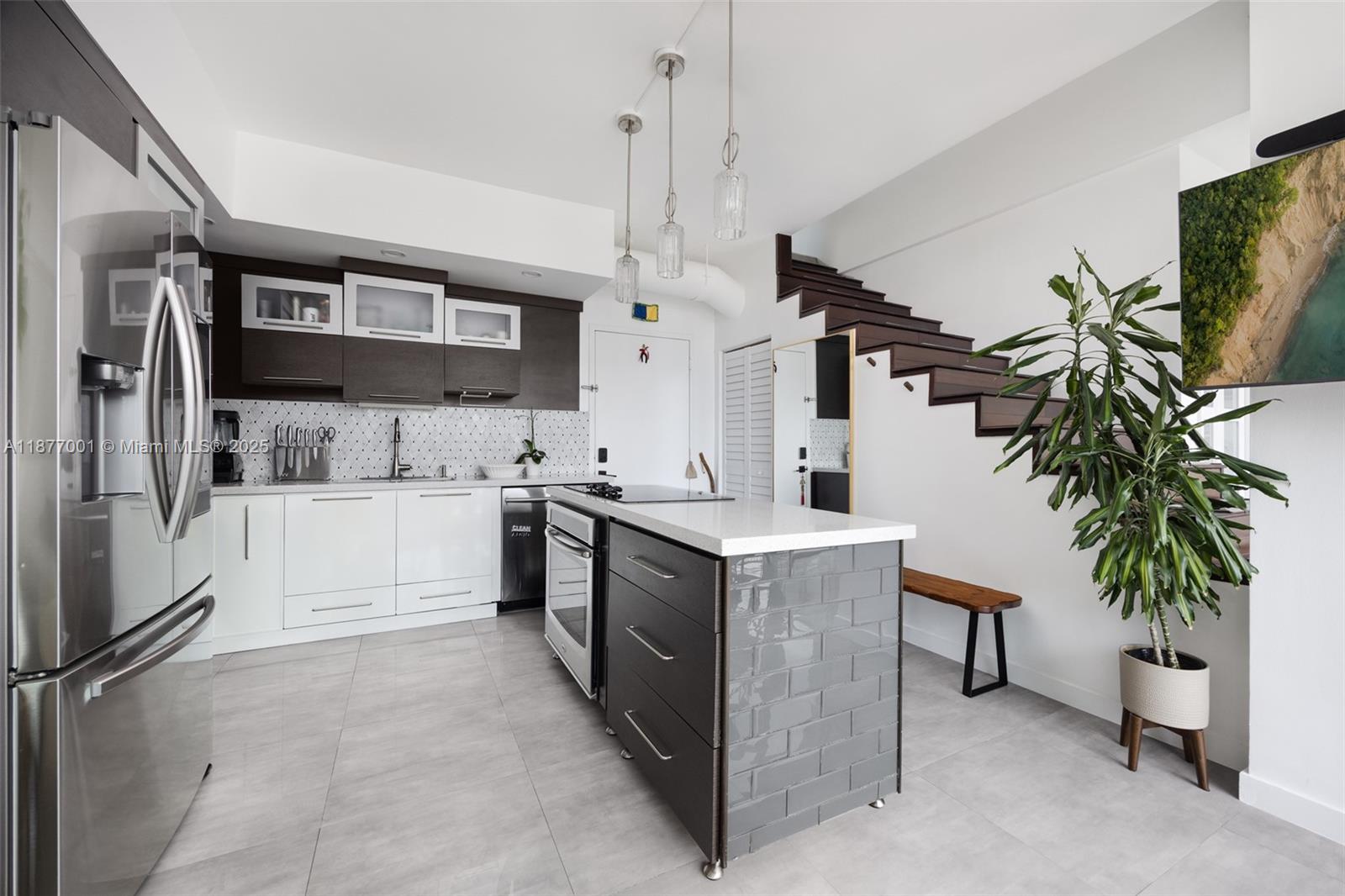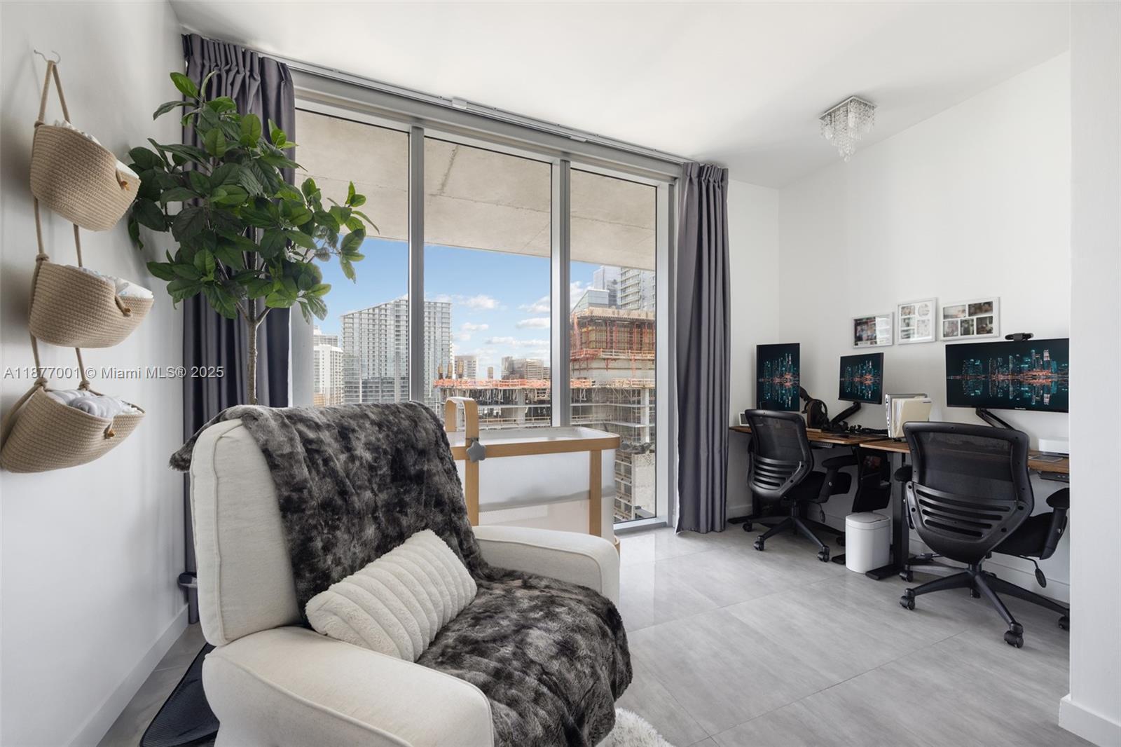 Rare Enclosed Loft Penthouse — Neo Vertika, Brickell Riverfront. Renovated 2BR + den, 2BA enclosed loft—one of few in Brickell—on private, flood-safe street 2 blocks to Brickell City Center. 2-story plan with 10’ ceilings, floor-to-ceiling windows, and hurricane-impact sliders to oversized~450 sf balcony, capturing city views and active Miami River scene—your own little Venice. Smart home, keyless entry, motorized blinds (blackout in primary), stair w/ ~58 sf extra storage, in-unit W/D. Kitchen: quartz, marble backsplash, garbage disposal. Primary: three closets + den. Upstairs bath with vanity; spa-grade shower (rainfall + handhelds). Guest room w/ Murphy bed. Two parking (garage + valet), EV charging. Resort-style amenities. 3D tour—walk the property from the convenience of your screen.