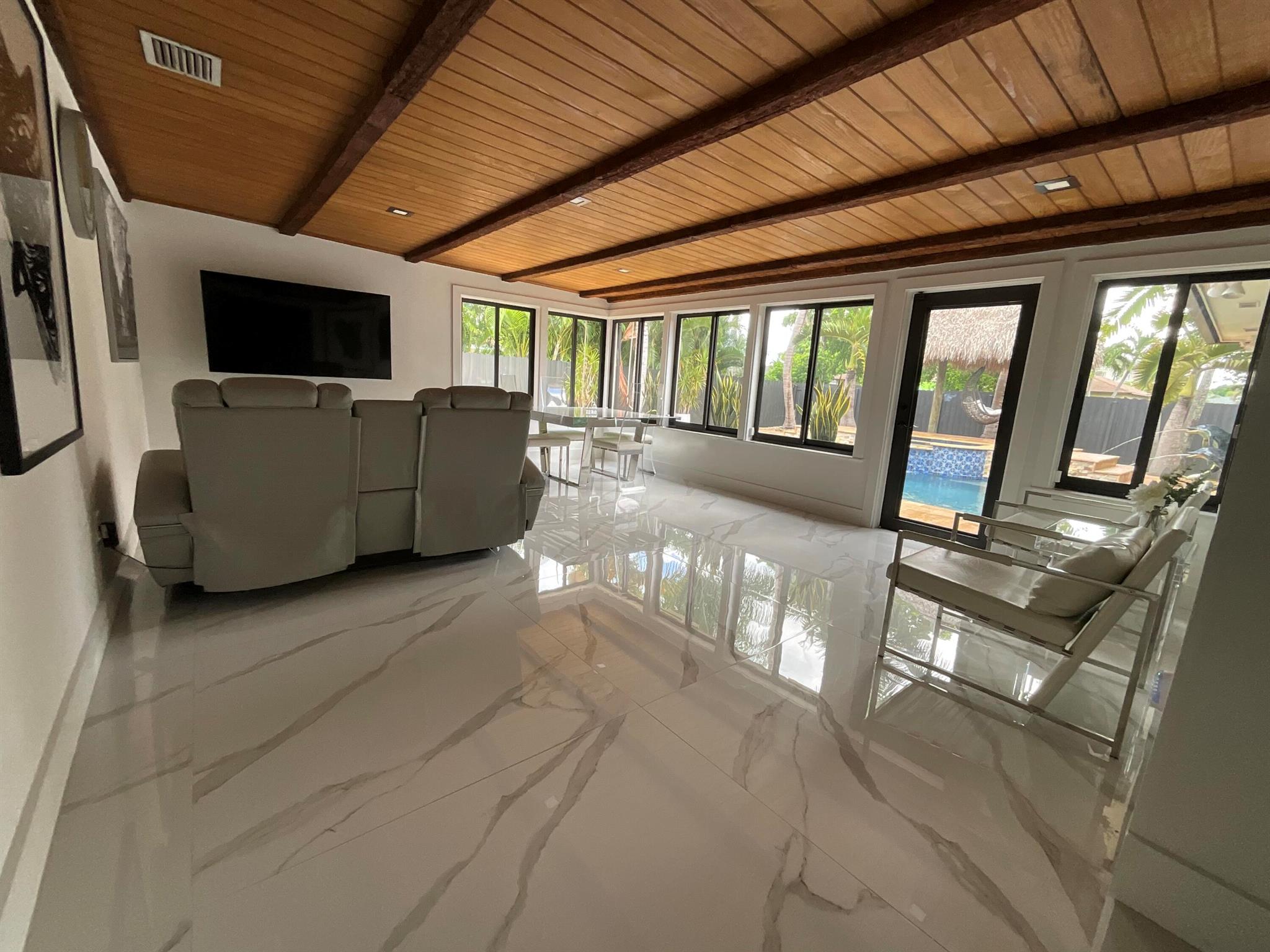 This pool home is a must see. CBS built with two car garage and tile roof. Open and bright along with a modern floor plan. Beautiful backyard, with a heated pool and hot tub, gazebo and outdoor kitchen. Kitchen has stainless steel appliances, tumbled marble back-splash that overlooks Florida room. Updated baths, built-in-book shelves, French door sliders, upgraded lighting and designer drapery add to the elegance and charm of this home. Pool has in-ground spa attached. Large Florida room/TV room has Spanish tile, lots of windows, tile floor with views of pool and patio area.