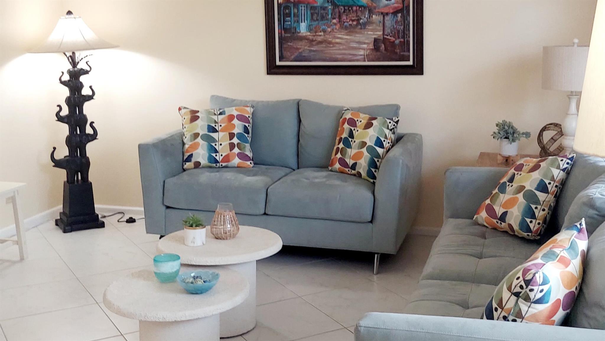 Annual or 6 month seasonal rental ! 55 plus community! This is the one! Discover your MOVE-IN -READY RENTAL, 2nd floor 1 bedroom 1.5 baths home in Century Village Boca. Adorable, well-furnished for annual or seasonal six-month rental Come into your beautiful well furnished condo, The condo boasts a lanai with breathtaking water views. Enjoy the open concept of a big living and dining room space.