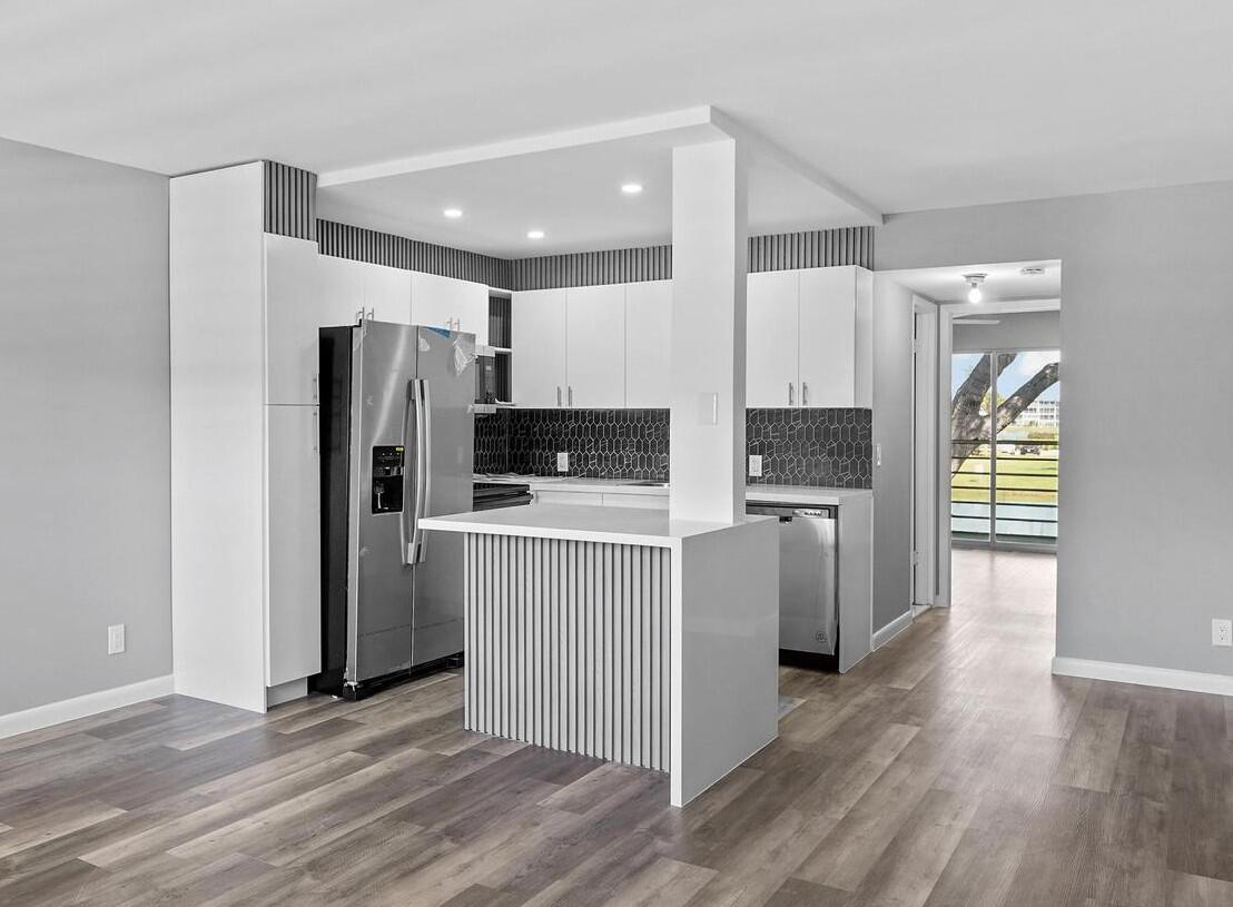 Step into this beautifully renovated second-floor condo in the highly sought-after Dorset building at Century Village. Every detail has been carefully updated, starting with the brand-new open kitchen featuring a modern island and all-new appliances. The entire unit has been professionally rewired, and recessed lighting has been added in both the kitchen and bedroom ceilings The stunning new bathroom adds a touch of luxury, while updated lighting fixtures throughout the home create a bright, welcoming atmosphere. Enjoy serene lake views from your private patio. Perfectly located just a short walk to the swimming pool and centrally positioned within Century Village, this condo combines comfort, convenience, and peace of mind.