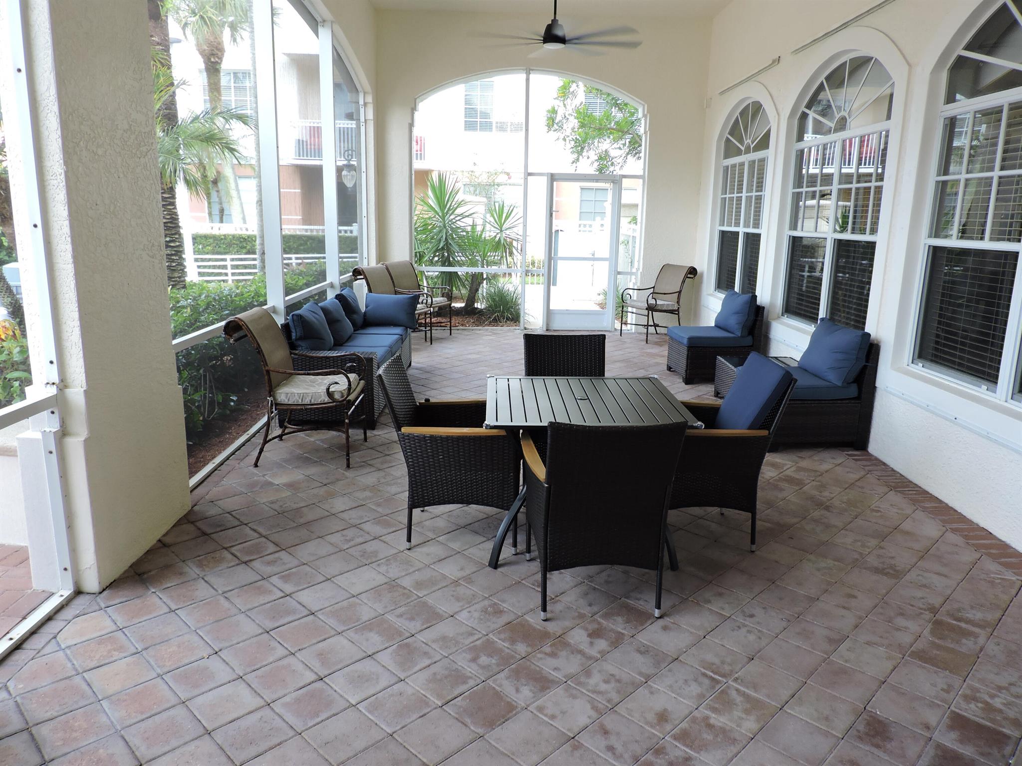 Great neighborhood in gated resort community which has it all. This 2 bedroom, 2 full bath 3rd floor 1,213 square feet under air. Flooring has 16'' marble diagonal tile through out (NO carpet). Entire unit has been freshly painted with some upgrades with new lighting, mirrors in bathrooms, new shower heads and more. All newer appliances with stainless steel refrigerator, microwave, range, dishwasher and Samsung washer and dryer. Florida room off of living room. Community has a resort pool, gym, kids play area, barb-b-que area, meeting room, media room. Close to all shopping including Publix grocery store, restaurants, banks, shopping, Abacoa public golf course and I-95.