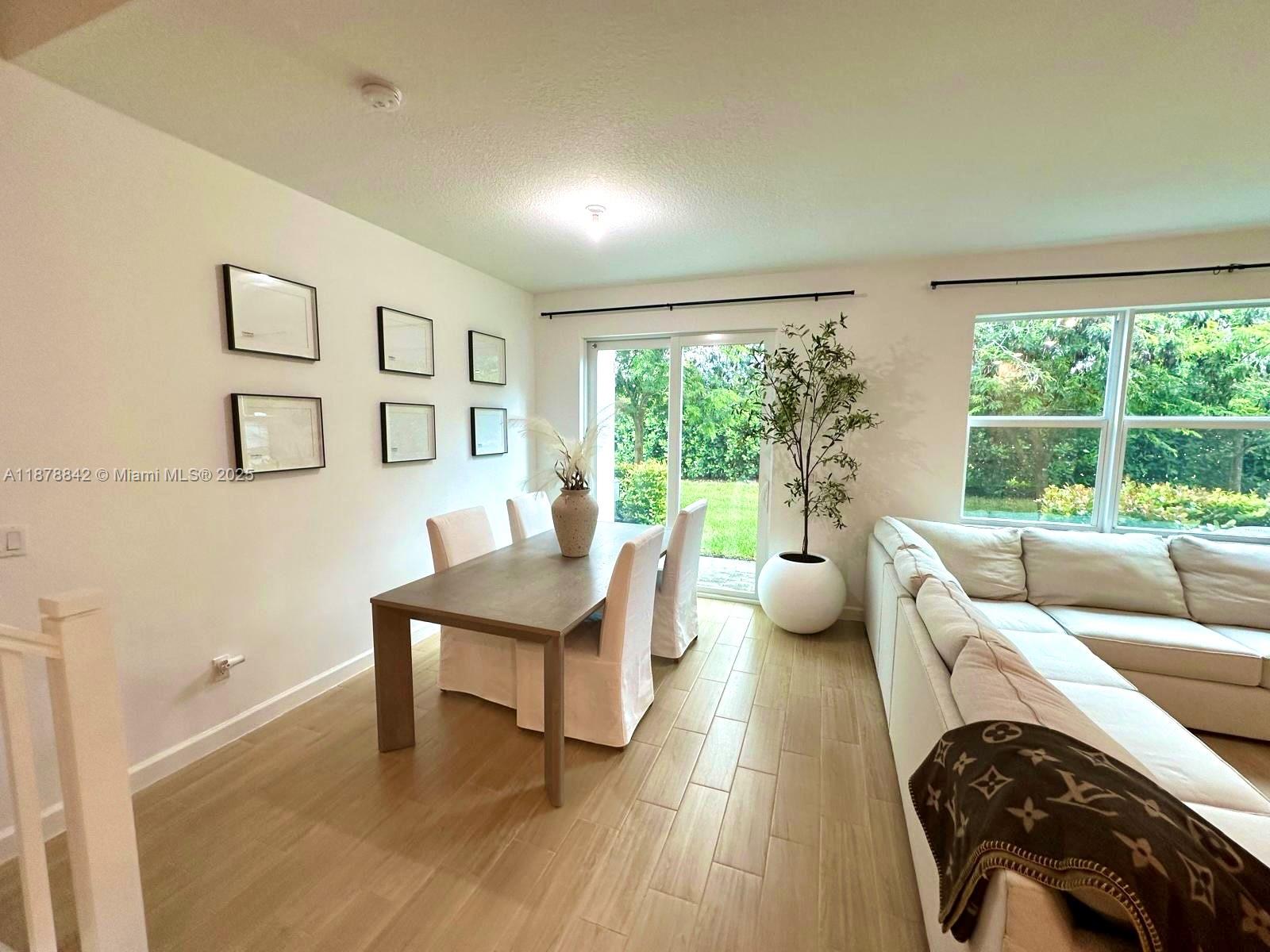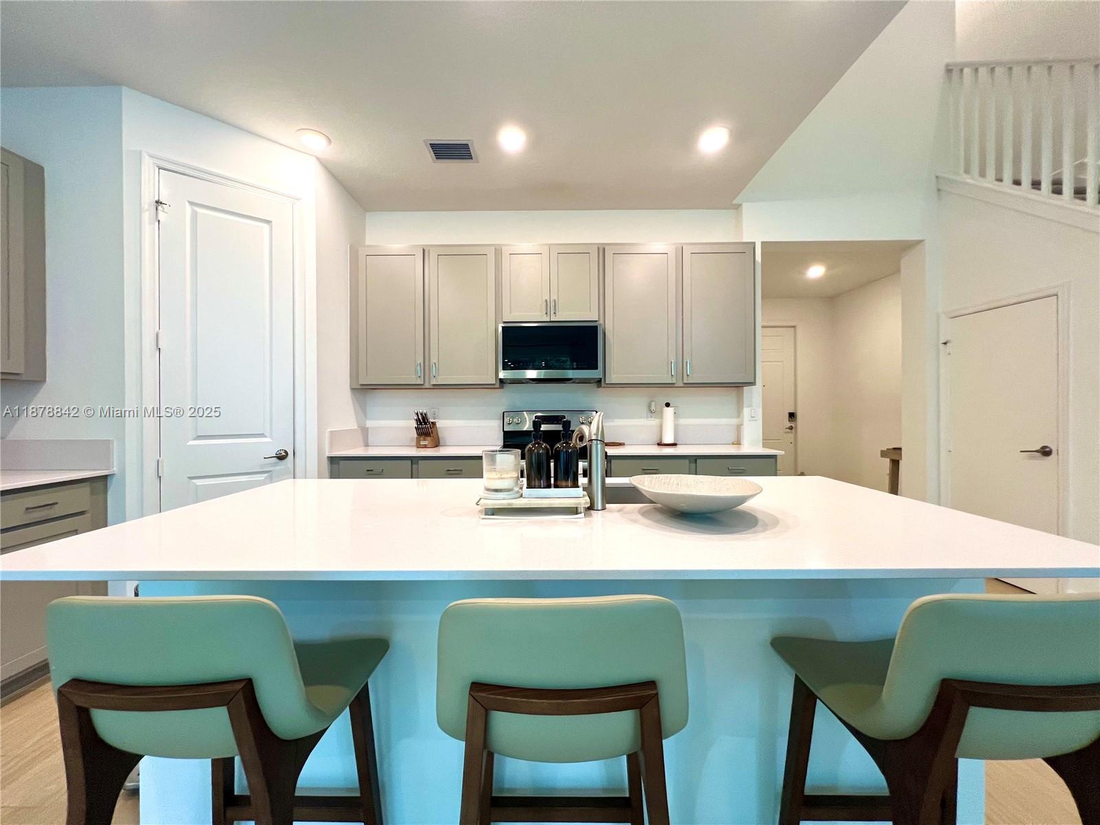 NO HOA approval process!! Quick move-in :) This LARGE LUXURY townhome comes with a wide foyer and open layout. The soaring 24 ft ceiling above the staircase, wood-look plank tile floors, wood cabinetry ,QUARTZ counter tops and STAINLESS STEEL appliances create a beautiful upgraded space. All 3 bedrooms are upstairs with a large laundry room. Lots of storage throughout. Impact windows & Doors & backyard space for your convenience. LAWN CARE included! This a secure community with GATED ENTRY. Other amenities include pool, gym, bbq area etc. Check out the schools! :) 2 min away from the Turnpike. Easy access to shopping & dining!