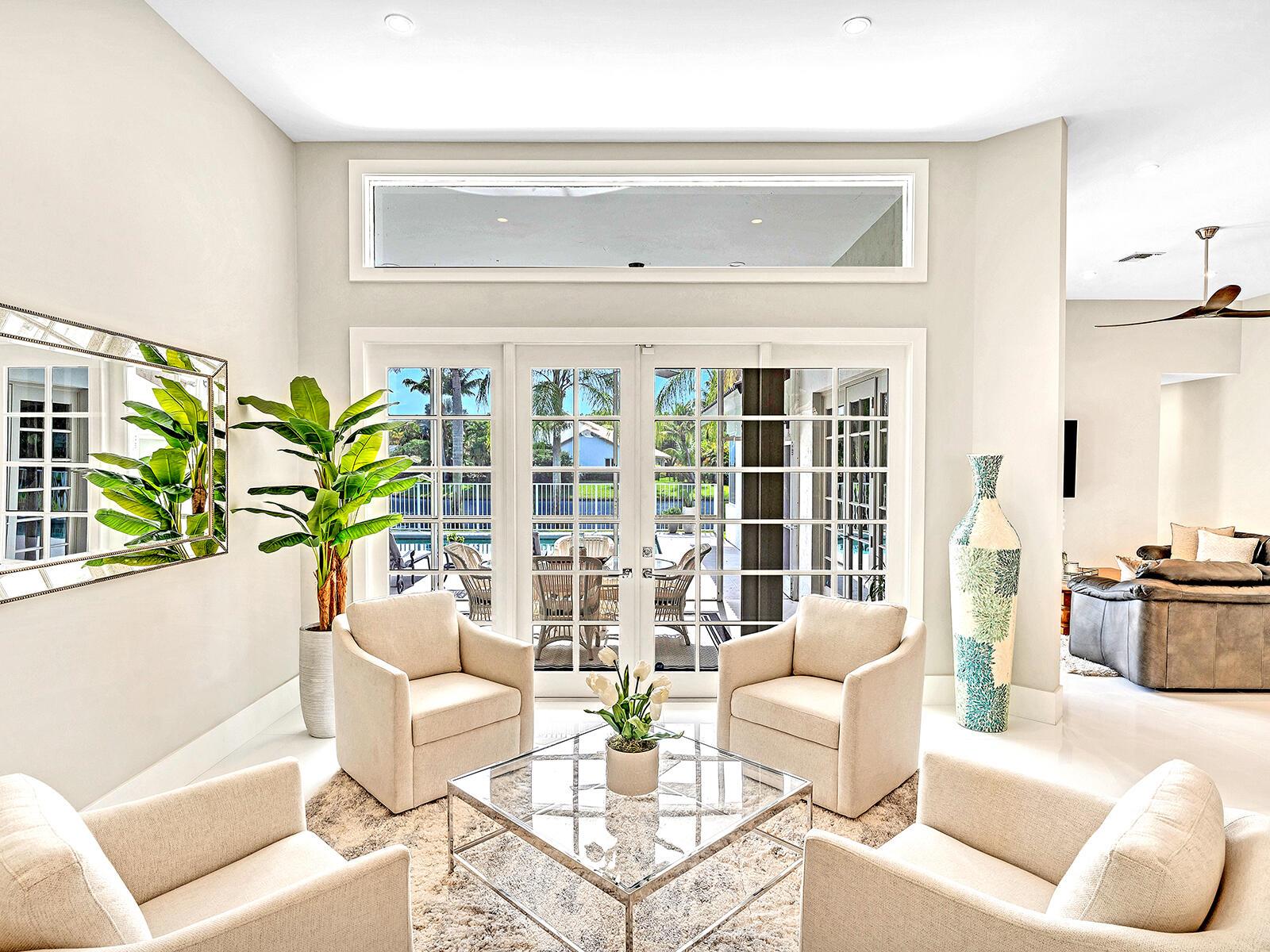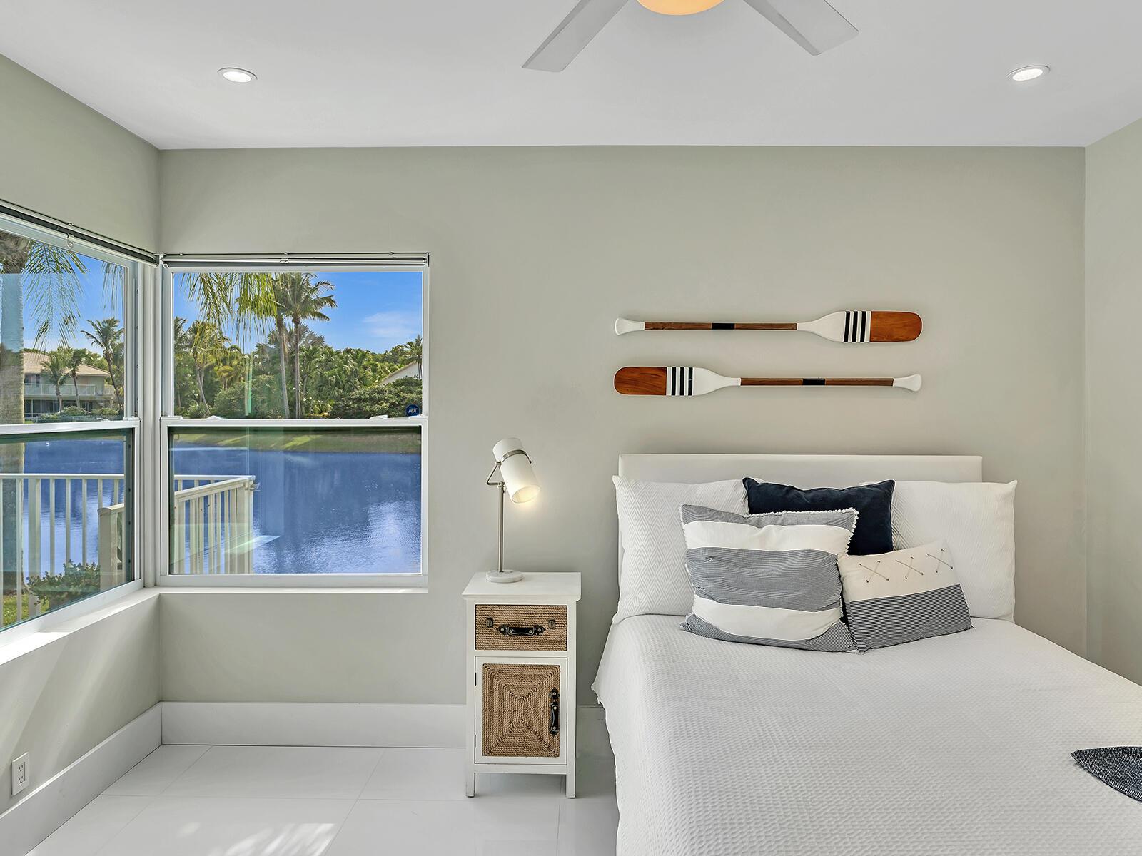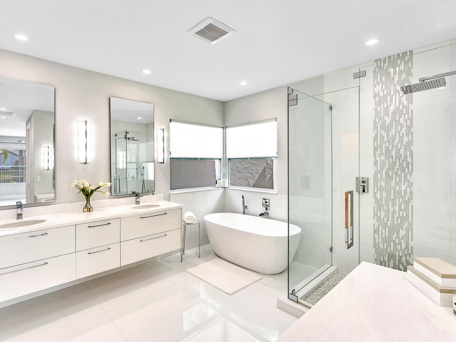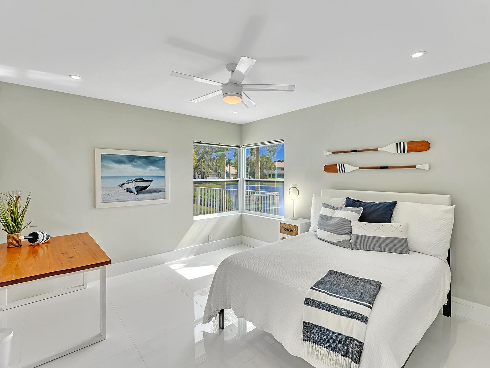 This stunning contemporary 4-bedroom home is located in the highly desirable Andover community. Set among palm trees and live oaks, the 2,754 sq ft residence offers serene lake views, a spacious screened lanai, and an open sports pool. The open-concept design, with soaring ceilings and oversized white glass tile floors, is ideal for entertaining. The custom gourmet kitchen features a 14-foot white quartz island and top-of-the-line stainless steel Jenn-Air appliances, including an induction cooktop and a wine fridge. The master suite boasts a luxurious spa-like ensuite, complete with a large soaking tub and a walk-in shower for ultimate relaxation. Andover is a charming, family-friendly gated community, located just minutes from downtown Delray Beach, residents enjoy convenient access