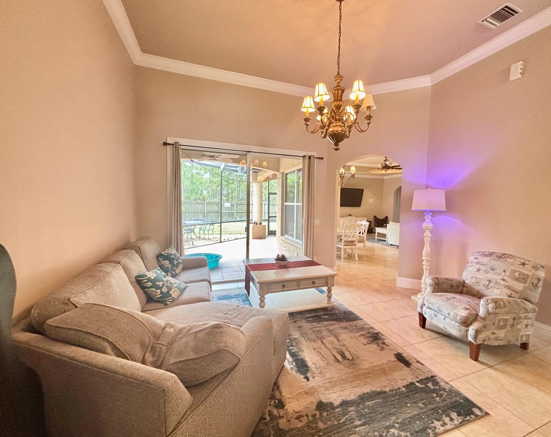 An absolutely beauty! This single family home features 4 bedrooms, 3 full bathrooms, a half bathroom, 2 car garage with a very spacious driveway, a screened covered patio, and an amazing backyard. A beautiful kitchen with wood cabinetry and granite counter-tops, and stainless steel appliances. The high ceiling throughout the entire house brings out the elegance in this split floor plan. Wood flooring and tile, master bathroom has stand up shower and tub. Laundry room with full size washer and dryer. It has central vacuum and completely fenced backyard. This property is fully furnished and electricity is to be paid to the owner $250.00 per month.