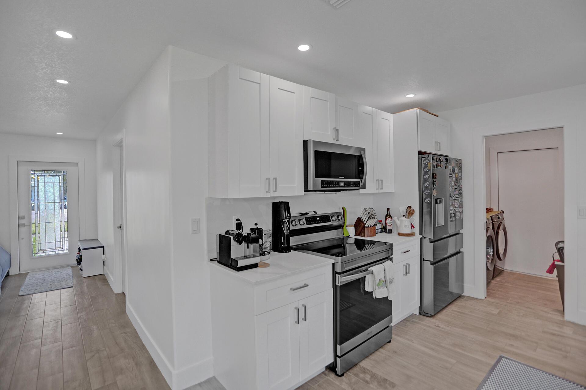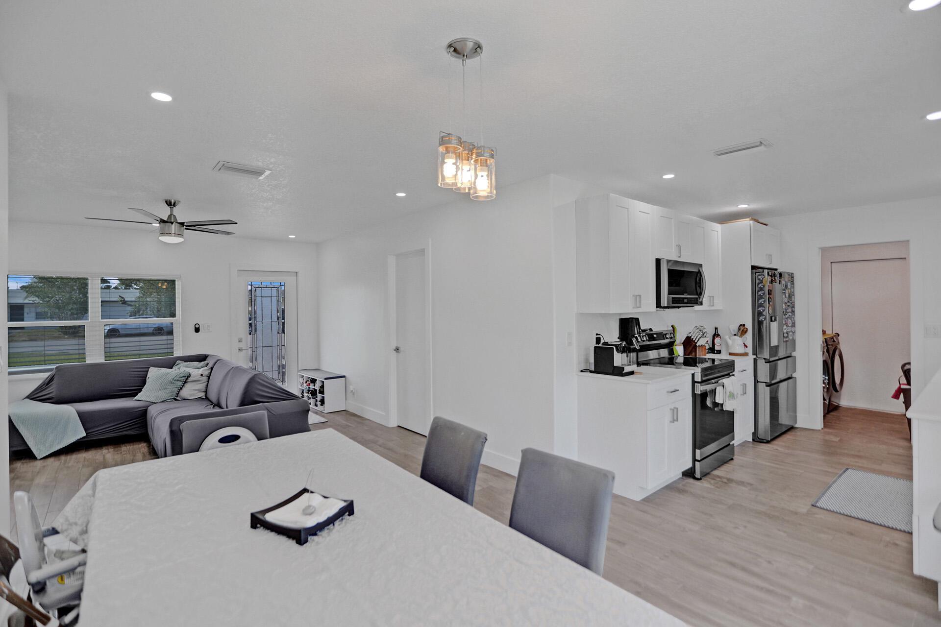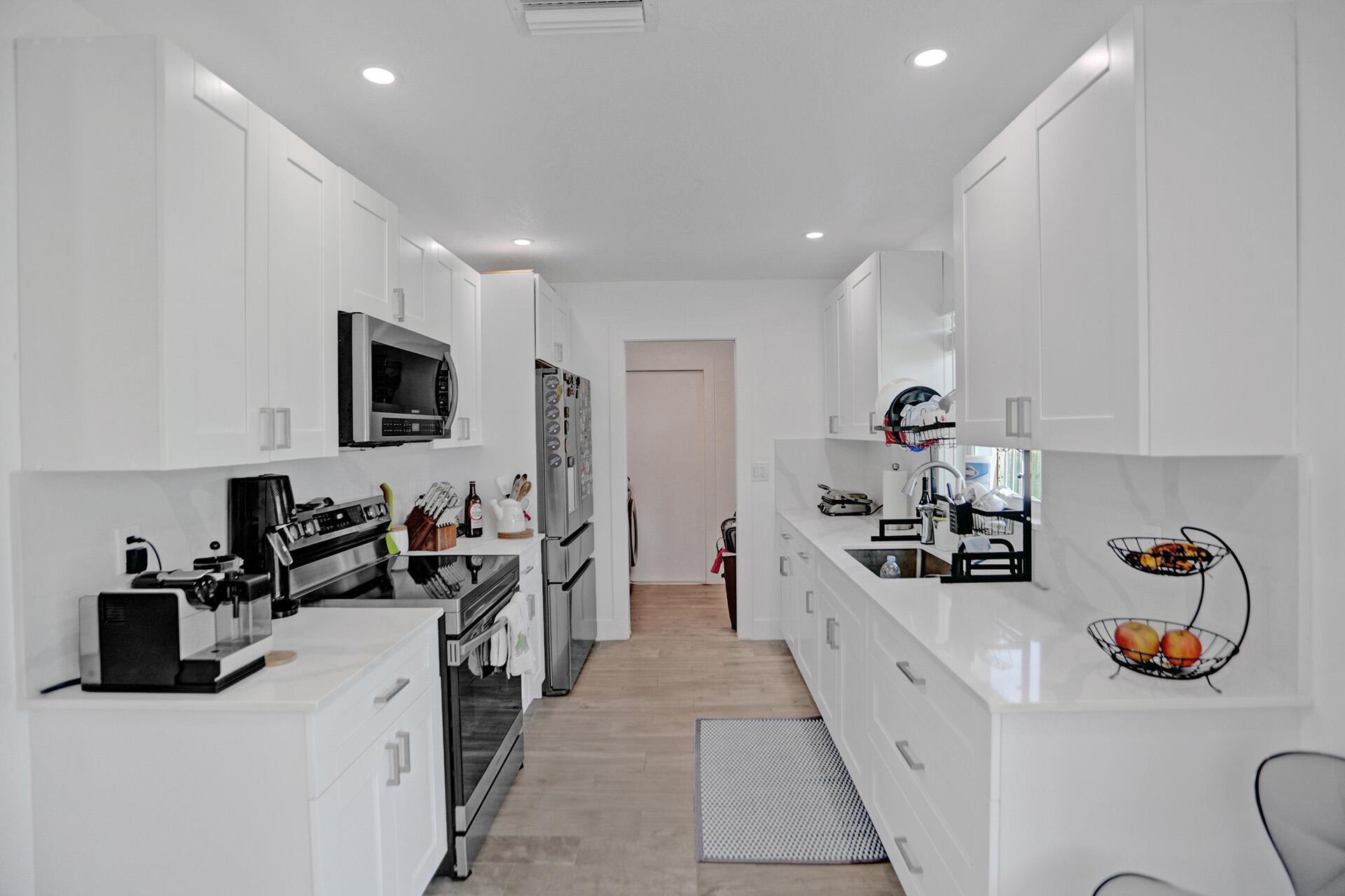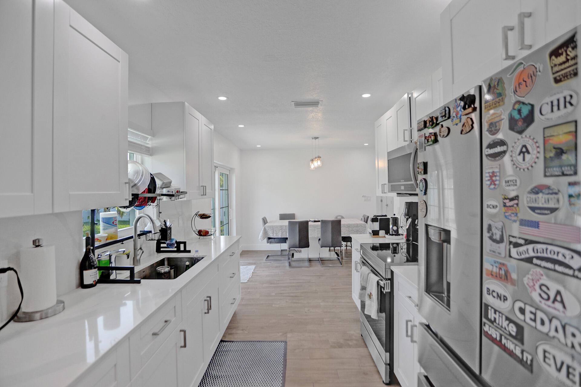 Move-in-ready single-family home with a fresh, modern renovation. An airy open-concept living area flows into a sleek kitchen with stainless steel appliances, quartz countertops, and shaker cabinetry. Comfortable bedrooms, updated bathrooms, and an in-home washer/dryer. Outside, enjoy a large yard for entertaining and an extended driveway with ample parking. Minutes to I-95, beaches, dining, and shops. Easy to show--schedule your tour today.Highlights: open layout quartz + stainless modern finishes large yard ample parking in-unit W/D prime Deerfield Beach location