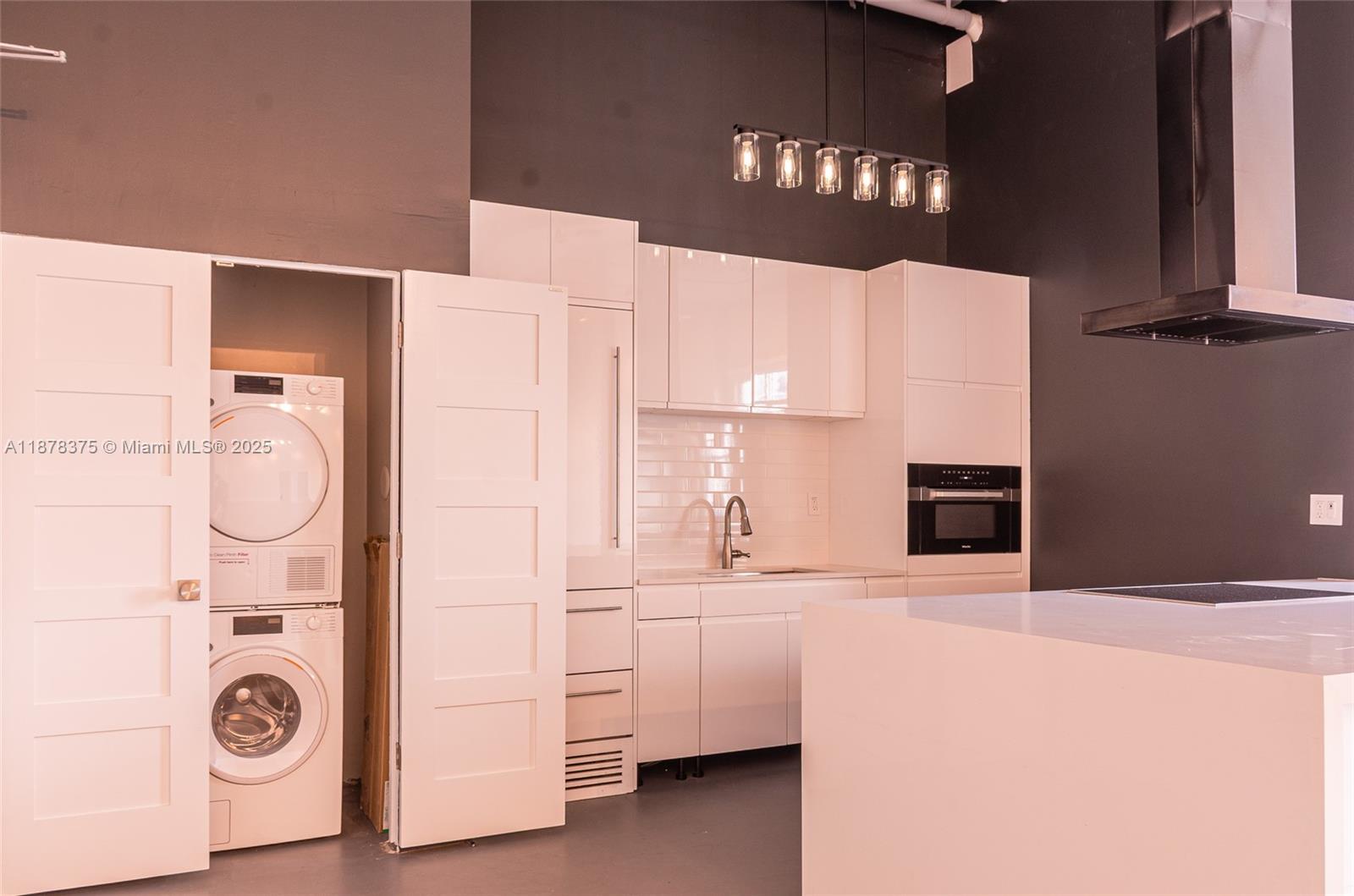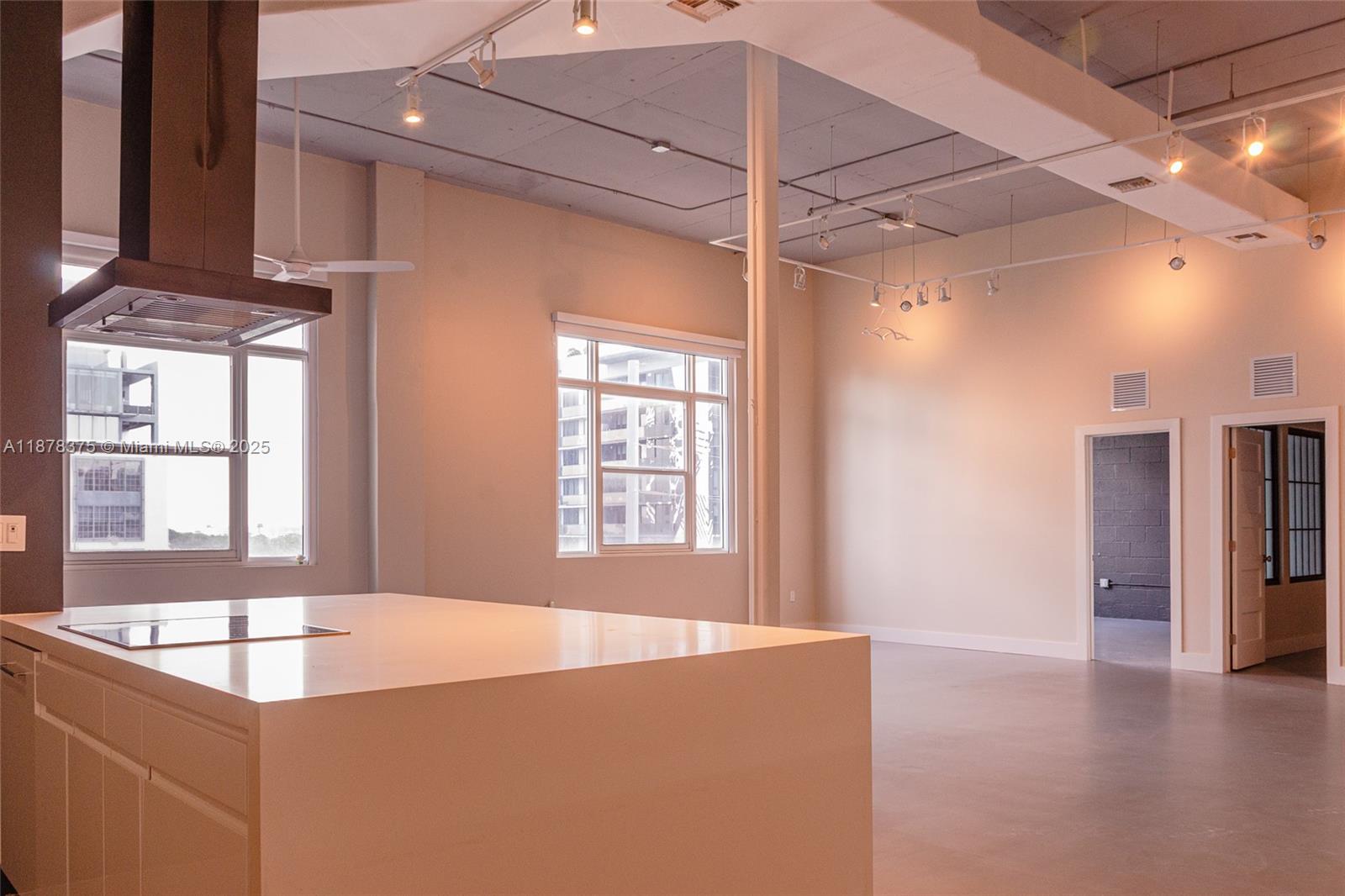 Spacious open- concept Loft featuring high ceilings and concrete floors. 1,463 Sq.Ft space ideal for residence, creative studio or office. Combining living/dining area. 2 beds/ 1 full bathroom and laundry area. Fully equipped contemporary kitchen.