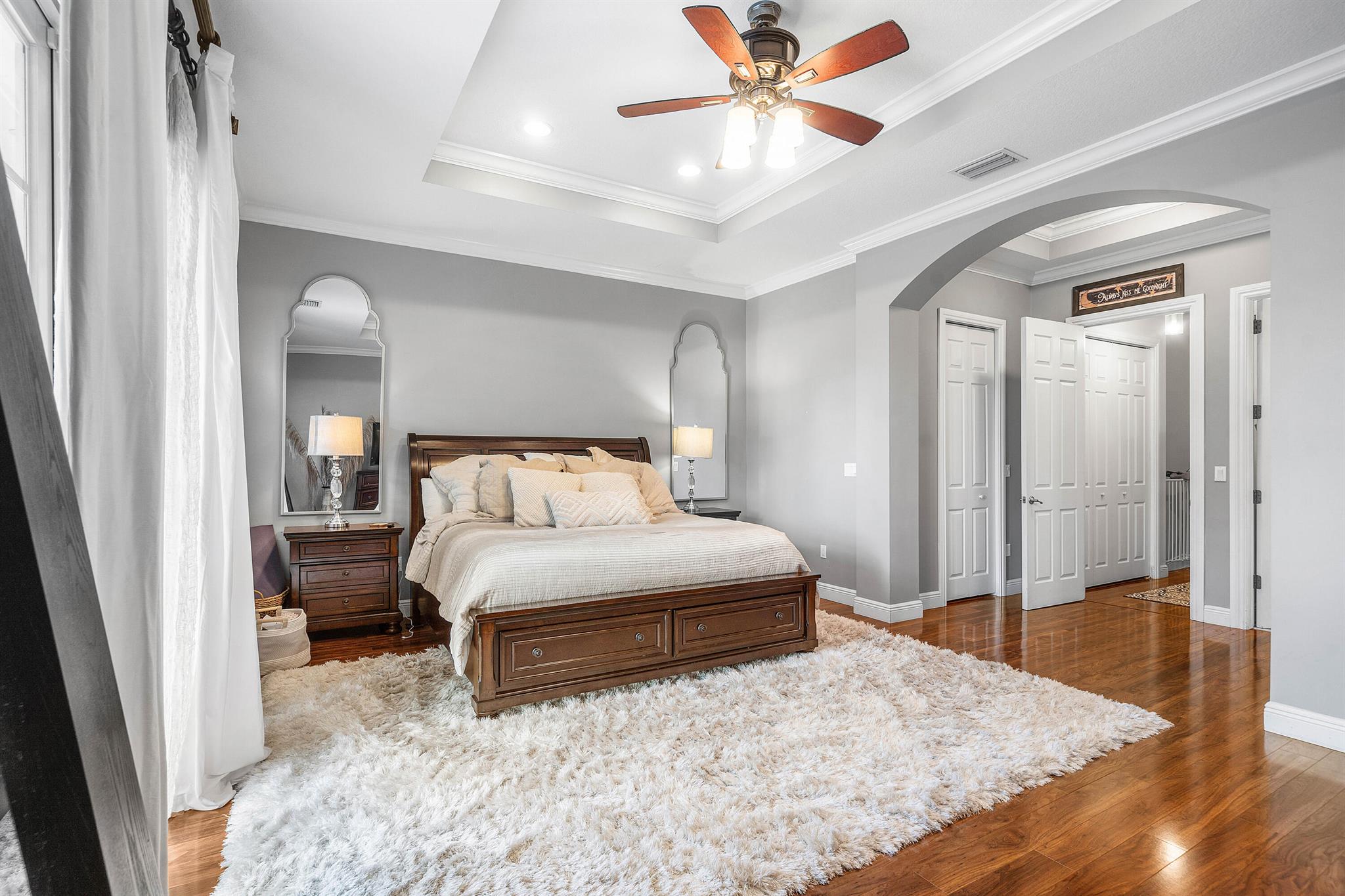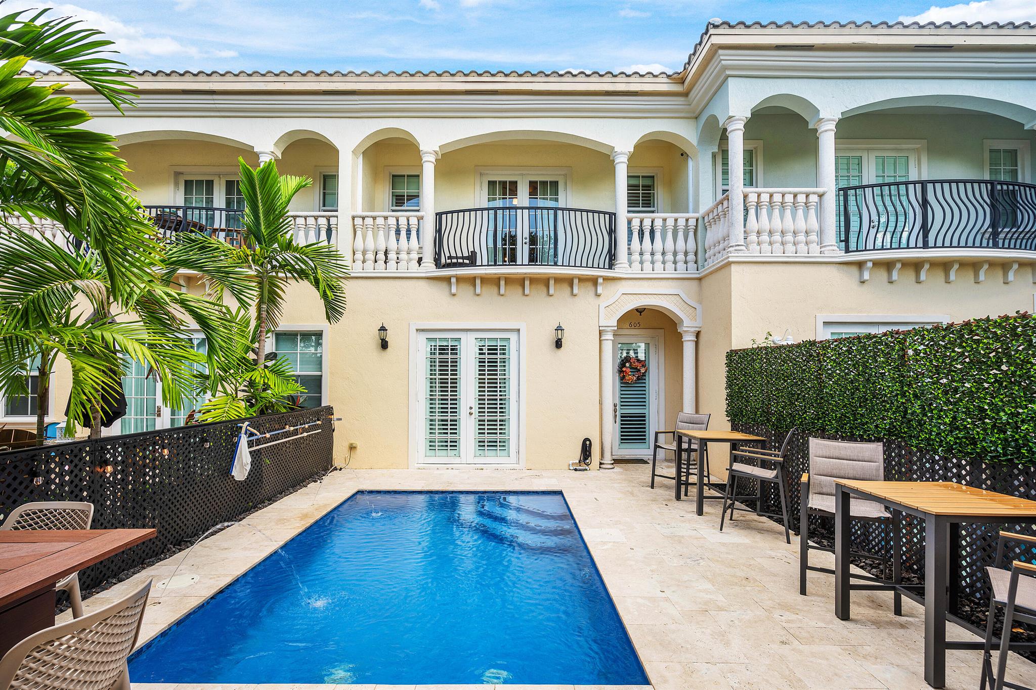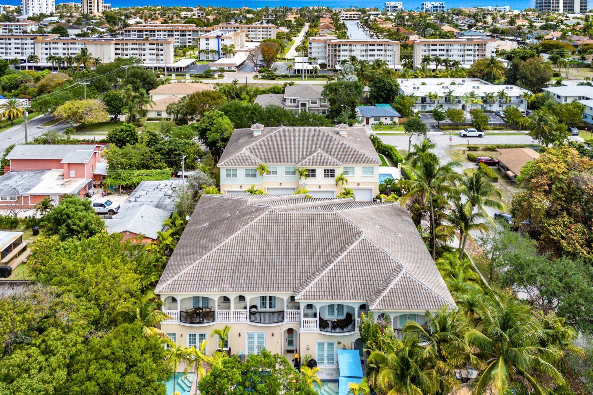 Rare find in East Delray! This updated 3BR/2.5BA townhome in Tropic Isle offers a private pool, soaring ceilings throughout, and a prime location just 1.5 miles to the beach available for annual rent. Walk to nearby shopping and dining, while Atlantic Ave's vibrant restaurants and nightlife are only 2 miles away. Inside, the main floor features an open layout with a renovated kitchen, wine fridge, and oversized island. French doors open to a private patio and pool with fountains. Upstairs, the primary suite offers two walk-ins, spa-style bath, and balcony. With a 2-car garage, driveway, upstairs laundry, and ample storage, this home blends rare luxury with coastal convenience.