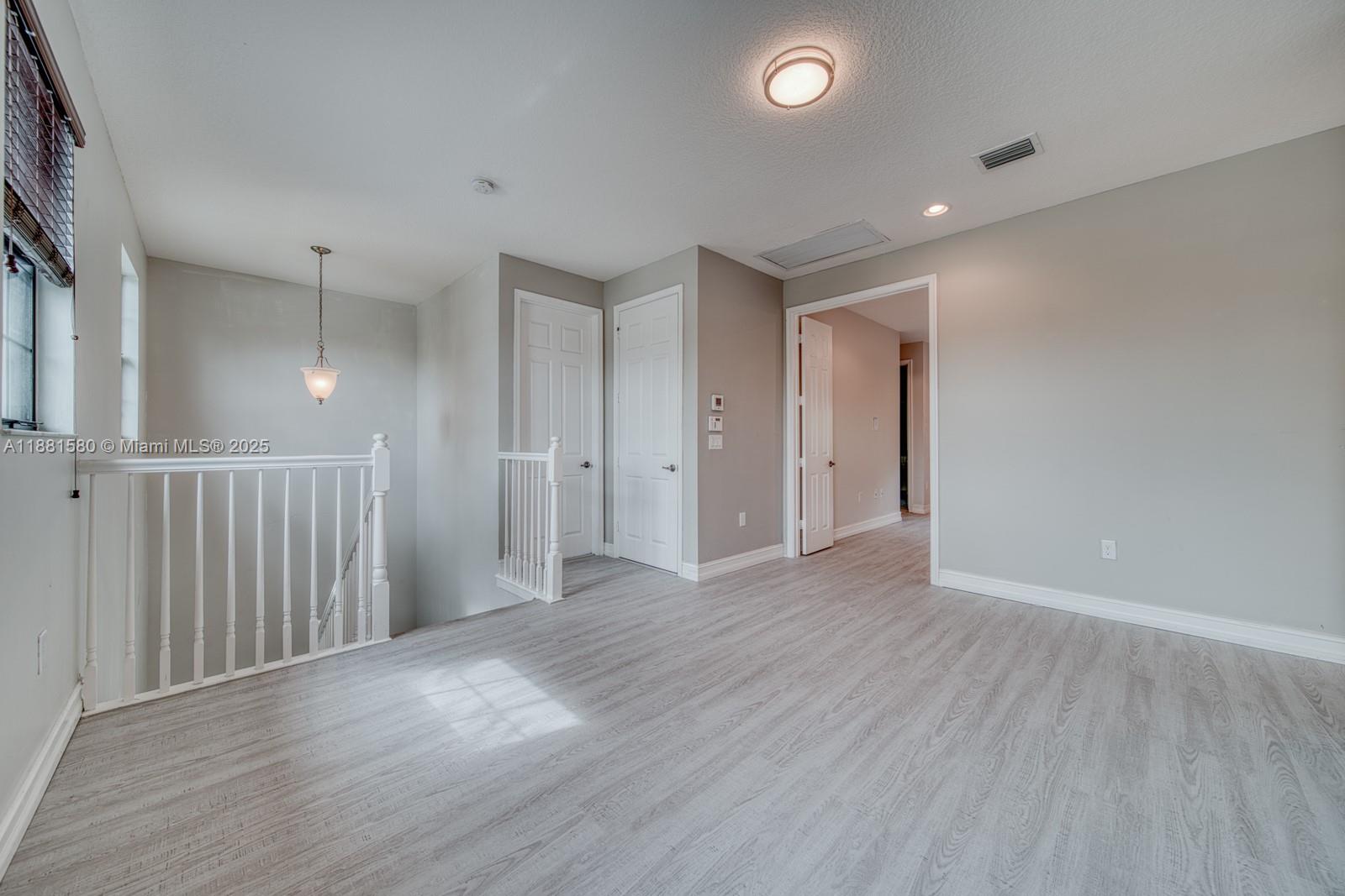 Extraordinary home with top-of-the-line amenities. Tennis and basketball courts, a pool area with a water park and a playground. A fitness center with free weights and stationary equipment, and a clubhouse with a full kitchen and game room, perfect for a birthday party or get-together. This wonderful home features high ceilings, granite countertops with stainless steel appliances in the kitchen, and ceramic tile on the first floor and brand new luxury vinyl flooring on the 2nd floor. The upper floor features a loft/office area, large bedrooms, bathrooms, and a laundry room. A full bedroom and bathroom are located downstairs. The master bedroom has a large walk-in closet with custom California Closets. A covered and screened-in patio. A large two-car garage with space for two cars outside.