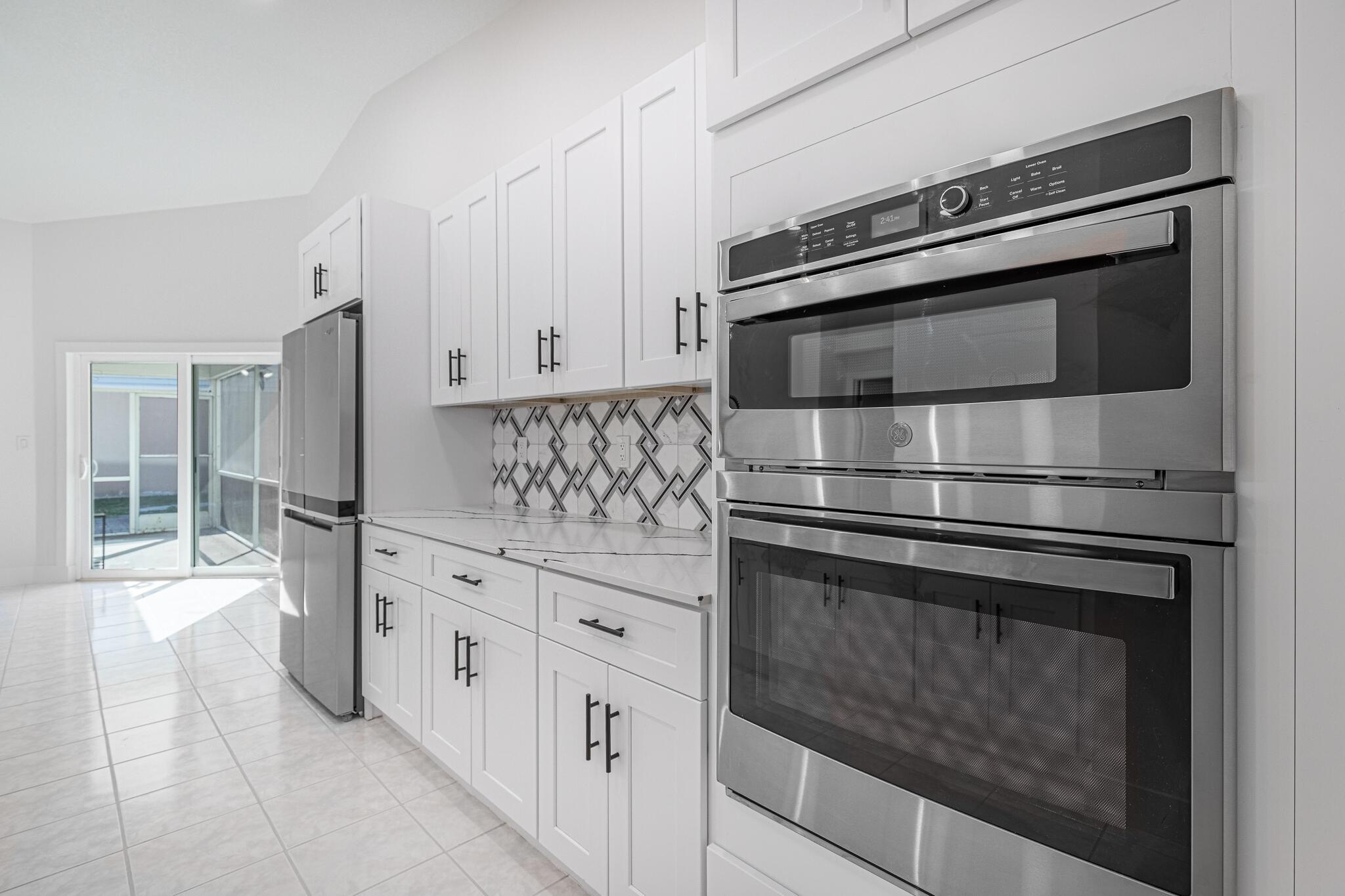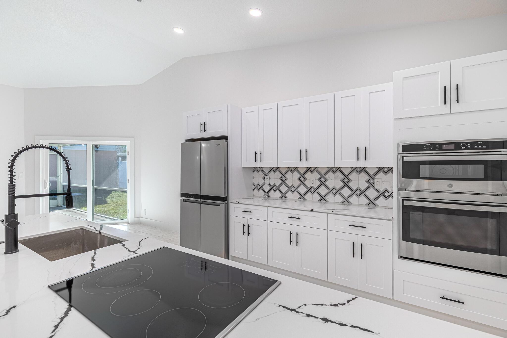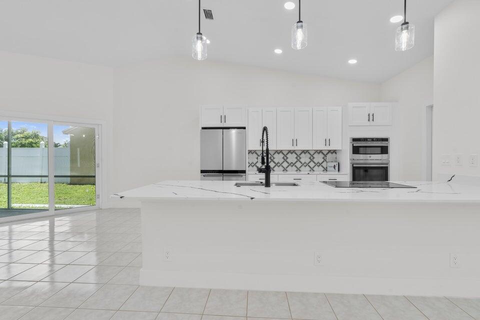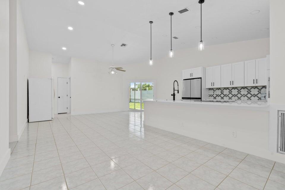 Available for immediate move-in. No HOA approval. Move in with only first month and security deposit, fast approval, pet friendly. This immaculate single-family home boasts 3 spacious bedrooms, 2 bathrooms, and a 2-car garage. Step inside to an open-concept living area with high ceilings, freshly painted for a modern touch. The heart of the home, a beautifully updated kitchen, awaits with sleek quartz countertops, brand new stainless appliances, and timeless wood cabinetry. Elegant marble and warm wood flooring stretch throughout the home, leading you to the expansive master bedroom, complete with a walk-in closet and an en-suite featuring a walk-in shower. Enjoy peace of mind with a new roof, A/C installed in 2022, and a Water Heater from 2021. Step outside to a large backyard.