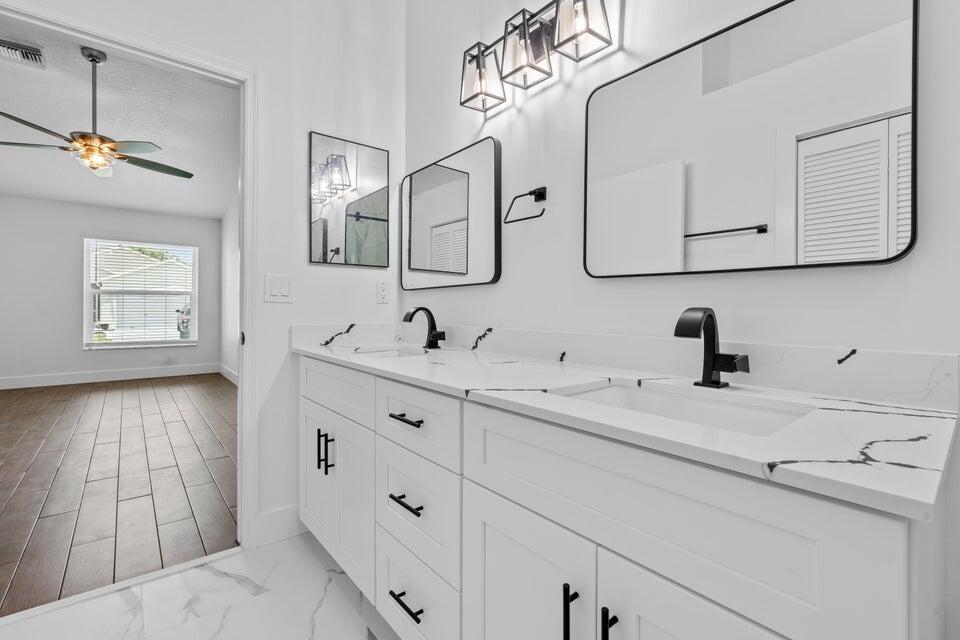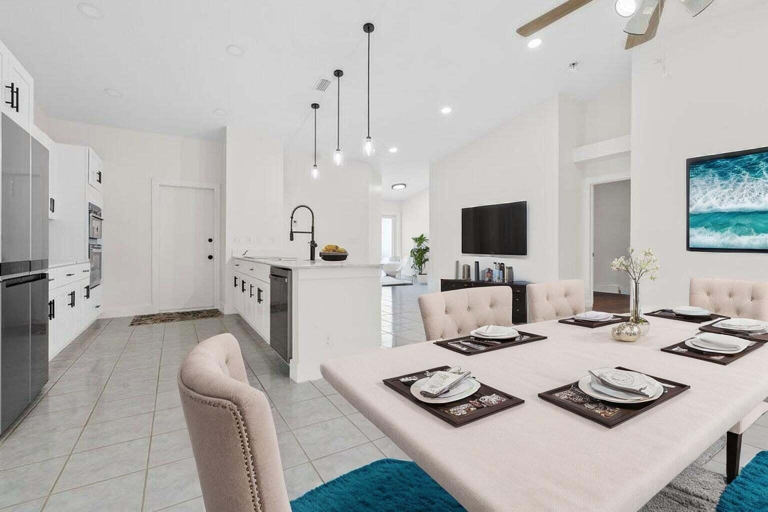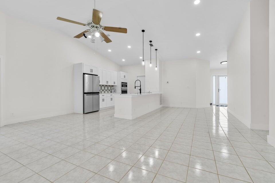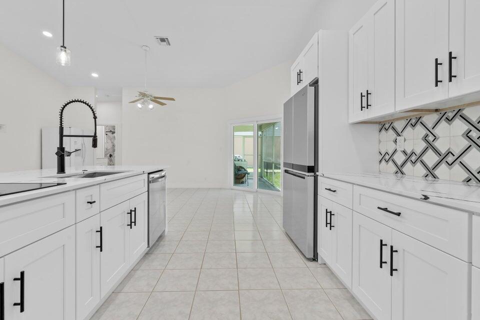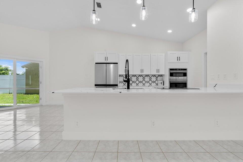 Available for immediate move-in. No HOA approval. Move in with only first month and security deposit, fast approval, pet friendly. This immaculate single-family home boasts 3 spacious bedrooms, 2 bathrooms, and a 2-car garage. Step inside to an open-concept living area with high ceilings, freshly painted for a modern touch. The heart of the home, a beautifully updated kitchen, awaits with sleek quartz countertops, brand new stainless appliances, and timeless wood cabinetry. Elegant marble and warm wood flooring stretch throughout the home, leading you to the expansive master bedroom, complete with a walk-in closet and an en-suite featuring a walk-in shower. Enjoy peace of mind with a new roof, A/C installed in 2022, and a Water Heater from 2021. Step outside to a large backyard.