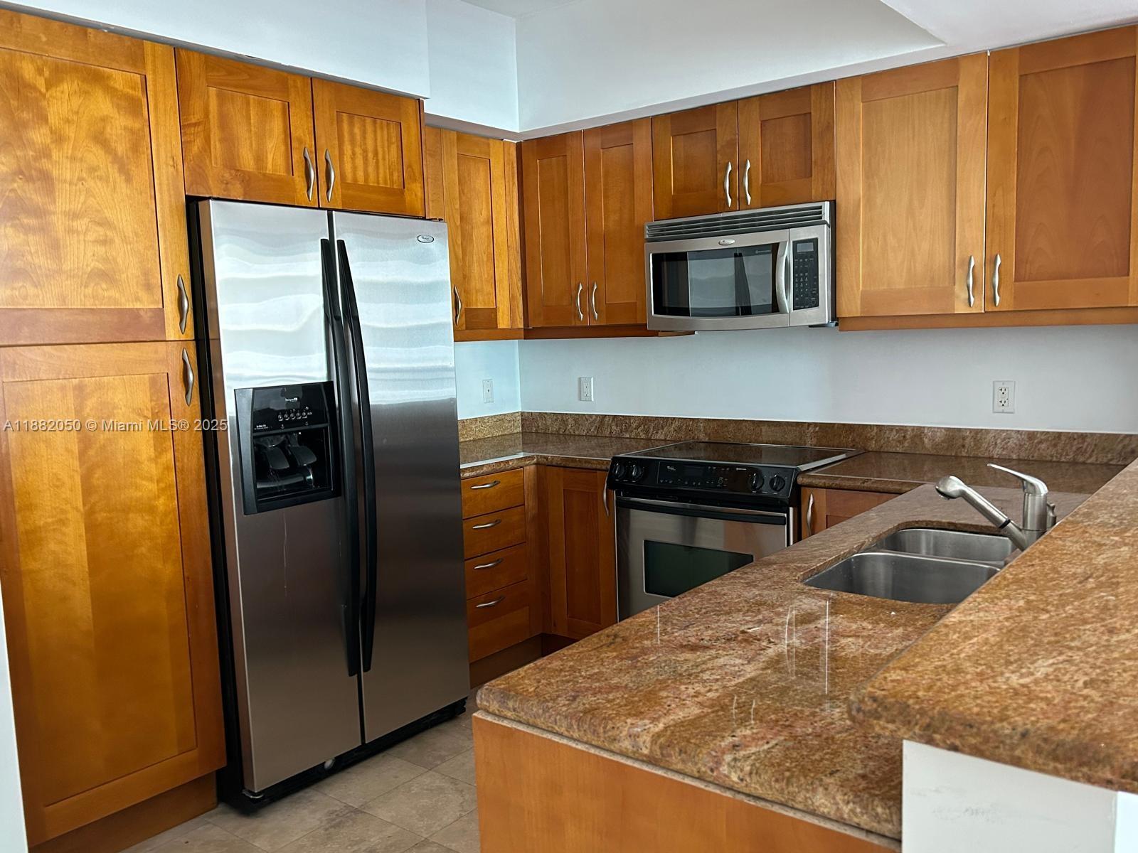 Amazing unit for rent in the heart of Hallandale! upgraded condo 1 bedroom 1.5 baths. Beautiful wood cabinetry with granite counter tops, stainless steel appliances, marble bathrooms, walk in closet-washer/dryer in unit. Laminate floors- impact windows, assigned parking and extra storage. Secured building with ample amenities including gym, movie theatre, pool, hot tub, tennis, few minutes from the beach near anything you need, with shopping plaza downstairs.