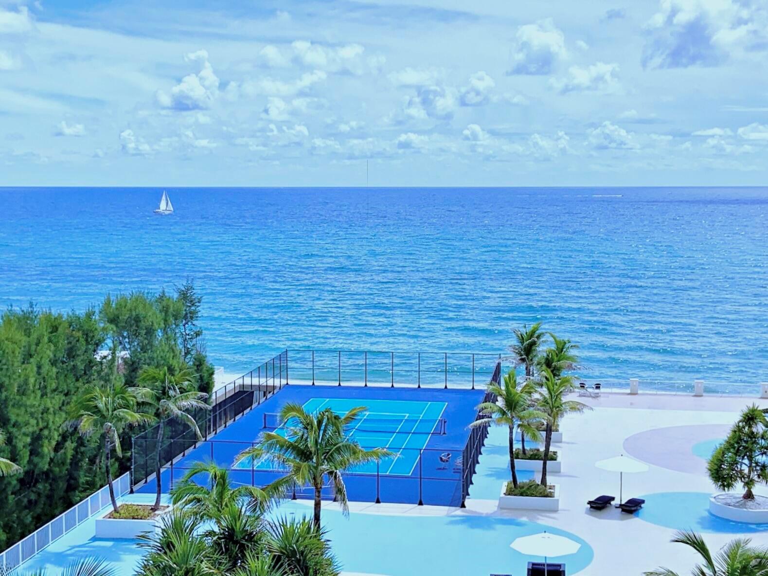This beautifully updated apartment offers the perfect blend of luxury and comfort, featuring Ocean Views from every room. Each room seamlessly opens onto a generously sized balcony through floor-to-ceiling hurricane impact sliding doors. Enjoy the elegance of travertine flooring throughout. The sophisticated design extends to the exceptionally spacious primary bathroom, while the chef's kitchen impresses with its unique design and granite countertops. For modern convenience, the unit features an in-unit washer and dryer along with brand-new electric blinds in every room. To complete the residence, the apartment is in the process of being stylishly furnished in the coming days.