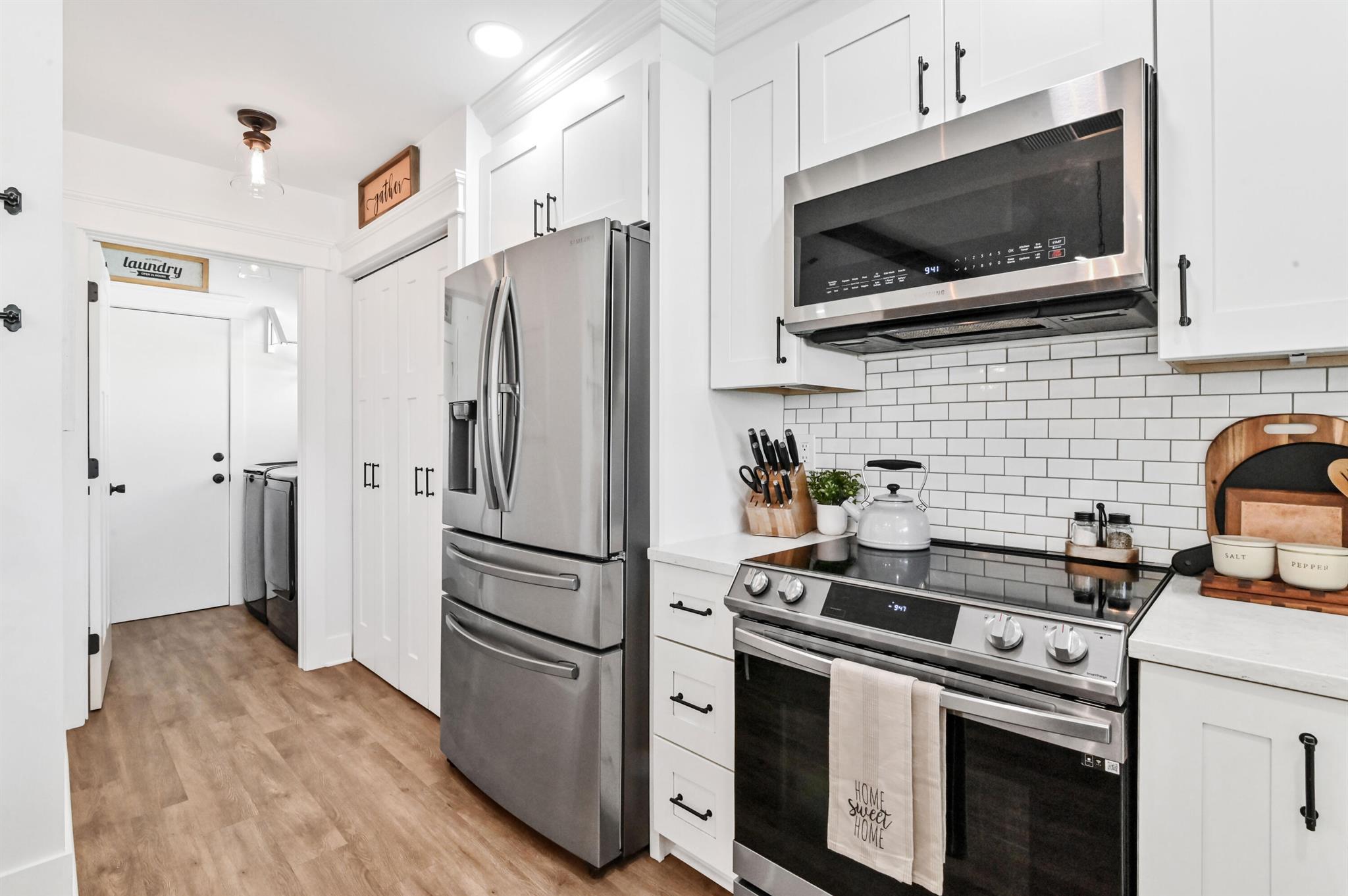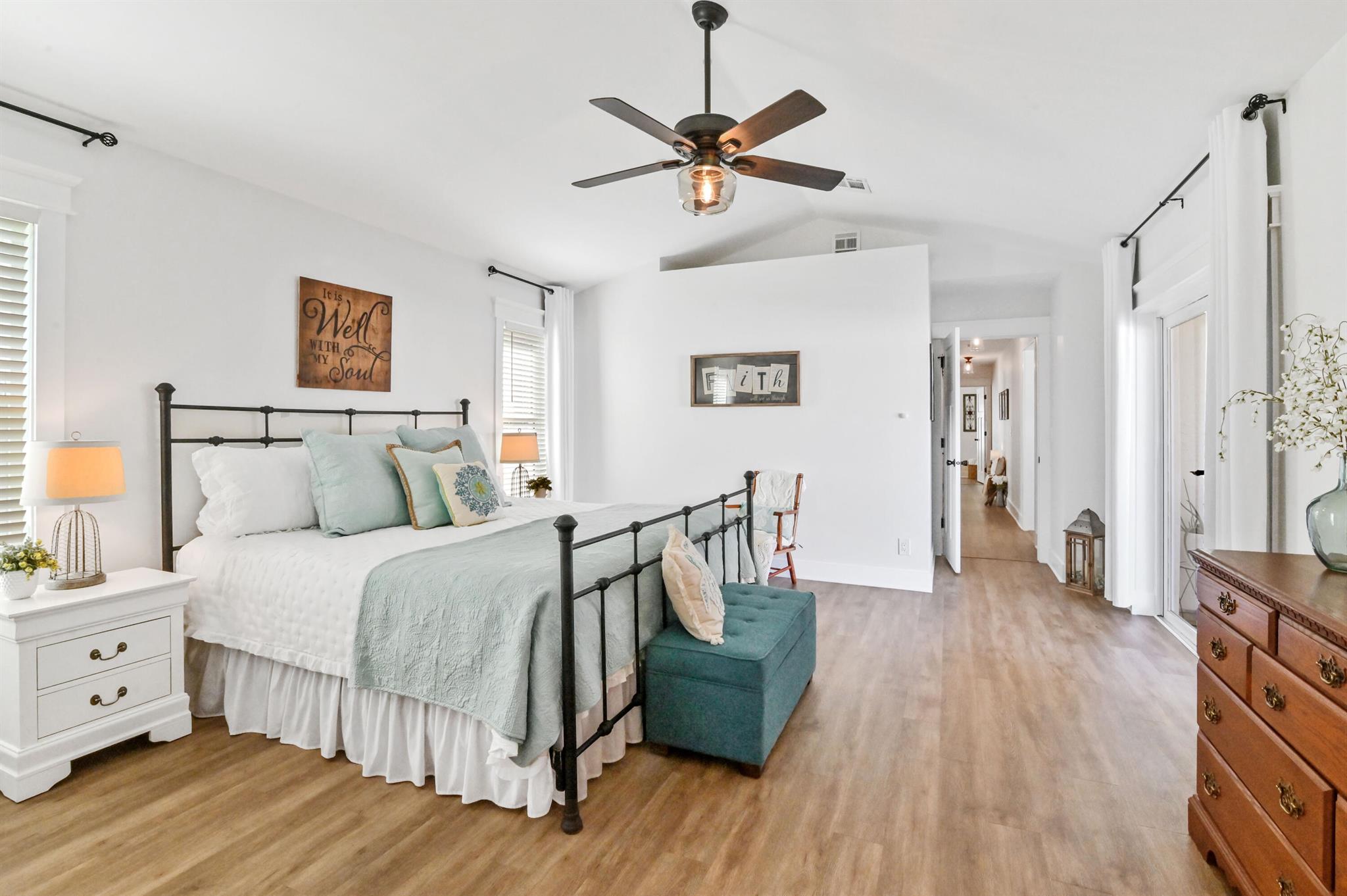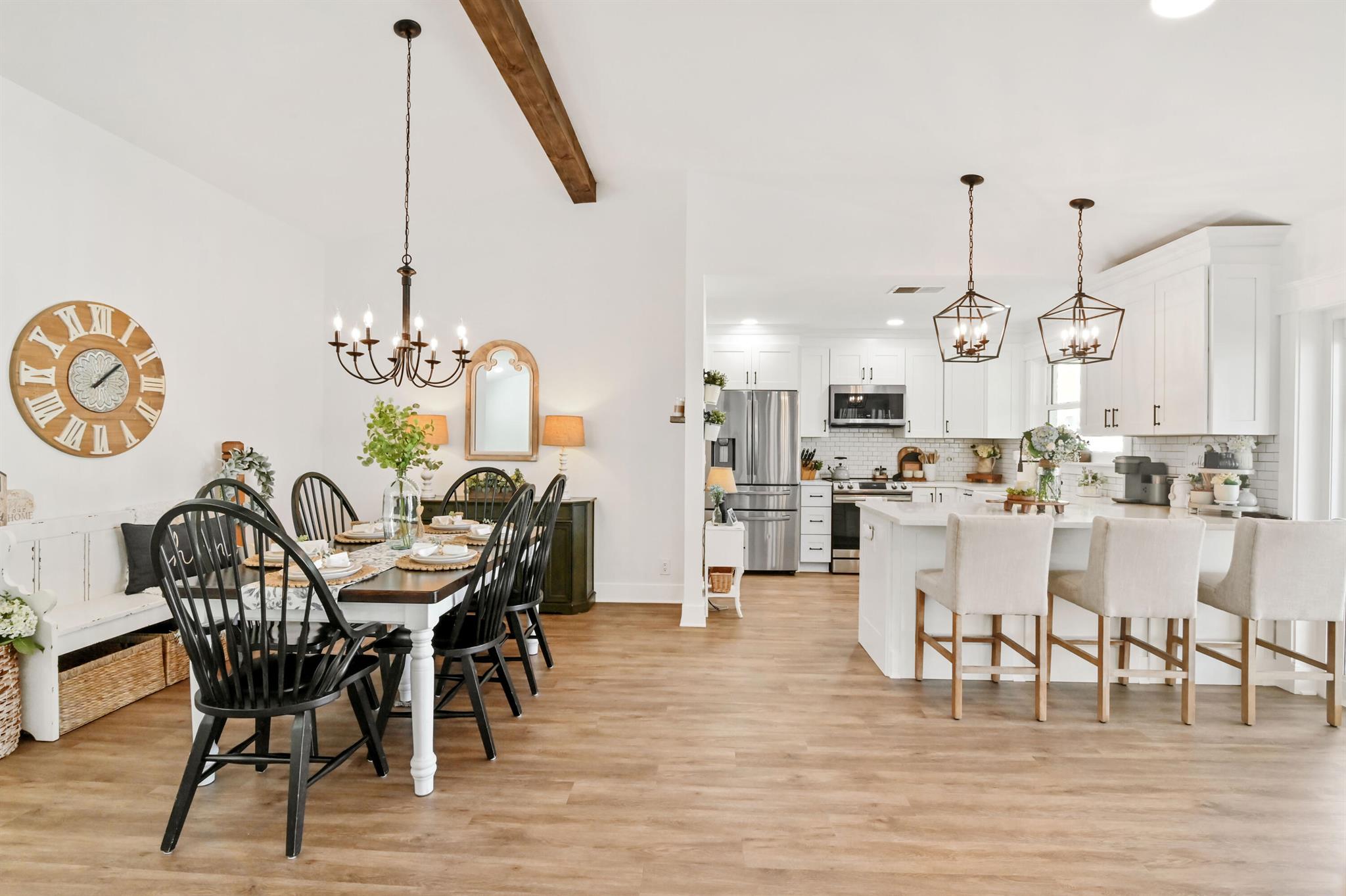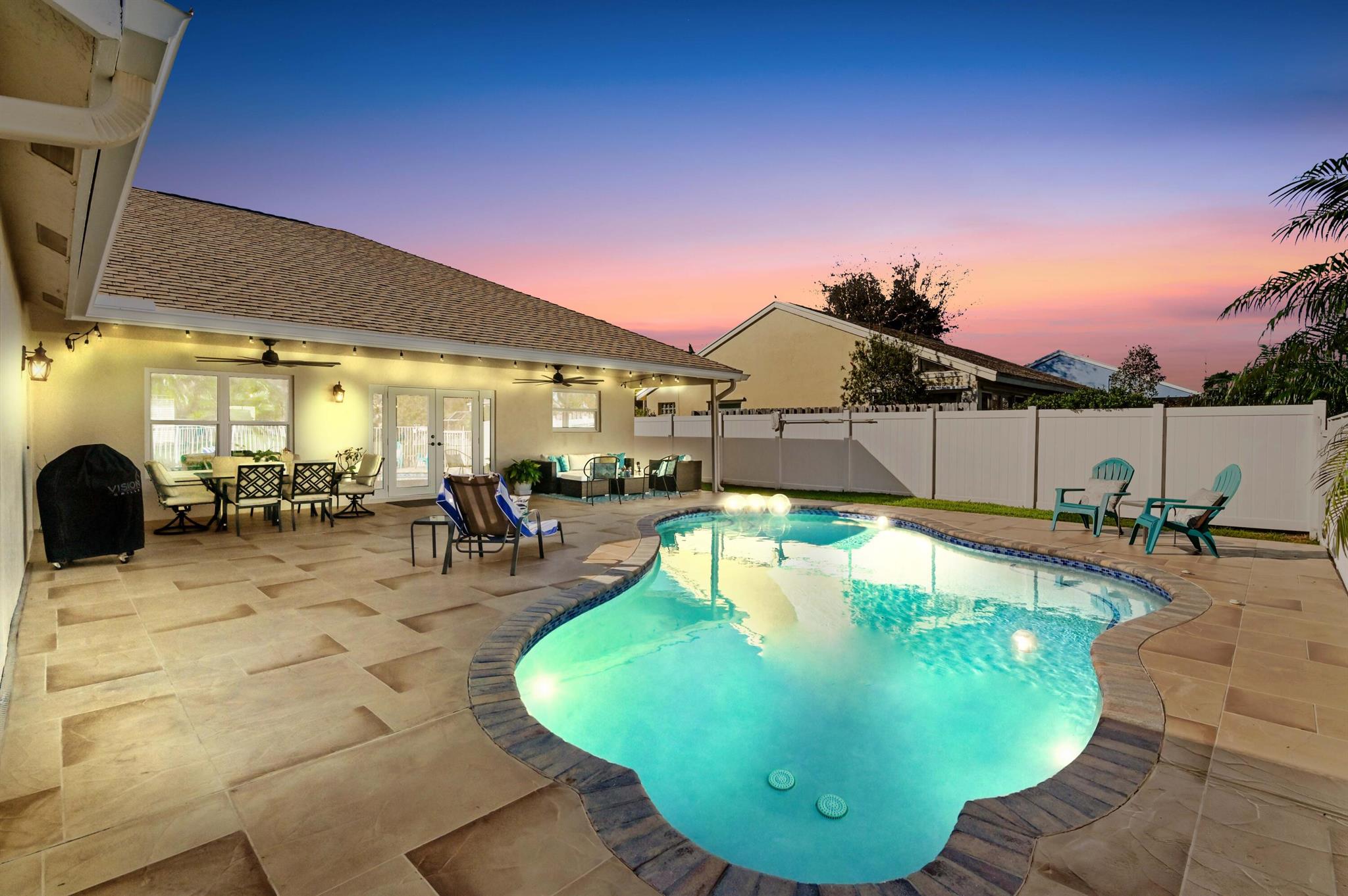 Welcome to this meticulously maintained 4-bedroom, 2-bath waterfront haven with a private pool, nestled in a serene setting with a fenced rear yard and breathtaking lake views. Step inside this true 4-bedroom gem, where an immaculate open floor plan unfolds seamlessly, offering a family room, living room, and formal dining area. The kitchen, adorned with modern appliances and quartz countertops boasts generous counter space, and a spacious pantry, ensuring culinary delights in a stylish setting. This beautiful home also features luxury vinyl flooring throughout, vaulted ceilings with a wood beam, custom trim around doors, and a full size washer and dryer.
