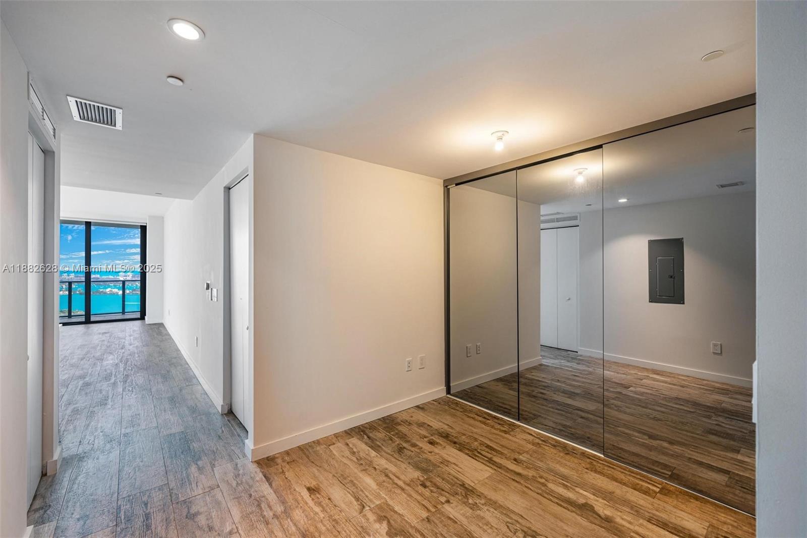 Rarely on the market for rent! Experience luxury in this elegant 1 Bed + Den, 2 Bath unit at Paraiso Bay with breathtaking views of the bay & Skyline featuring a bespoke kitchen island with a stone waterfall top and three custom closets in the master bedroom, and a den,. The master bath is a sanctuary with a high-end triple-control shower. Unique design touches include a custom black mirror wall and electric blackout shades in the master bedroom. Enjoy privacy with your own elevator entry and unwind on the spacious 215 sqft terrace. Paraiso Bay amenities, including a lagoon-style pool, modern gym, spa, tennis courts, and bowling alley, are unmatched. Located minutes from Wynwood, Design District, Miami Beach, and the Airport, this residence offers the ultimate in style and convenience.