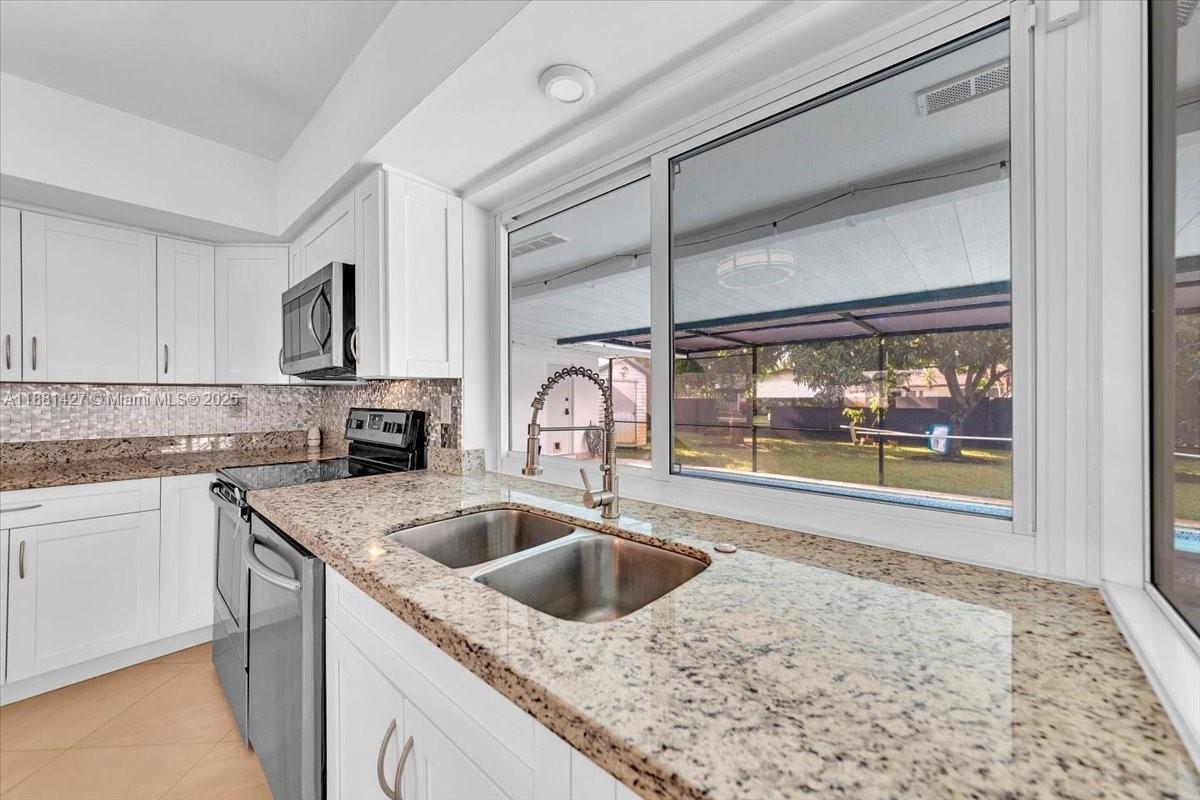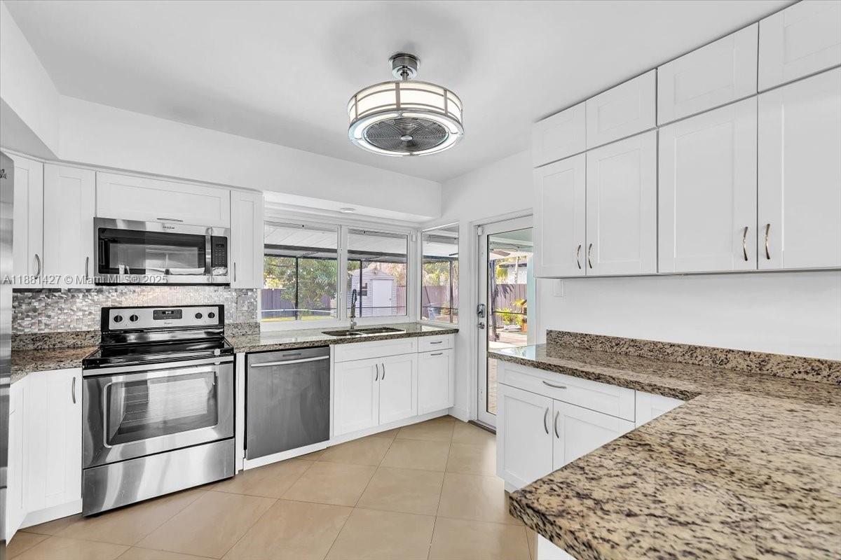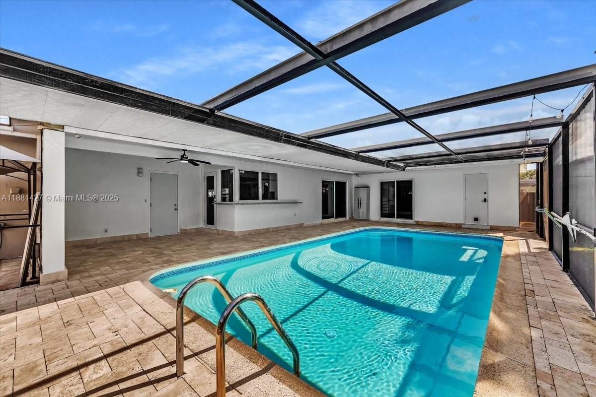 This well-appointed 3 bedrooms, 2 baths single family home, plus a Den, offers a modern contemporary open concept floor plan with abundant natural light. A flex Room with its own entrance and A/C. The kitchen overlooks a brand new screened pool and fully fenced backyard with fruit trees. Recent upgrades includes A/C with WIFI smart thermostat, full Impact-windows/doors, sprinkle system. Safety features includes cameras (tenant may activate, if desire) a Ring doorbell and digital code on all main entry doors, glass break sensors. Spacious Laundry Room with Washer, Dryer, Sink and two large storage organizer racks and a tankless water heater. Lawn and weekly pool maintenance are included as well as American Shield Service Contract. No HOA, ready for immediate occupancy, Call Listing agent.