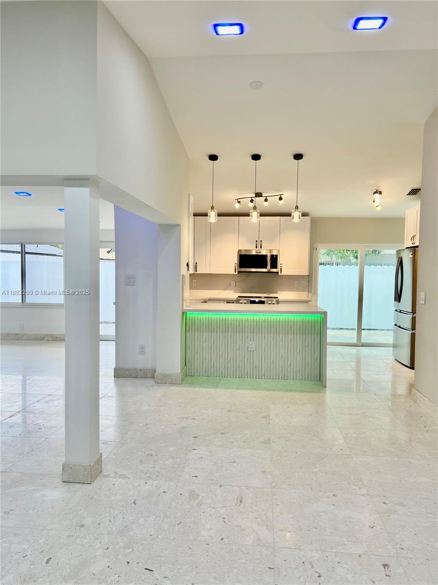 Be the first to enjoy this Beautiful Fully Remodeled Home. Much attention to detail + design. Open Layout & Split Floorplan. Natural Stone Floors and Refreshing Sunlight thought the entire home. White Shaker Farm Sink Kitchen. Calacatta Grey & Gold vein Quartz Countertops w/ Flowing Waterfall. Double Bar Top seating area. New Stainless Steel Frigidaire Gallery appliances. Impact Windows & Doors. FIRST + LAST + SECURITY